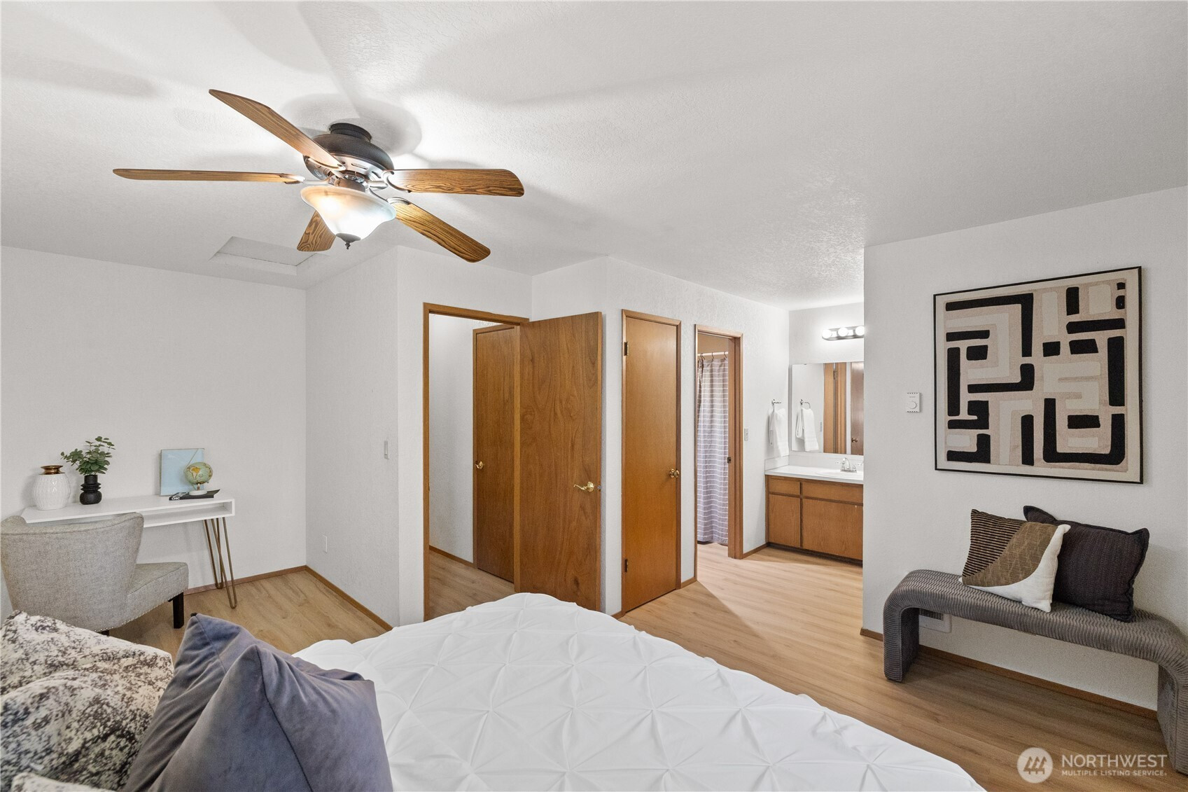 Charming, light-filled townhouse-style condo in a small, well-maintained community. The open, spacious main level features new flooring throughout, a convenient powder room, and a seamless flow between the living room, kitchen, and dining area. Upstairs, two generous primary suites offer private baths and large walk-in closets, plus a cozy reading nook ideal for work or relaxation. Enjoy the ease of low-maintenance living with a 1-car attached garage, two additional surface parking spaces, ample storage, and a fully fenced yard with fresh, new grass. All appliances stay for a truly move-in-ready experience. Located in the Award Winning, Mukilteo School District and close to shopping, Boeing, I-5, and everyday conveniences.