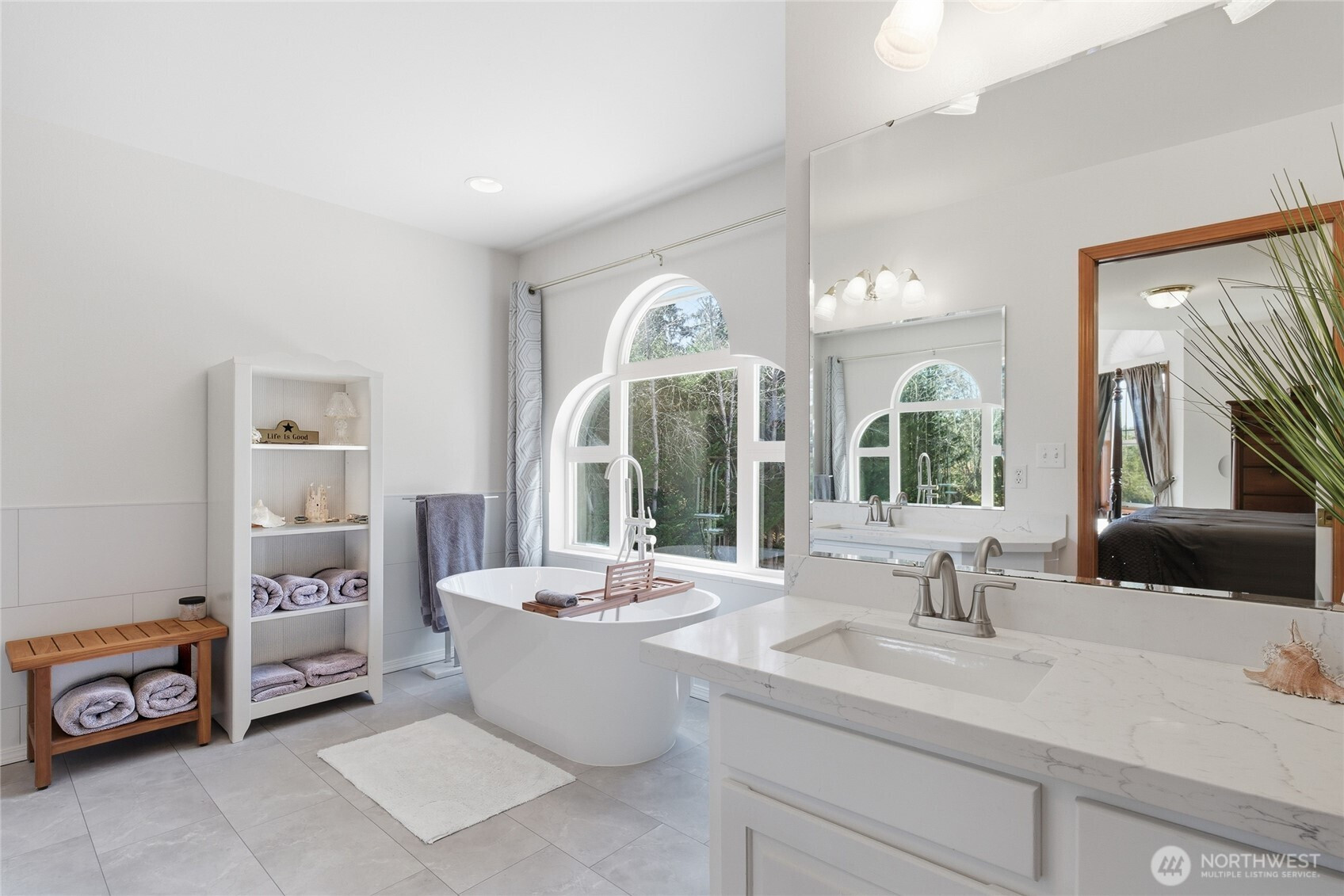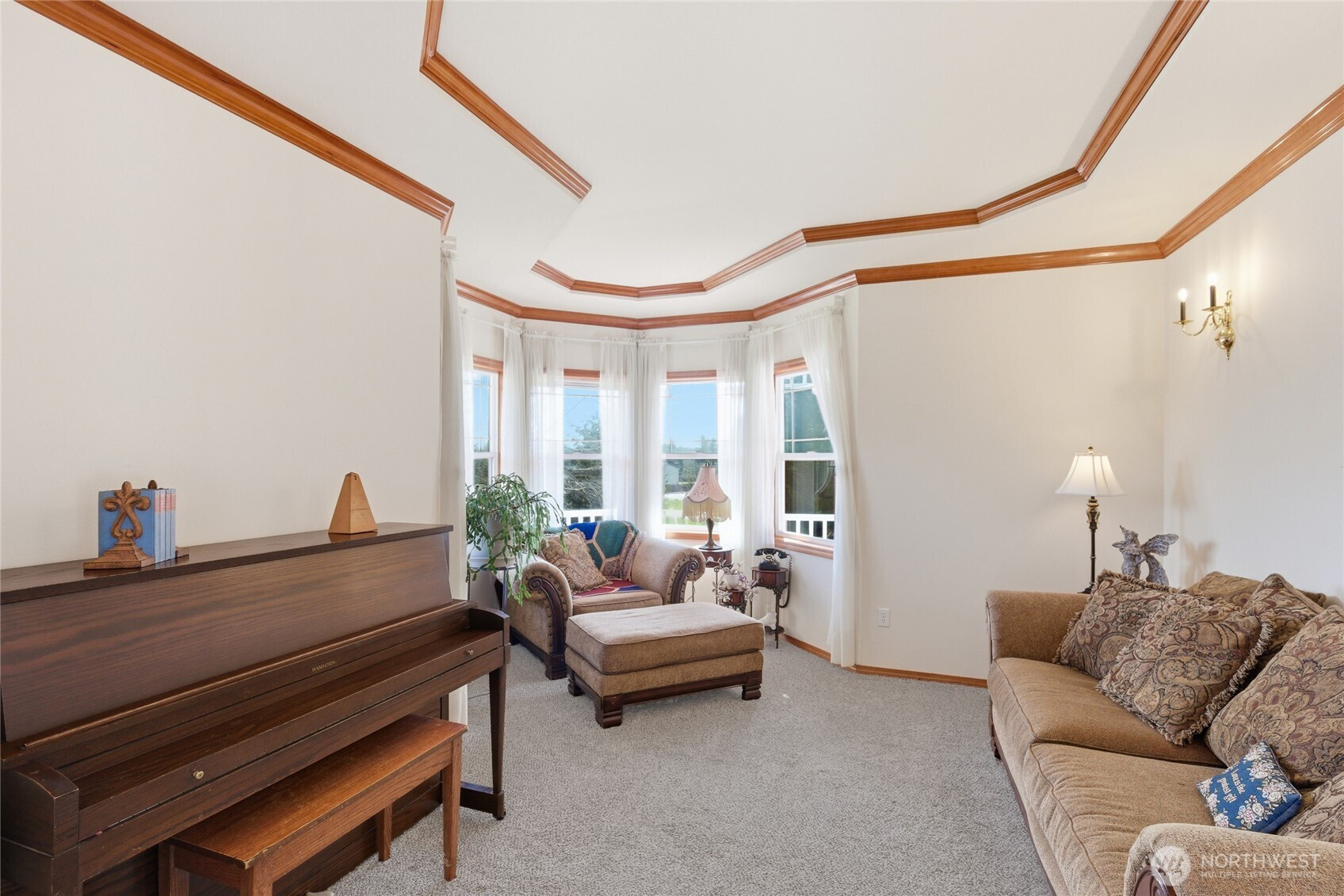 Enchanting one-of-a-kind Victorian Home and property in the prestigious Frontier Air Park, a highly desirable private and gated community in Lake Stevens. Enjoy mornings on the wraparound porch while taking in the stunning Cascade Mountains and Community Airfield Views. Step into the grand two-story foyer with its cozy front parlor/sun room, inviting quiet time and conversations, while the open main floor flows effortlessly from the classically updated kitchen, featuring quartz counters, stainless appliances, and a generous breakfast bar into a light-filled family room, anchored by a marble gas fireplace. Host dinner parties in the formal dining room, then step through French doors onto a stunning tile deck overlooking a sprawling backyard complete with patio and fire pit…a great space for entertaining! Upstairs, the beautifully remodeled primary suite is a true retreat — unwind in the sun-filled sitting room, pamper yourself in the spa-like bath featuring a tiled walk-in shower, luxurious soaking tub with serene backyard views, and a spacious walk-in closet. Three additional bedrooms and a double-sink guest bath provide space for guests. Outside offers nearly five usable acres of endless possibilities! Bring your horses, chickens, pets and toys. An oversized RV parking space and the occasional visiting wildlife. And with a brand new roof (2025) and updated furnace, heat pump, and water heater (2022), the big-ticket items are already done!