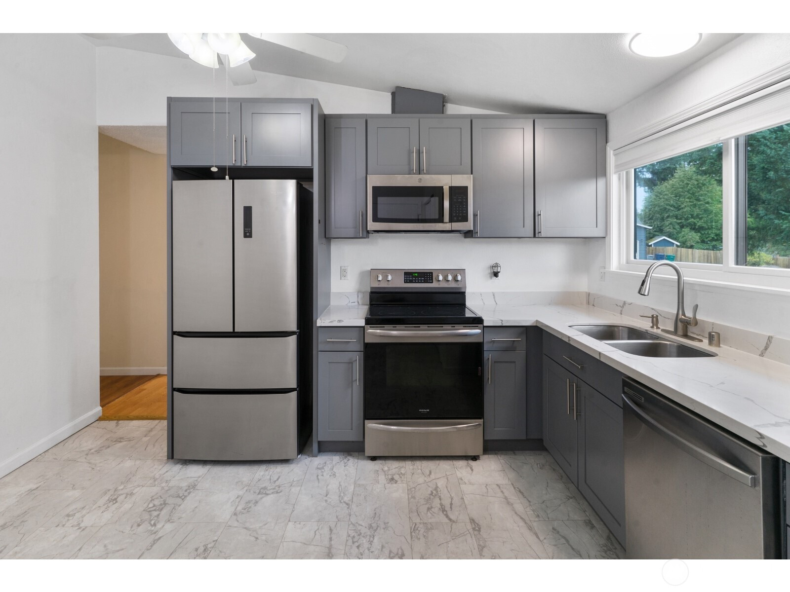 (503) 893-8874Welcome to this charming 3-bedroom rambler, perfectly situated on a spacious 10,000 sq ft lot. Tucked away in a quiet cul-de-sac for added privacy, it also features a paved secondary driveway leading to the backyard, ideal for extra parking for all your recreational toys. The home includes a garage, newer roof & windows, fenced backyard, and a bonus space for storage. The kitchen has been beautifully remodeled with modern cabinetry, quartz countertops, new flooring, and updated light fixtures. Enjoy real hardwood floors throughout the bedrooms and living areas, plus a recently replaced roof.