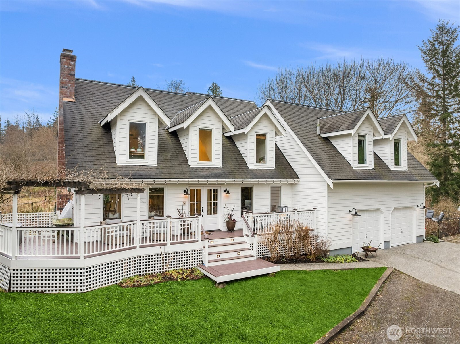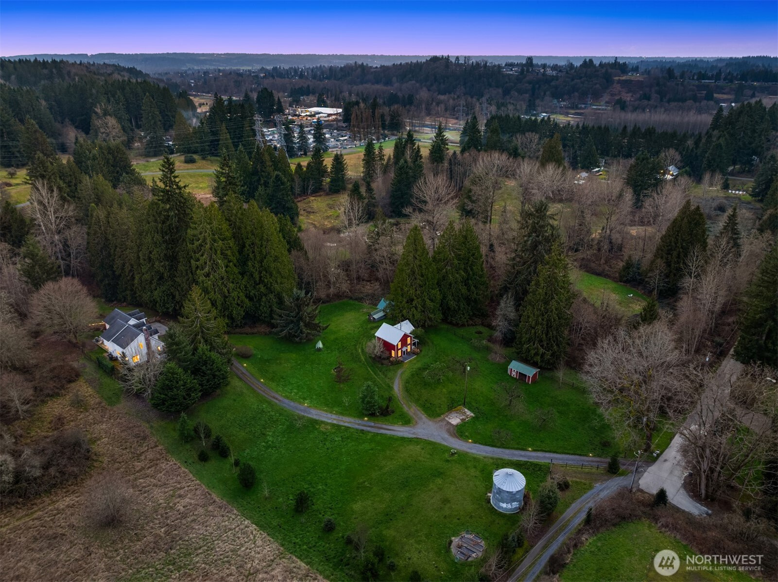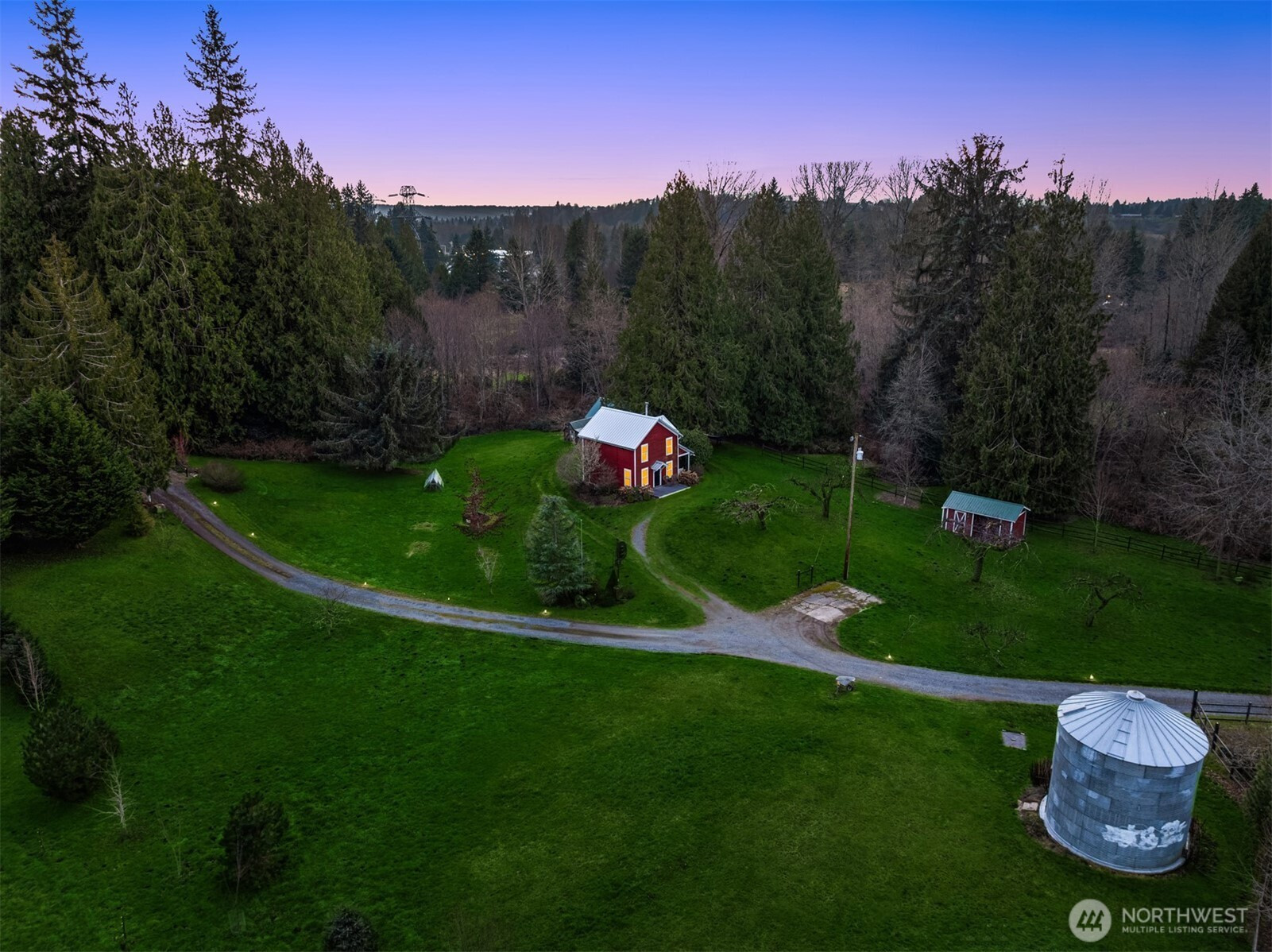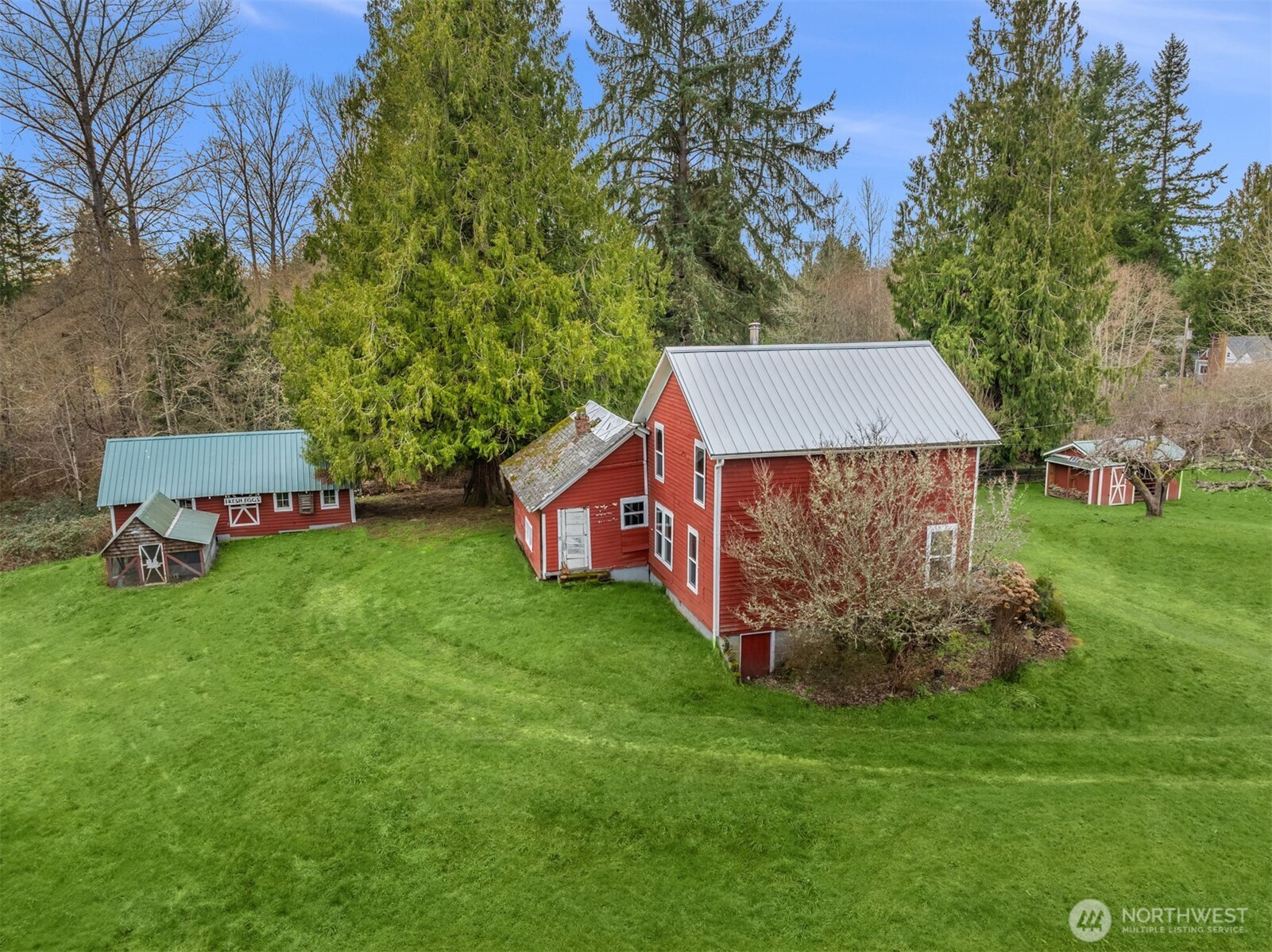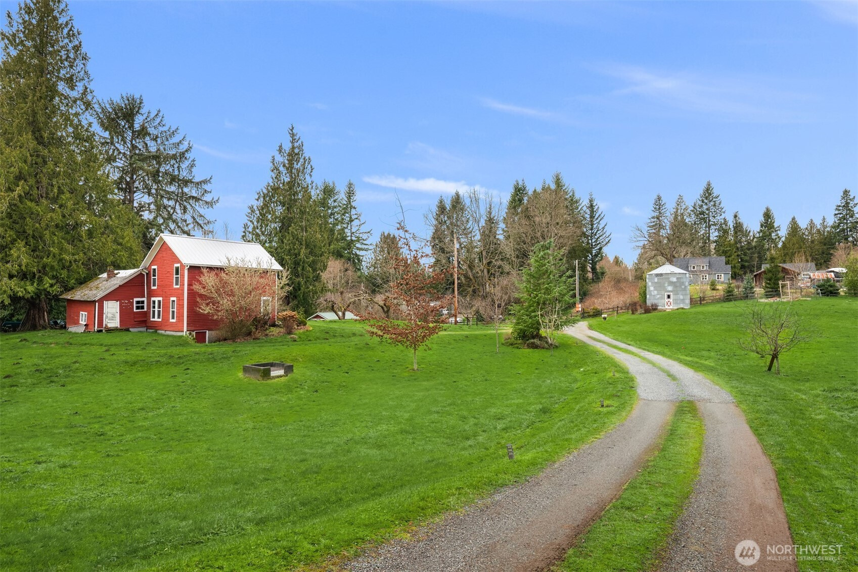 [FAIRYTALE FARMSTEAD] Poised gracefully on 2.93 storybook acres, this enchanting farmhouse estate embodies the very soul of the Snohomish Lifestyle. A place where a wholesome nostalgia and heritage roots create a life that feels both ROOTED & INSPIRED. The beautifully cared-for 2,604 sq ft main residence offers 4 bedrooms and 2.5 baths, thoughtfully curated with warm pine plank flooring, quartz surfaces, designer hues, and a cozy fireplace that invites slow evenings and meaningful gatherings. Farm Living expands beyond the walls. Sweet english style gardens, fruit trees, and rolling green lawn unfold across the landscape, offering space to cultivate, entertain, and breathe deeply. The classic red barn aesthetic, charming outbuildings, and iconic silo anchor the property in authentic rural character—an increasingly rare and romantic find in Snohomish County. The original 1908 farmhouse still stands with quiet dignity, ready to become whatever your next chapter requires; guest retreat, creative studio, multigenerational living, or inspired restoration. A winding drive welcomes you home each day to privacy, beauty, and possibility. It does have water and could be connected to septic with valiant vision and minimal effort. Wide open spaces & plentiful acreage. A lifestyle rooted in simplicity, legacy, and the enduring magic of country living—just moments from the heart of Snohomish. [RURAL GRACE & SNOHOMISH LIFESTYLE]