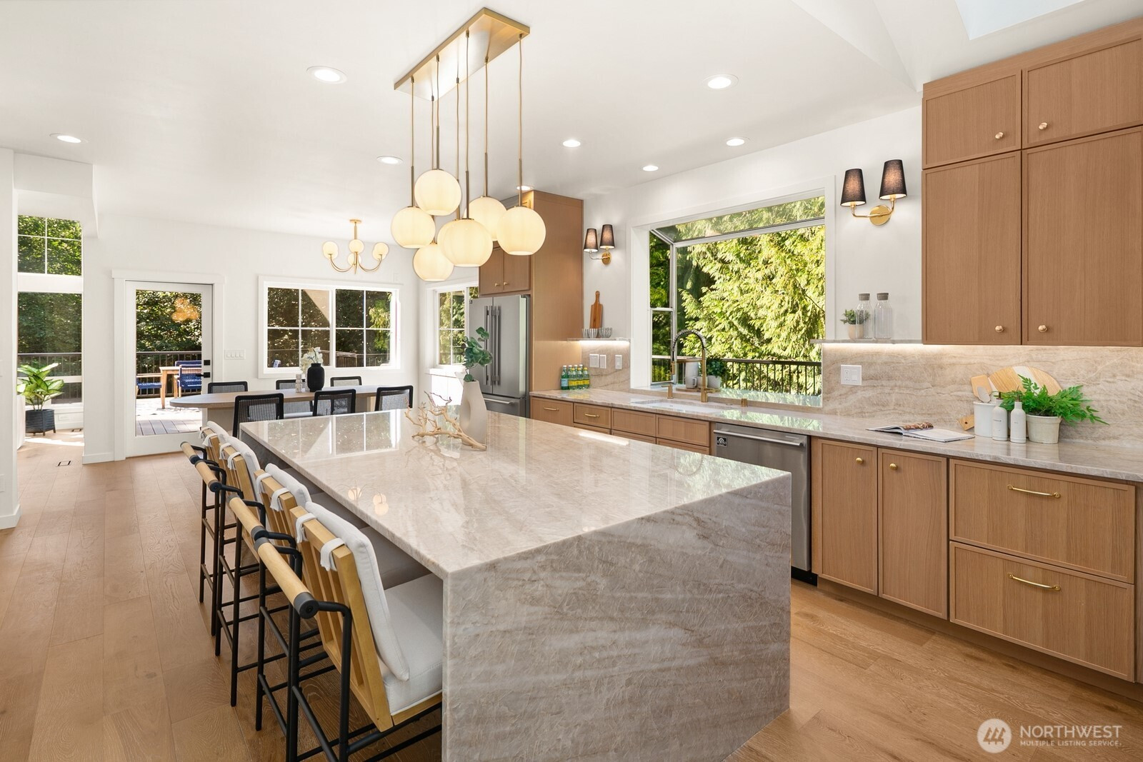 Discover privacy and elegance in Dutch Hill. This fully remodeled 5-acre estate offers 6,222 sq ft with 6 bedrooms and 4.25 baths. A grand foyer and sweeping curved staircase set the tone. The chef’s kitchen impresses with Taj Mahal stone, custom cabinetry, and premium appliances. The primary suite is a spa-like retreat with soaking tub and artisanal plaster walls. Soaring windows and designer details elevate every room. Vaulted ceiling, formal living and dining with gas fireplaces add warmth. Outdoors, enjoy a wraparound deck and a red barn with flexible living quarters, kitchen, and bath. Located in the sought-after Snohomish School District, this home offers the perfect balance of luxury and seclusion with easy access to Hwy 2.