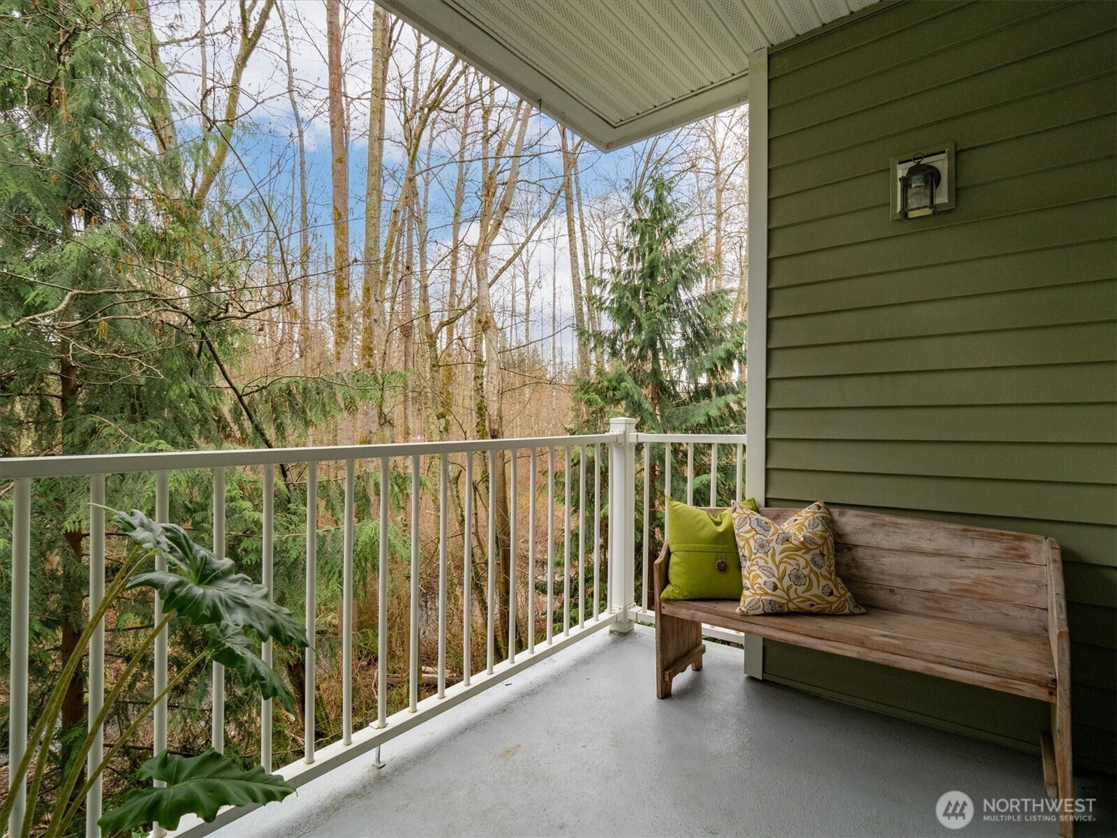 Welcome to this Woodland Retreat. This spacious unit boasts cozy open living area with gas fireplace, hardwood floors, and a large balcony overlooking a protected greenbelt and creek. The open kitchen has plenty of counter space, newer appliances, a good sized pantry and adjacent dining area. The generous primary bedroom has an updated on-suite bath with quartz countertop, and large walk-in closet. The second bedroom has adjacent full bathroom and large linen closet. Plenty of storage with full size laundry, hall closet and large storage area on balcony. One covered parking space and plenty of additional parking for guests. Located in a beautiful setting with community clubhouse for large gathering, a well kept play area the Woodlands has easy access to 1-5, Boeing and transit. This association is well run with ample reserves and low monthly HOA makes this a great place to call home!