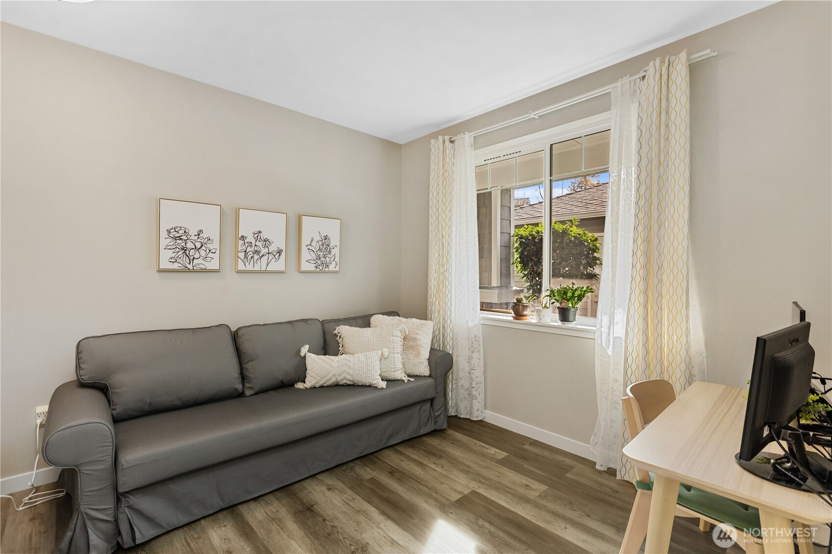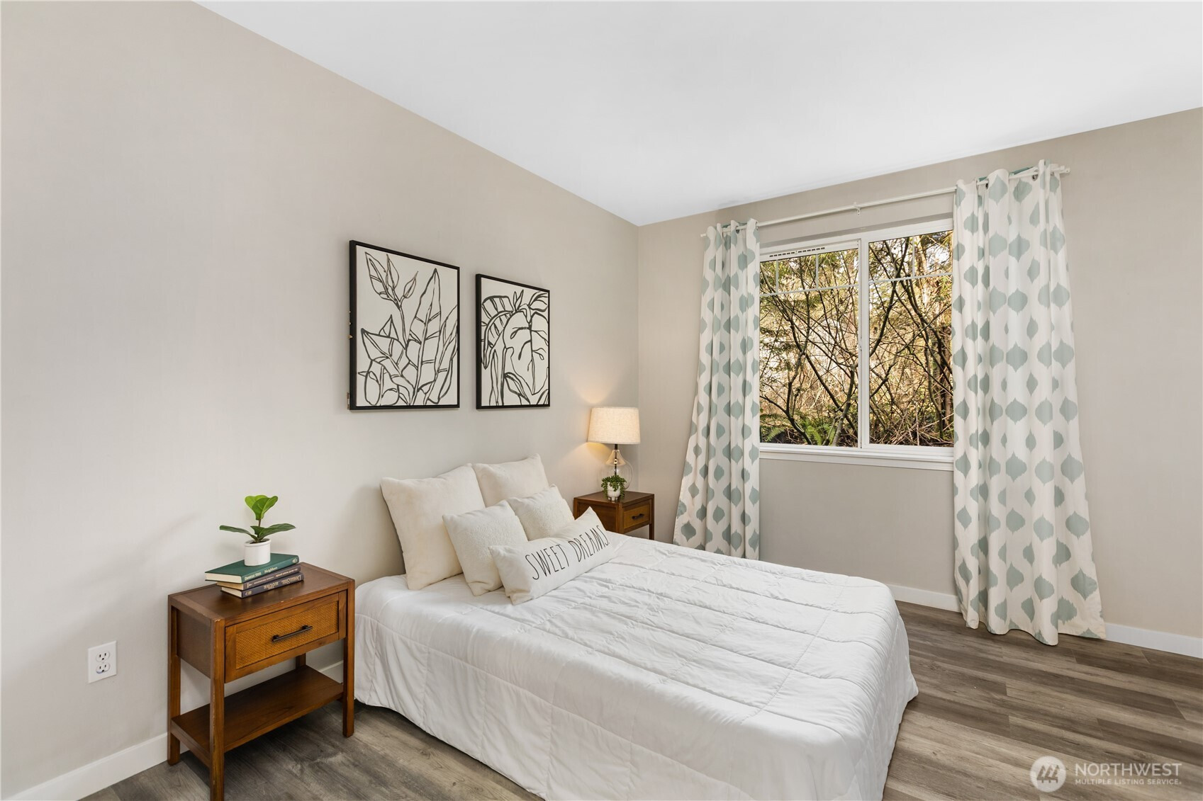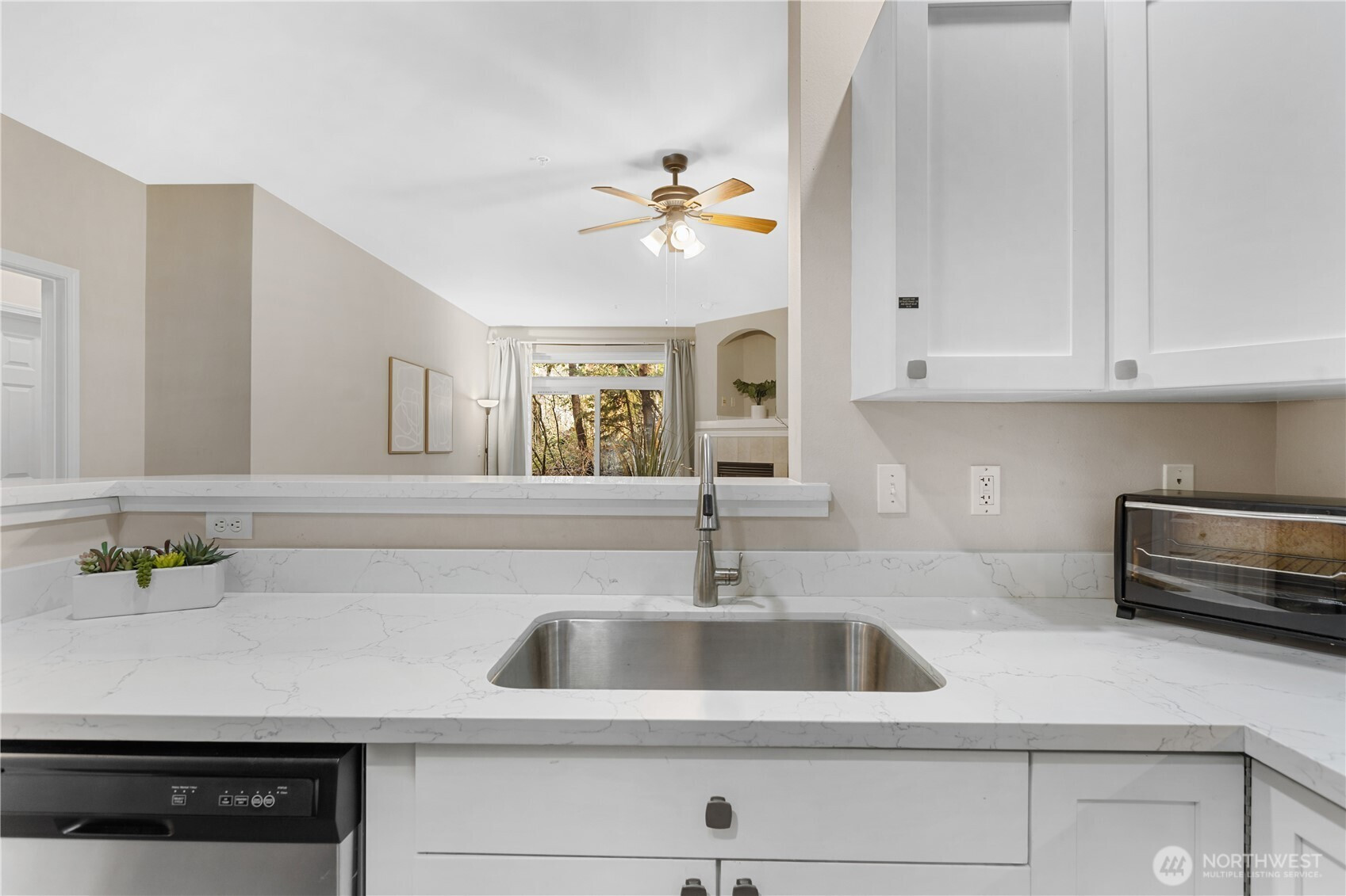 Completely updated 2 bed, 1.75 bath [GROUND FLOOR] condo in the sought-after gated Woodlands community blends modern comfort with peaceful, nature-connected living. Luxury vinyl plank flooring flows throughout, complementing an open-concept kitchen with quartz countertops, an under mounted sink, bar seating, stainless steel appliances, and ample storage — all opening to a bright living area anchored by a cozy gas fireplace. The spacious primary suite is privately positioned from the second bedroom and features an ensuite bath and oversized walk-in closet. Backing to a lush greenbelt with no rear neighbors, enjoy birdsong, wildlife, and serene natural scenery from your living room or private patio. A well-managed HOA ensures low-maintenance living in a beautifully kept community. Located in the Mukilteo School District minutes from Boeing, shopping, dining, and parks — this is refined everyday living in a setting that truly feels like a retreat.
