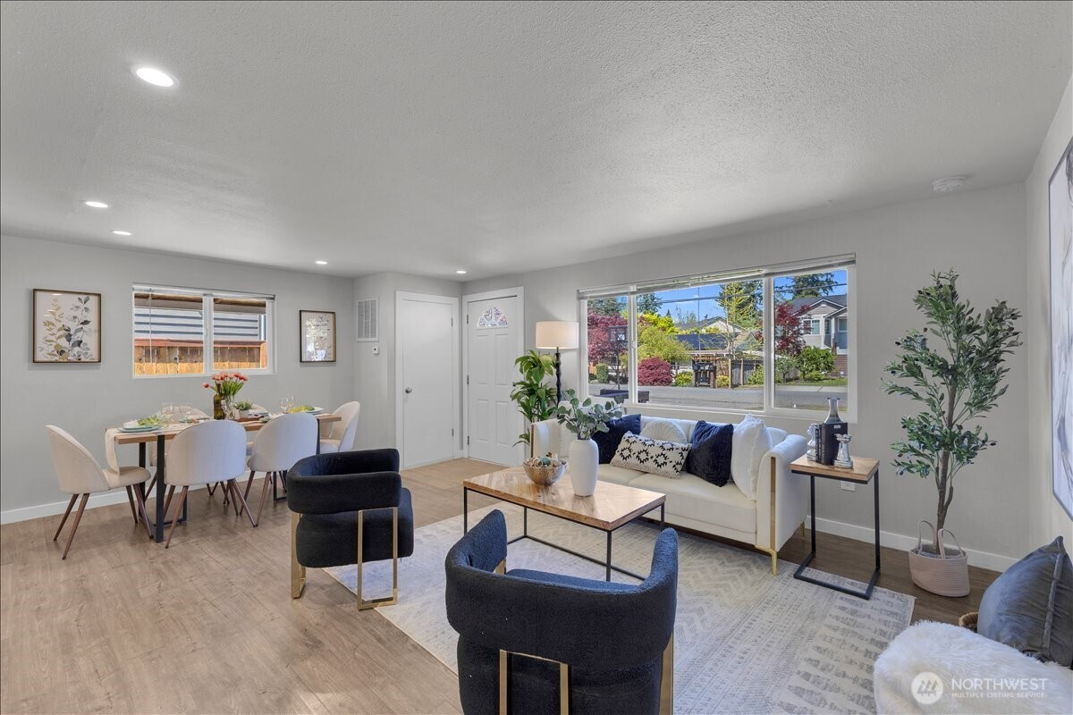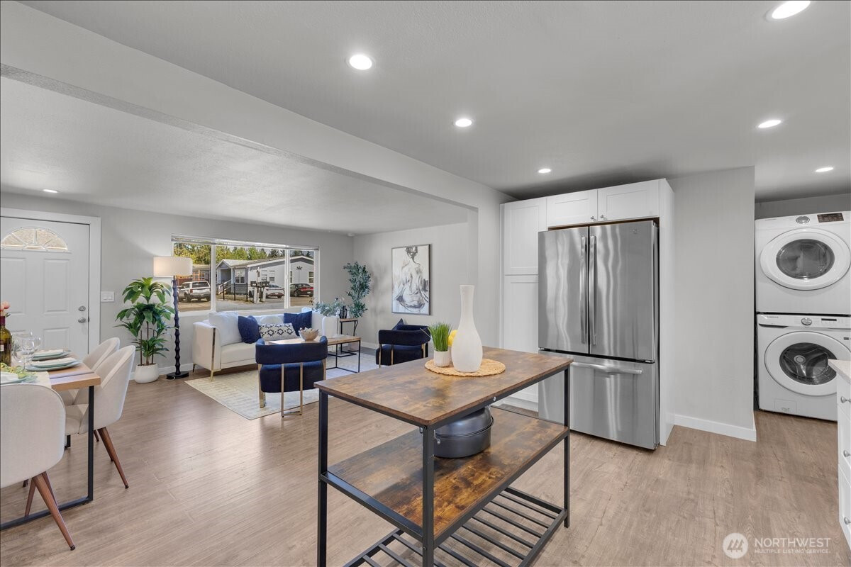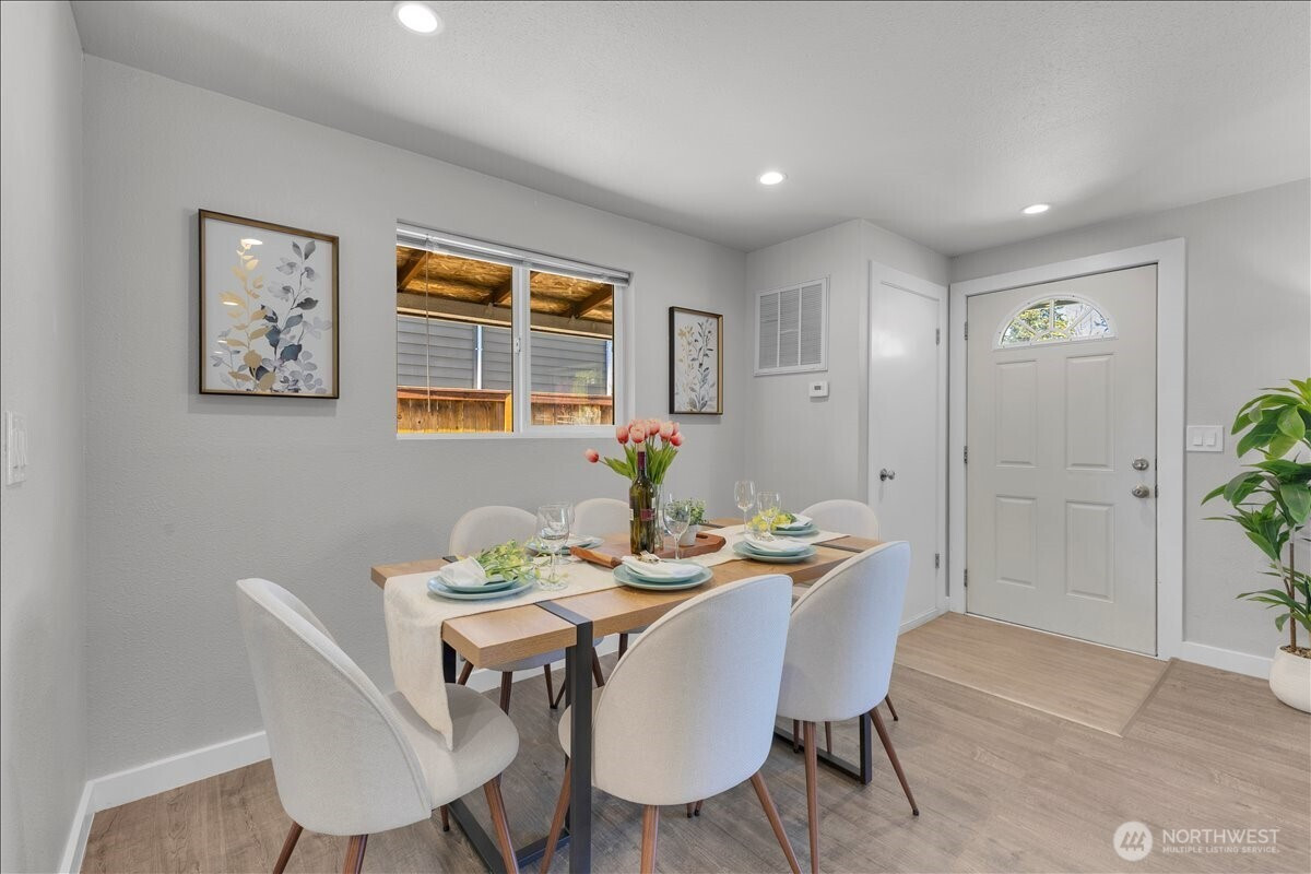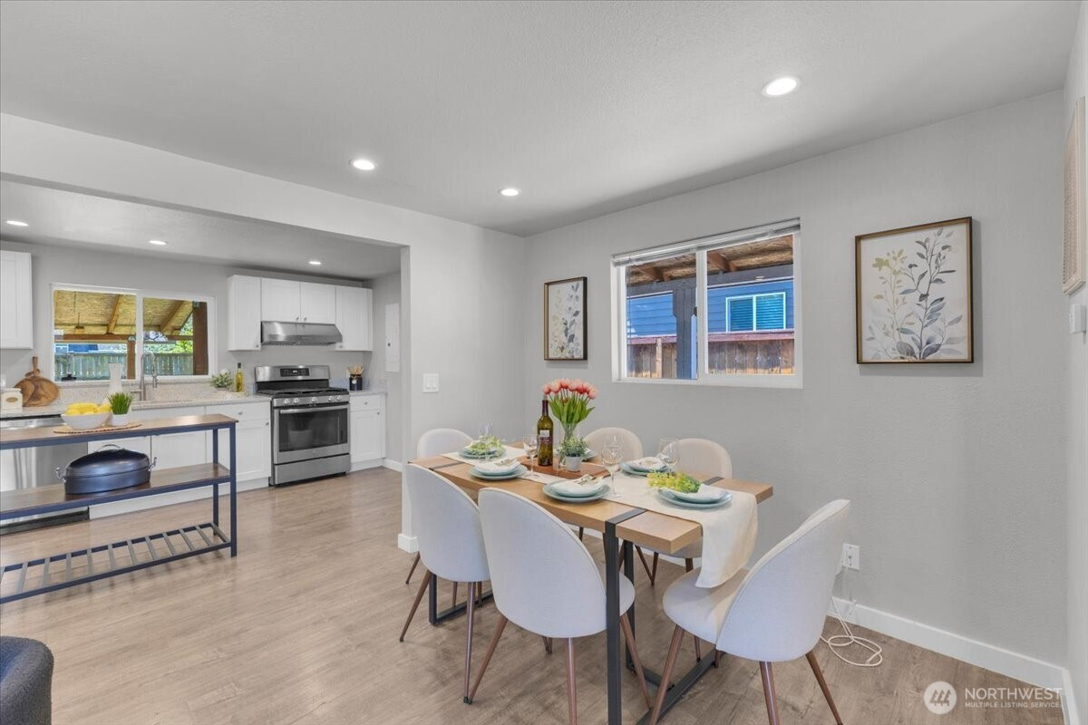 Welcome to this thoughtfully updated home in South Everett’s desirable Silver Lake area, offering comfort, convenience, and everyday functionality. Situated on a generous, level lot, this 2-bedroom, 2-bath residence offers 912 sq ft with an efficient layout that lives larger than its footprint. The open-concept design creates a seamless flow between the kitchen, dining, and living areas—ideal for both daily living and entertaining.The kitchen is well-appointed with stainless steel appliances, granite countertops, and ample cabinetry, opening directly into the main living space. Durable laminate flooring runs throughout, providing a clean, modern, and low-maintenance finish.Both bedrooms are well-sized, including a primary suite with its own private bath, offering a comfortable retreat.Step outside to a fully fenced backyard with a covered deck—perfect for year-round use, pets, or gatherings. The large lot provides flexibility for outdoor living, gardening, or future potential.Conveniently located near Silver Lake, Everett Mall, and major employers like Boeing, with easy access to I-5, Hwy 527, park & rides, dining, and shopping. Enjoy the added benefit of walkability to local elementary, middle, and high schools.Whether you're a first-time buyer, downsizing, or looking for a strong investment opportunity, this home offers a compelling combination of location, updates, and long-term potential. Pre-inspected for added peace of mind.