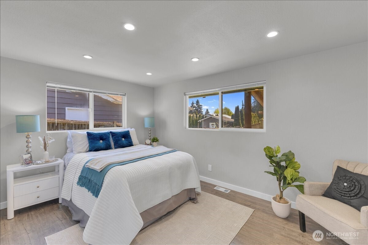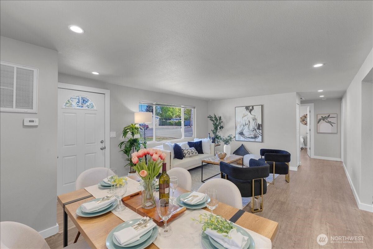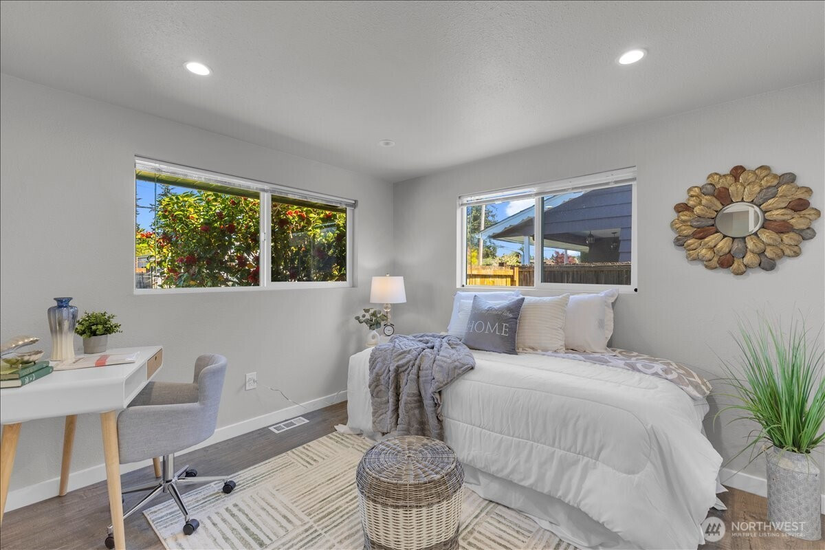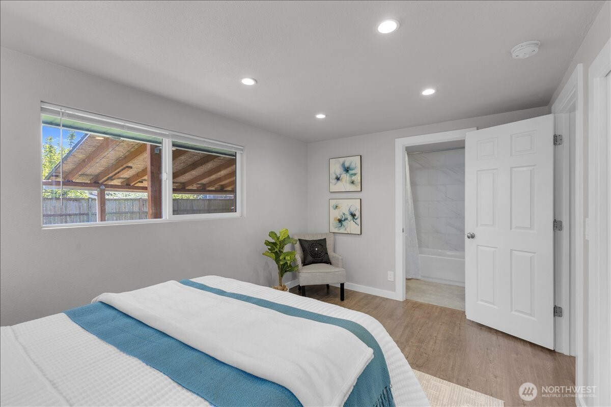 Welcome to this thoughtfully updated home in South Everett’s desirable Silver Lake area, offering comfort, convenience, and everyday functionality. Situated on a generous, level lot, this 2-bedroom, 2-bath residence offers 912 sq ft with an efficient layout that lives larger than its footprint. The open-concept design creates a seamless flow between the kitchen, dining, and living areas—ideal for both daily living and entertaining.The kitchen is well-appointed with stainless steel appliances, granite countertops, and ample cabinetry, opening directly into the main living space. Durable laminate flooring runs throughout, providing a clean, modern, and low-maintenance finish.Both bedrooms are well-sized, including a primary suite with its own private bath, offering a comfortable retreat.Step outside to a fully fenced backyard with a covered deck—perfect for year-round use, pets, or gatherings. The large lot provides flexibility for outdoor living, gardening, or future potential.Conveniently located near Silver Lake, Everett Mall, and major employers like Boeing, with easy access to I-5, Hwy 527, park & rides, dining, and shopping. Enjoy the added benefit of walkability to local elementary, middle, and high schools.Whether you're a first-time buyer, downsizing, or looking for a strong investment opportunity, this home offers a compelling combination of location, updates, and long-term potential. Pre-inspected for added peace of mind.