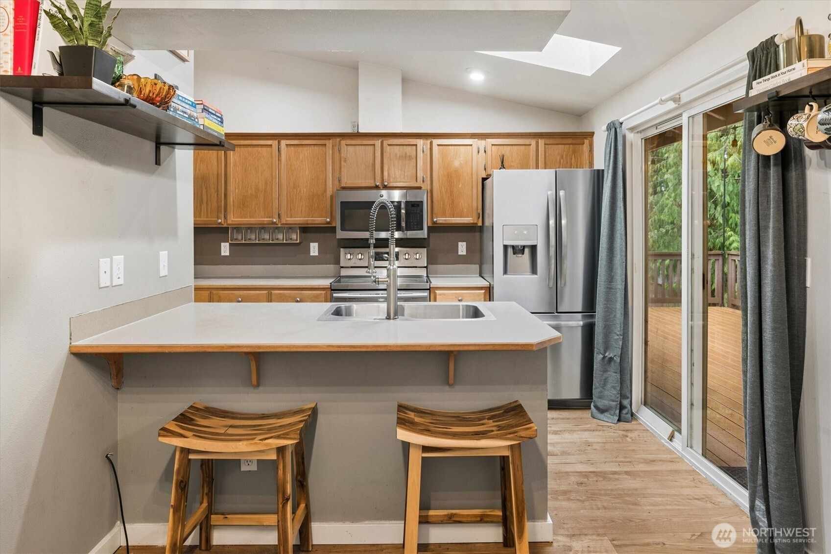 Turn-key Lake Stevens rambler in a excellent location near North Cove Park & Boat Launch, Downtown, the Centennial Trail, and more. Set on a 7,405 sq ft lot backing Catherine Creek Park, this 3-bedroom, 2-bath home offers 1,200 sq ft of easy, functional living with a Brand-New roof in 2025 for peace of mind. Enjoy indoor-outdoor entertaining on the large deck overlooking a private, wooded backdrop. Attached garage, off street parking, plus room for boat/RV potential leaves enough space for all the vehicles and storage. Convenient to shopping, dining, and Lake Stevens’ highly regarded schools—this home is freshened up, and ready to enjoy. No HOA.