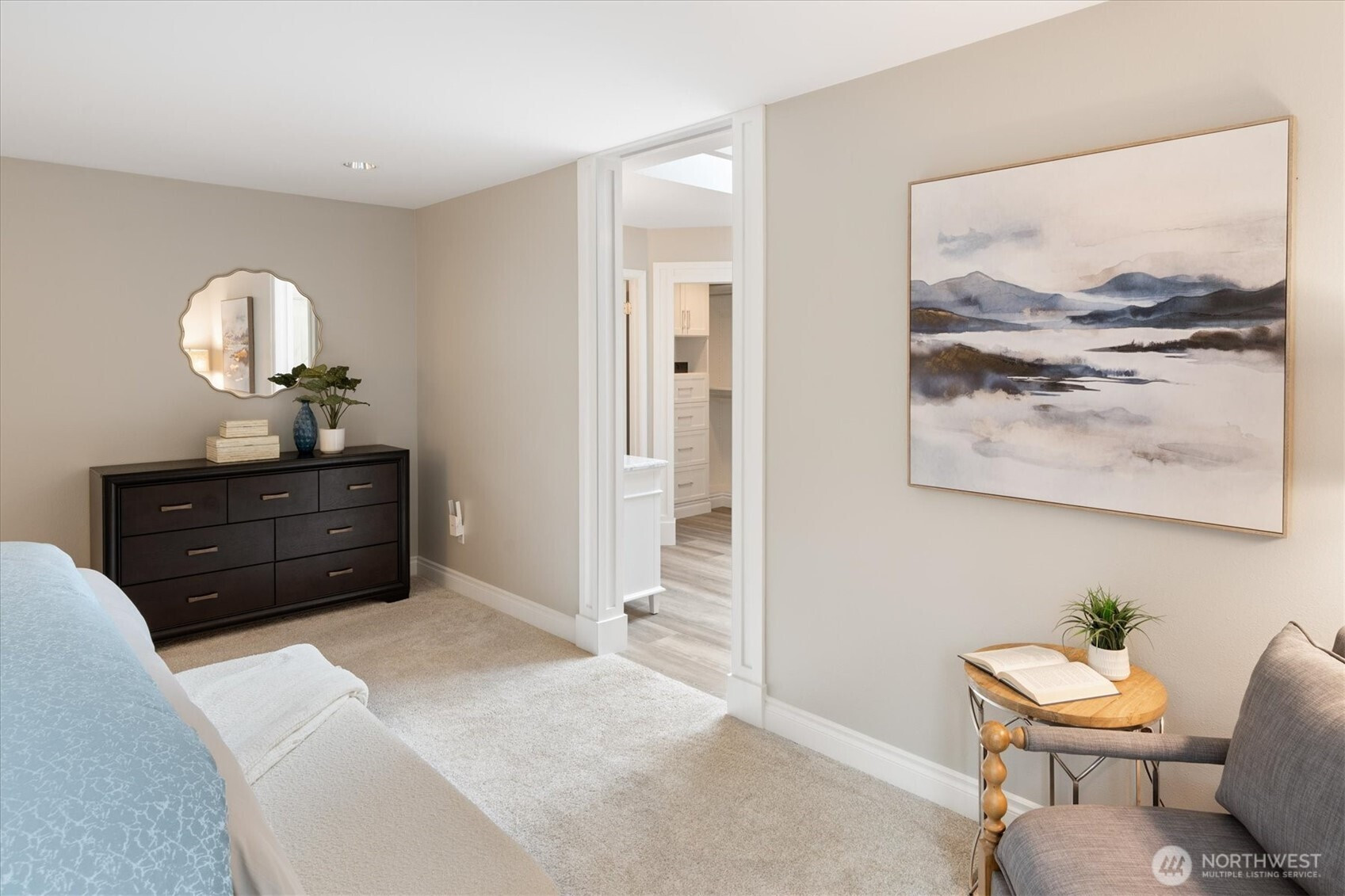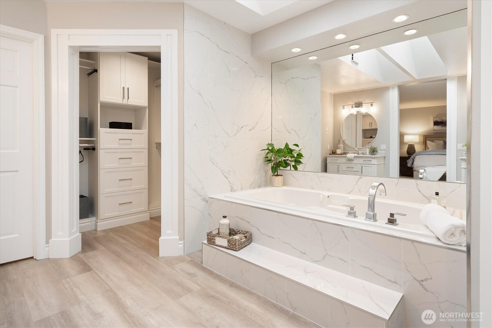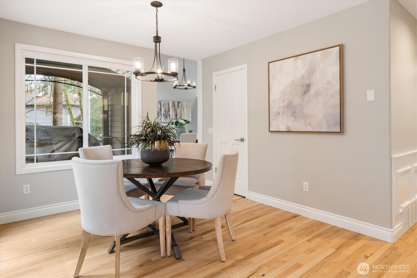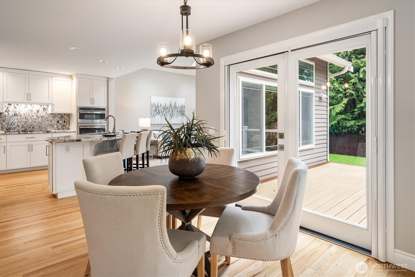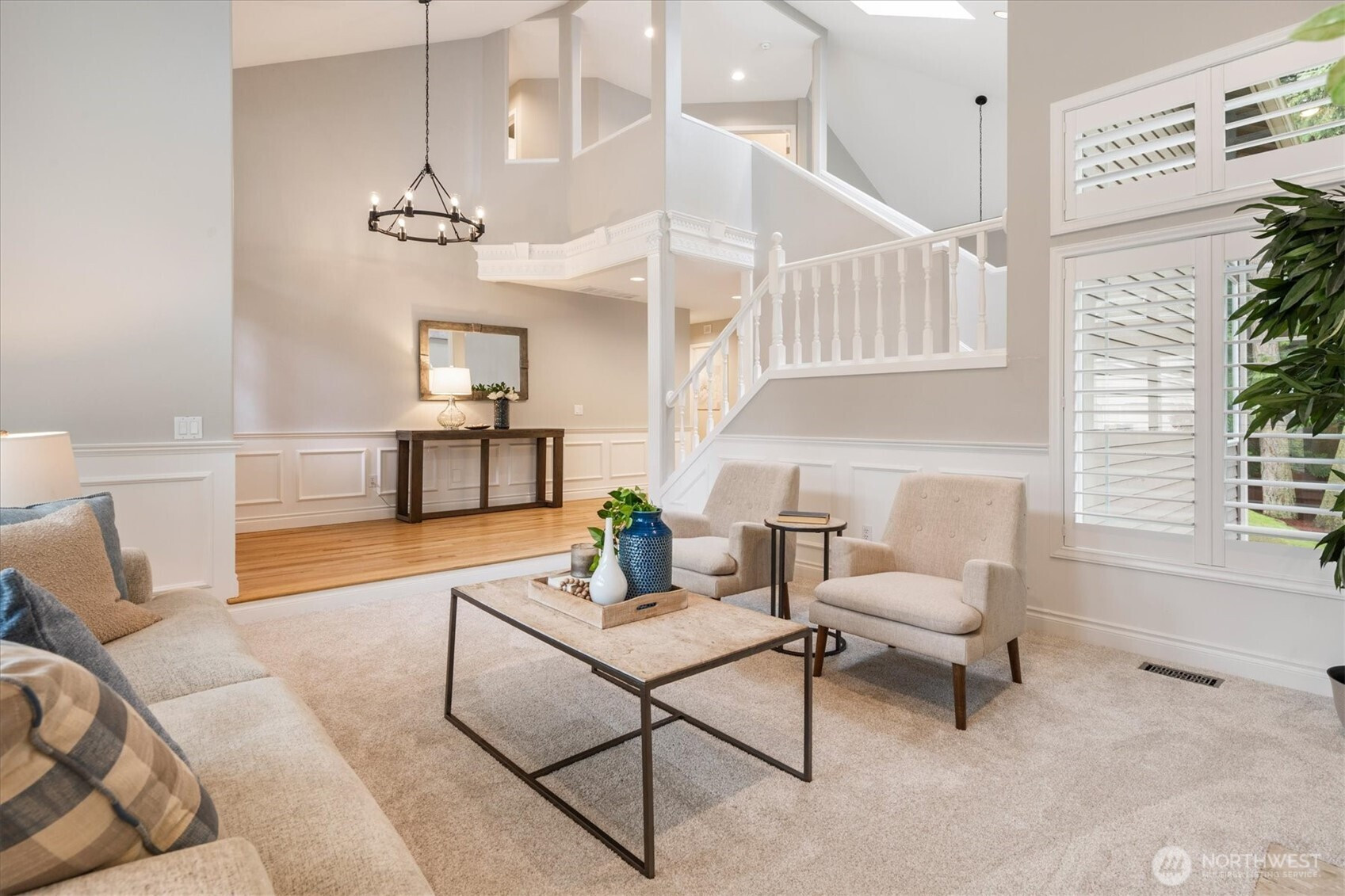 Welcome to this beautifully updated home in sought-after Mukilteo! Thoughtfully maintained and extensively renovated, this 5-bedroom gem offers the perfect blend of comfort, style, and function. The main living areas impress with soaring vaulted ceilings and skylights, stunning millwork, gleaming hardwood floors refinished and extended throughout. Cozy up in front of the fireplaces in the living room and family room. Custom shutters and blinds add a polished, cohesive finish to every room. The updated kitchen features freshly painted cabinetry, updated appliances, and granite countertops — ideal for everyday living and entertaining. All bathrooms have been fully remodeled with modern finishes. The primary suite boasts custom built-in closets, and new carpet flows through the bedrooms. Step outside to a lush, beautifully landscaped yard with mature plantings, colorful flowers, and a peaceful greenbelt backdrop — your own private retreat. The freshly replaced deck is perfect for entertaining or relaxing. Additional updates include a newer water heater, refreshed central vacuum system, and new interior paint throughout. Located in a wonderful neighborhood with sidewalks, this home is just minutes from Mukilteo’s waterfront, top-rated schools, Boeing, and easy ferry and freeway access. Move-in ready and truly turn-key — don’t miss this one!