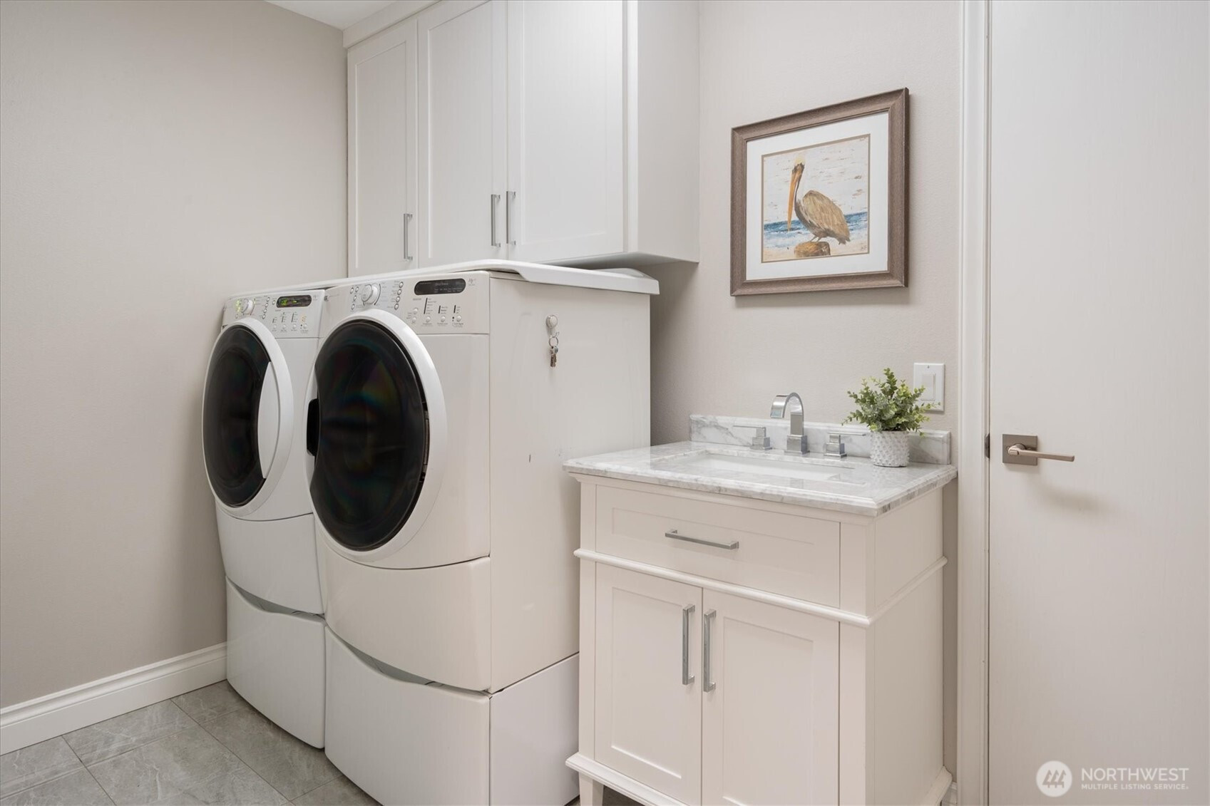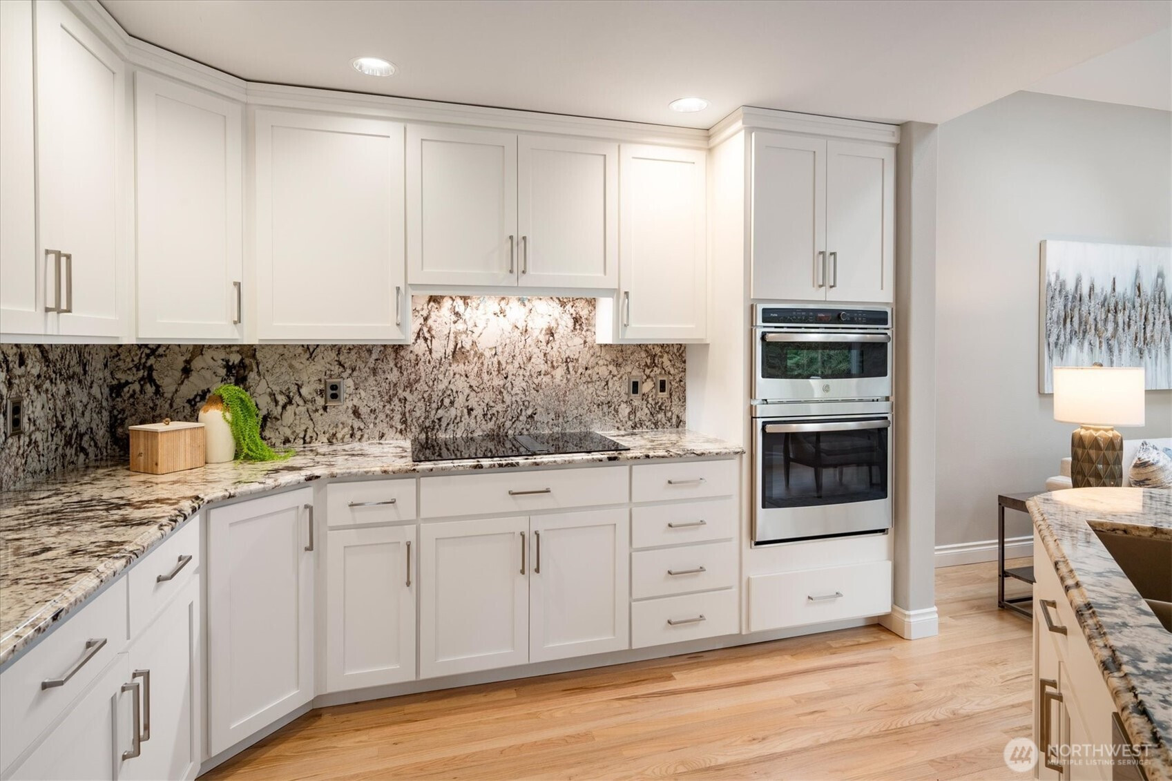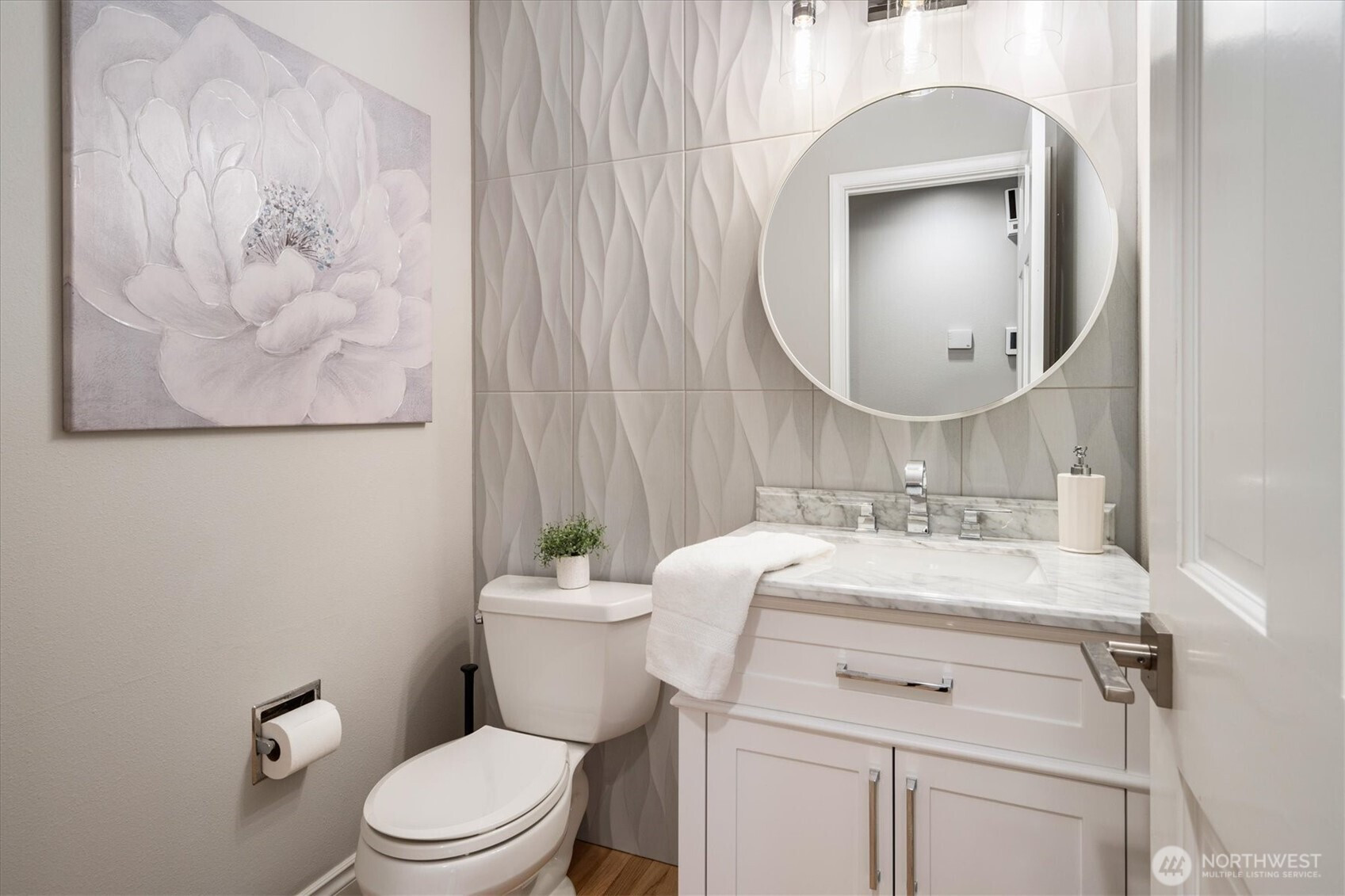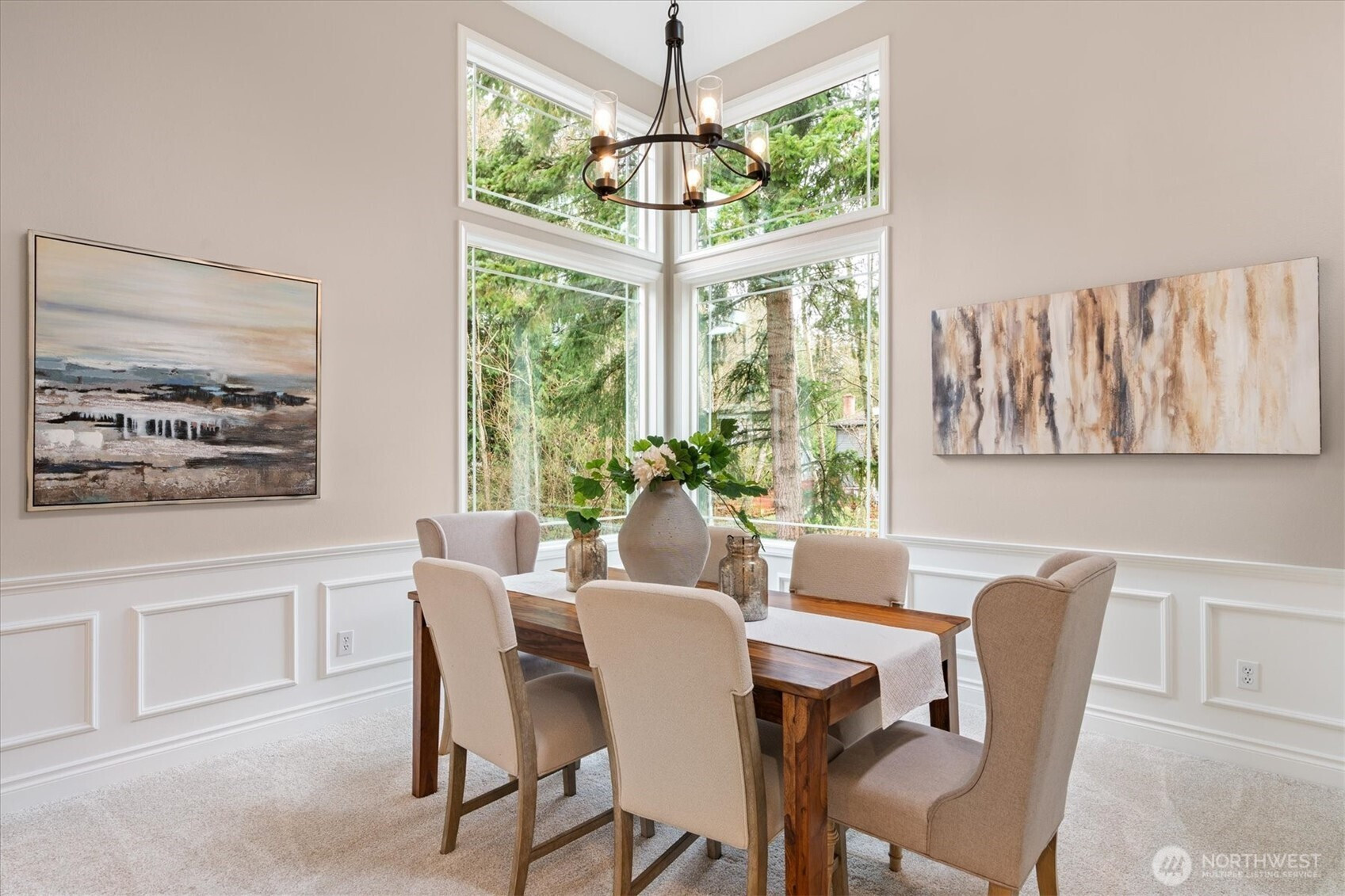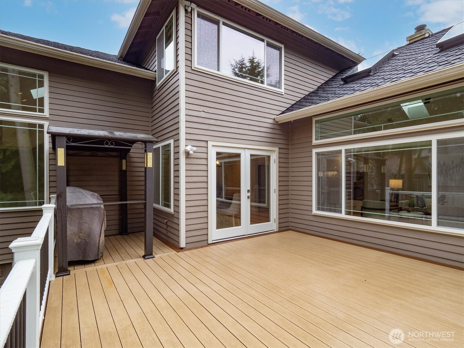 Welcome to this beautifully updated home in sought-after Mukilteo! Thoughtfully maintained and extensively renovated, this 5-bedroom gem offers the perfect blend of comfort, style, and function. The main living areas impress with soaring vaulted ceilings and skylights, stunning millwork, gleaming hardwood floors refinished and extended throughout. Cozy up in front of the fireplaces in the living room and family room. Custom shutters and blinds add a polished, cohesive finish to every room. The updated kitchen features freshly painted cabinetry, updated appliances, and granite countertops — ideal for everyday living and entertaining. All bathrooms have been fully remodeled with modern finishes. The primary suite boasts custom built-in closets, and new carpet flows through the bedrooms. Step outside to a lush, beautifully landscaped yard with mature plantings, colorful flowers, and a peaceful greenbelt backdrop — your own private retreat. The freshly replaced deck is perfect for entertaining or relaxing. Additional updates include a newer water heater, refreshed central vacuum system, and new interior paint throughout. Located in a wonderful neighborhood with sidewalks, this home is just minutes from Mukilteo’s waterfront, top-rated schools, Boeing, and easy ferry and freeway access. Move-in ready and truly turn-key — don’t miss this one!