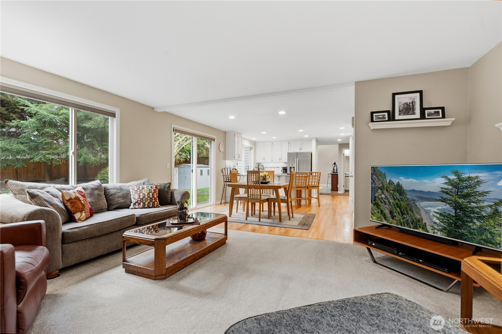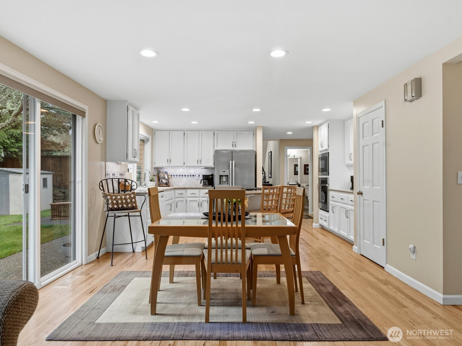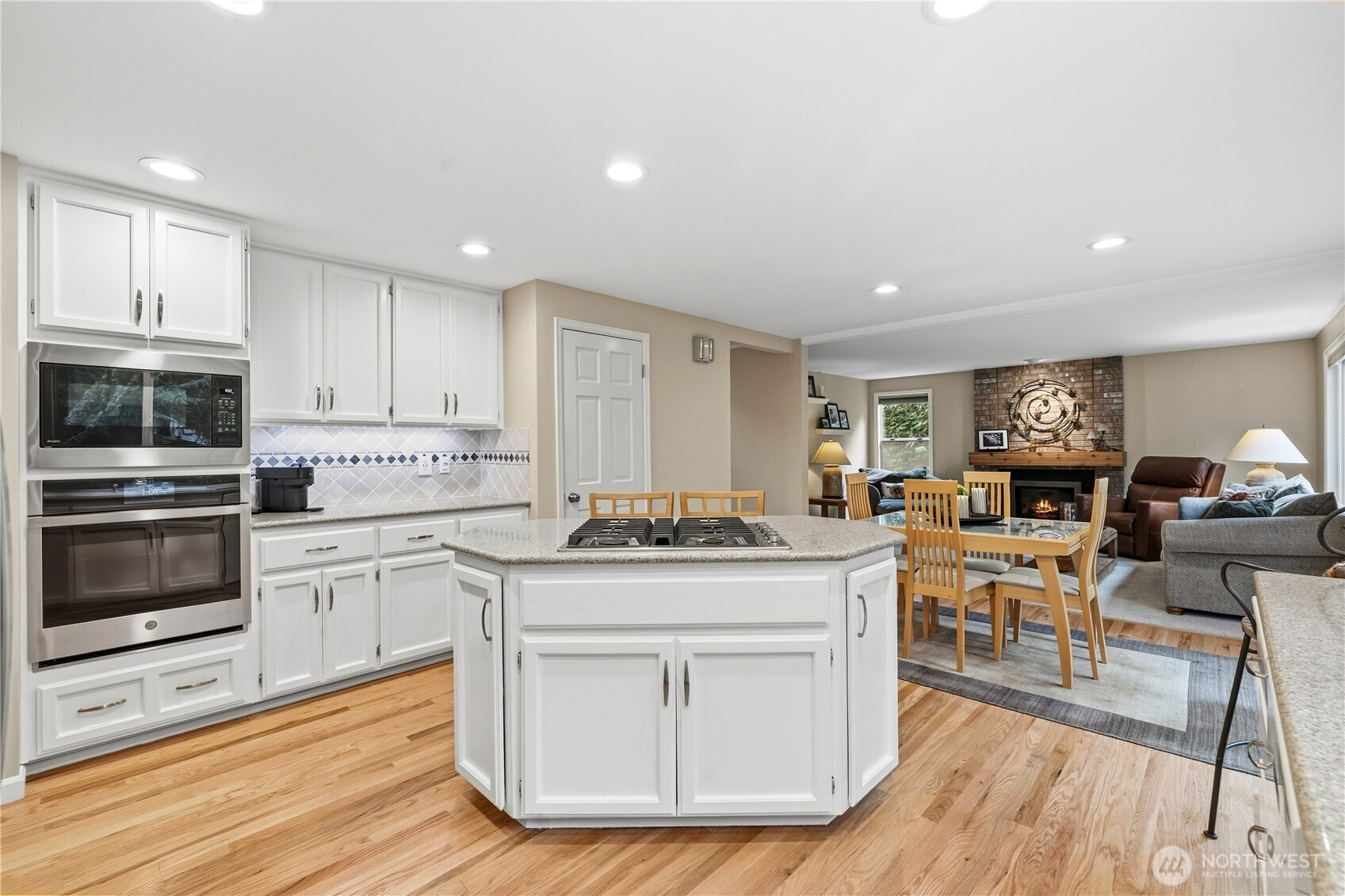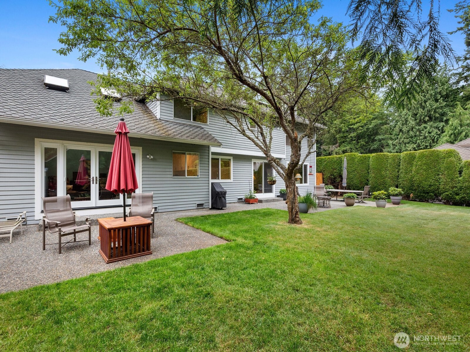 Nestled on a peaceful cul-de-sac in Mukilteo’s desirable Harbour Heights neighborhood, this spacious, beautifully maintained traditional two-story home offers 3,036 sq ft of thoughtfully designed living space on an 8,712 sq ft lot. Warm and inviting, the home is filled with natural light from an abundance of windows and skylights, complemented by beautifully refinished oak hardwood floors that add character and charm. The versatile floor plan features formal living and dining rooms, two separate main-floor family rooms, and dual staircases for convenient access to the second level. Upstairs, you’ll find four bedrooms, including a large primary suite with 5-piece bath, plus a flexible loft space with custom built-ins—ideal for a playroom, homework zone, media space, or home office. French doors in family room and sliding glass door off kitchen open to a private backyard oasis with spacious patio, offering seamless indoor-outdoor entertaining and everyday living. Convenient access to nearby parks, schools, shopping, dining, and commuter routes make this an ideal location for both daily living and weekend enjoyment.