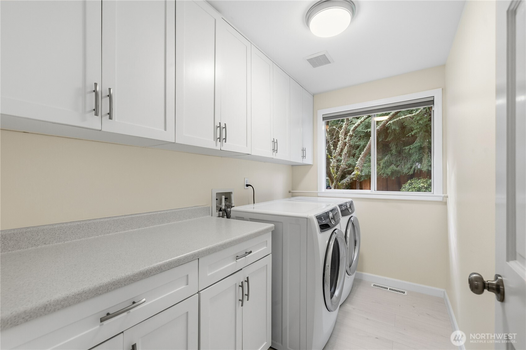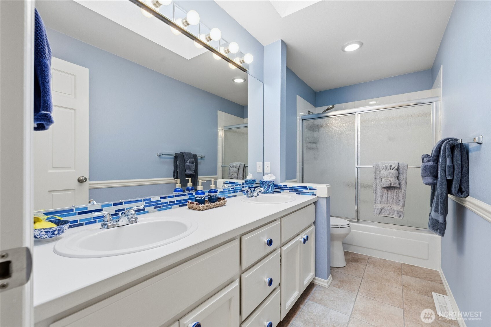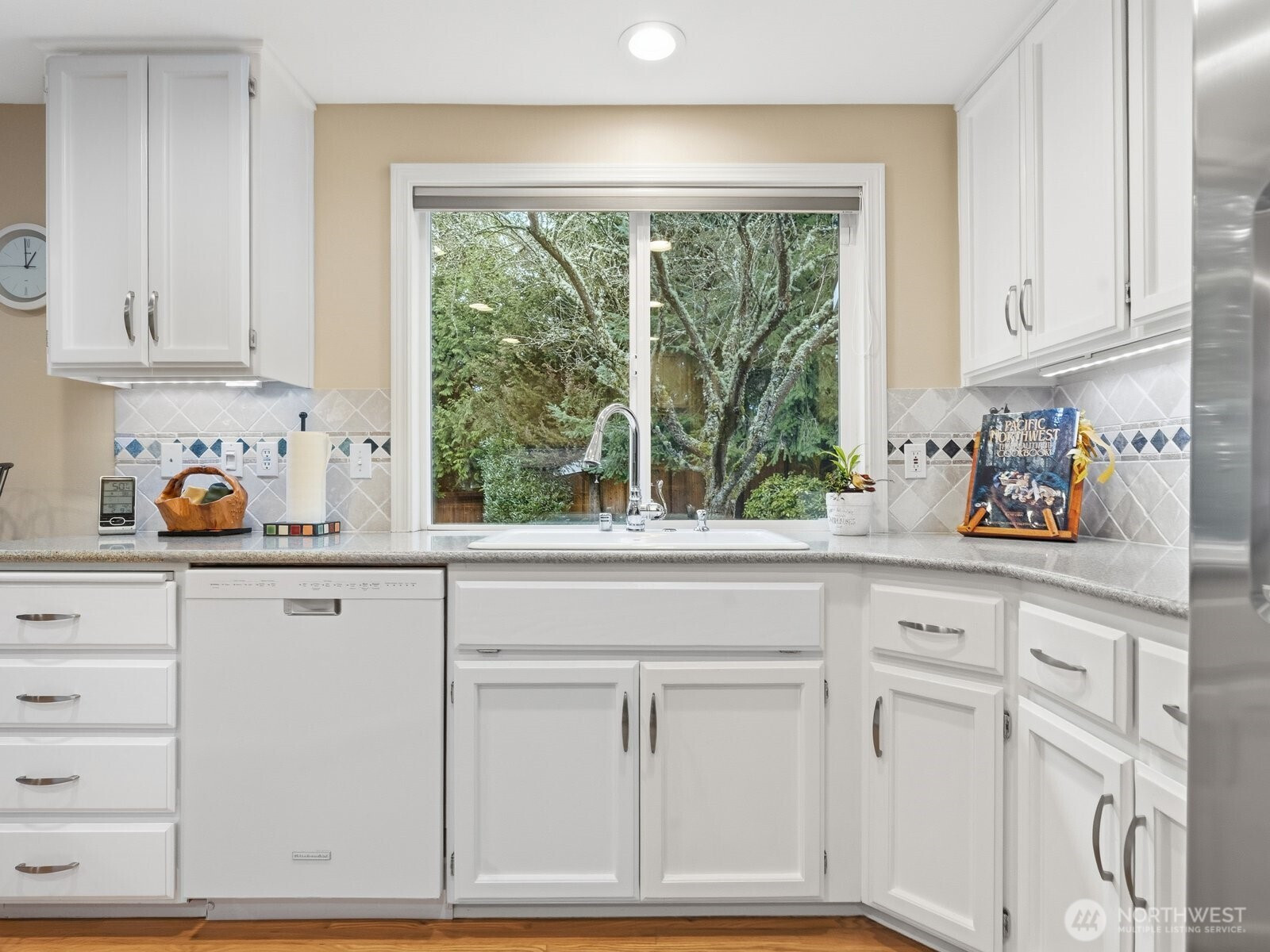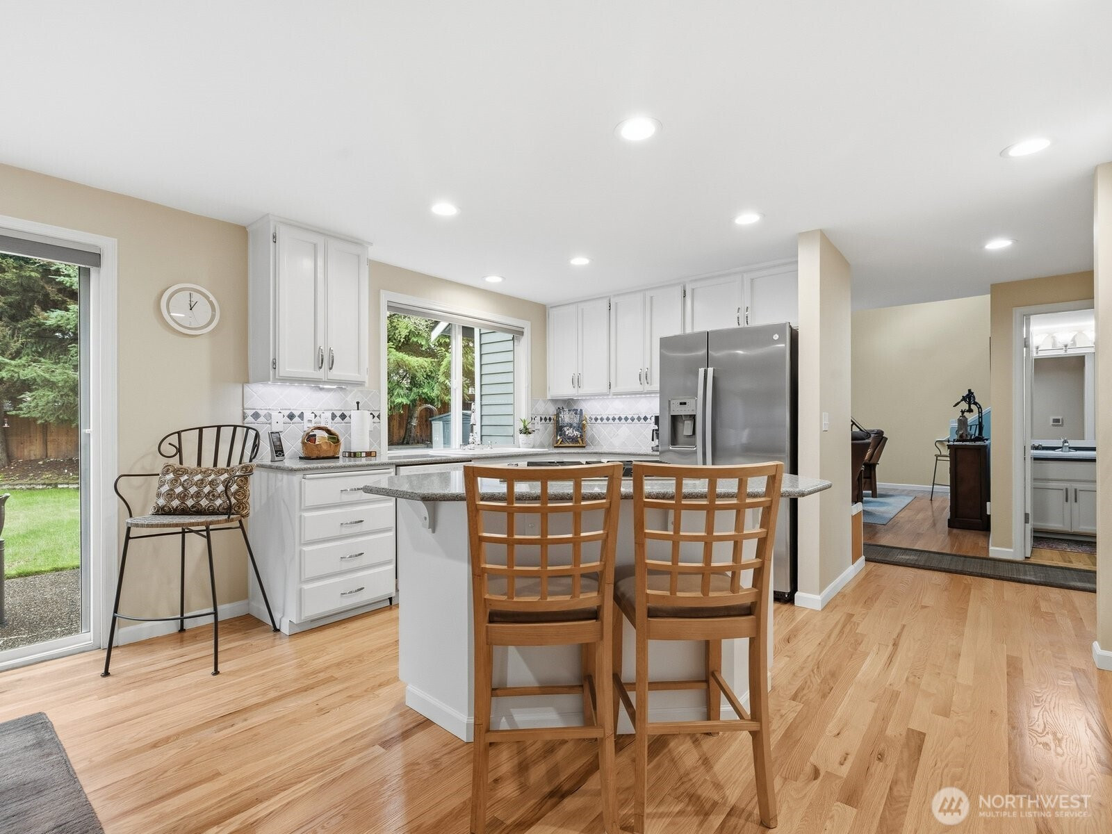 Nestled on a peaceful cul-de-sac in Mukilteo’s desirable Harbour Heights neighborhood, this spacious, beautifully maintained traditional two-story home offers 3,036 sq ft of thoughtfully designed living space on an 8,712 sq ft lot. Warm and inviting, the home is filled with natural light from an abundance of windows and skylights, complemented by beautifully refinished oak hardwood floors that add character and charm. The versatile floor plan features formal living and dining rooms, two separate main-floor family rooms, and dual staircases for convenient access to the second level. Upstairs, you’ll find four bedrooms, including a large primary suite with 5-piece bath, plus a flexible loft space with custom built-ins—ideal for a playroom, homework zone, media space, or home office. French doors in family room and sliding glass door off kitchen open to a private backyard oasis with spacious patio, offering seamless indoor-outdoor entertaining and everyday living. Convenient access to nearby parks, schools, shopping, dining, and commuter routes make this an ideal location for both daily living and weekend enjoyment.