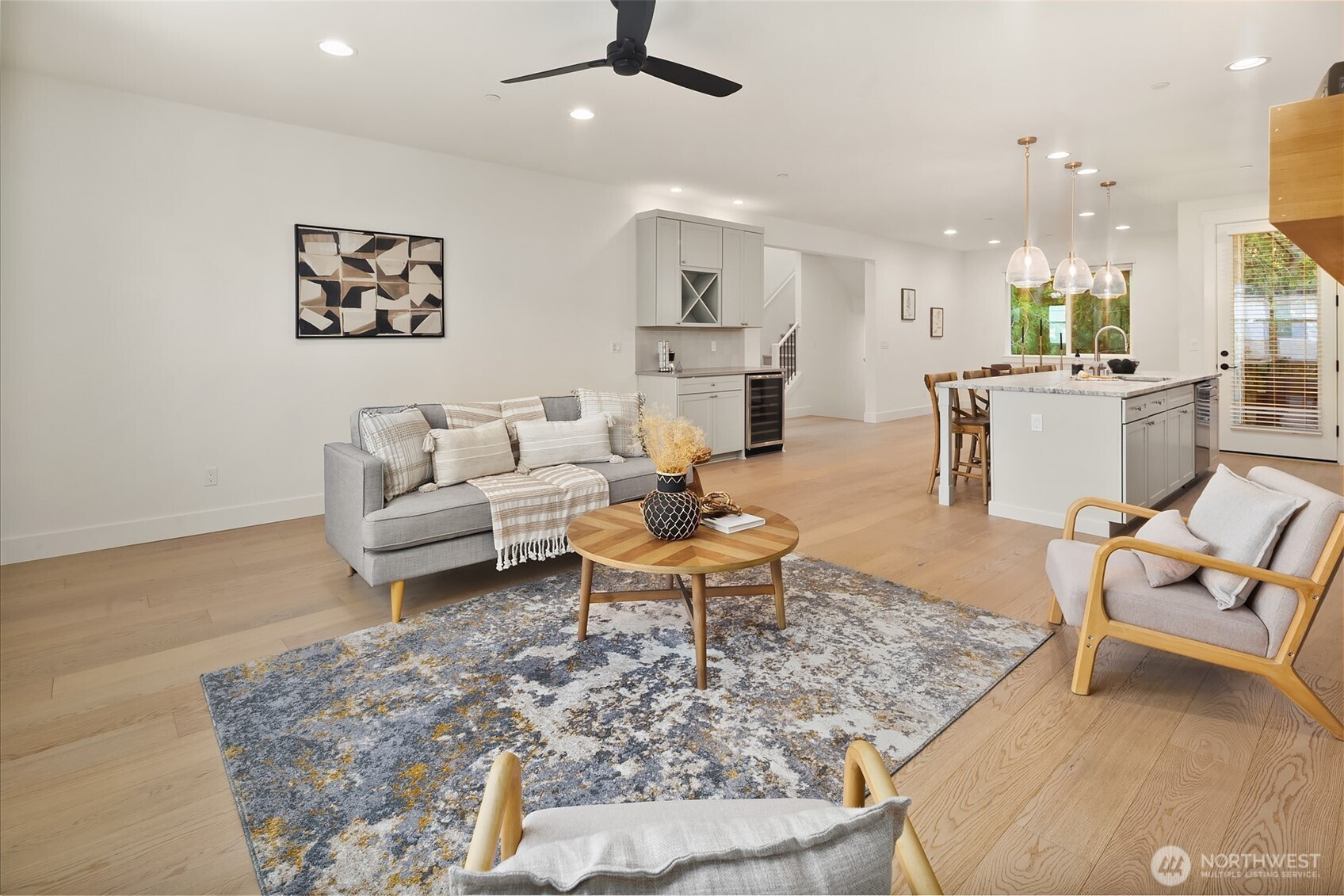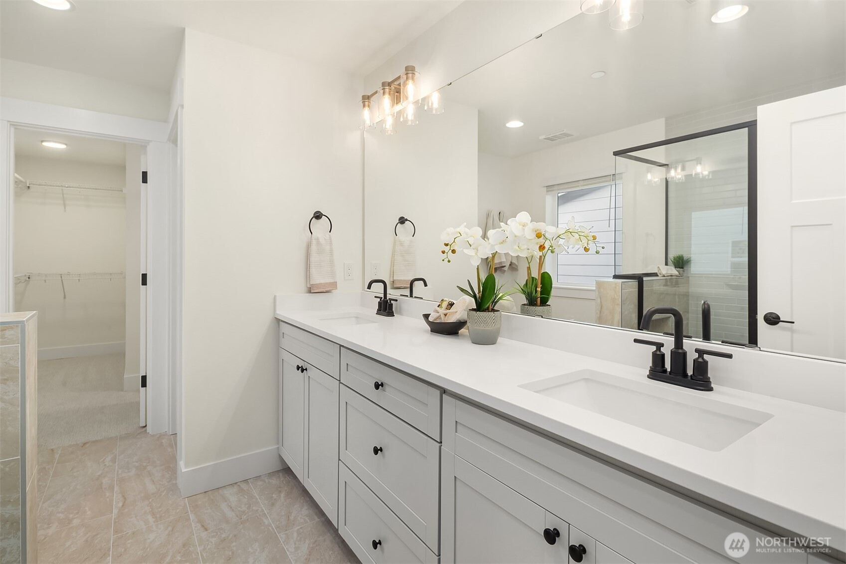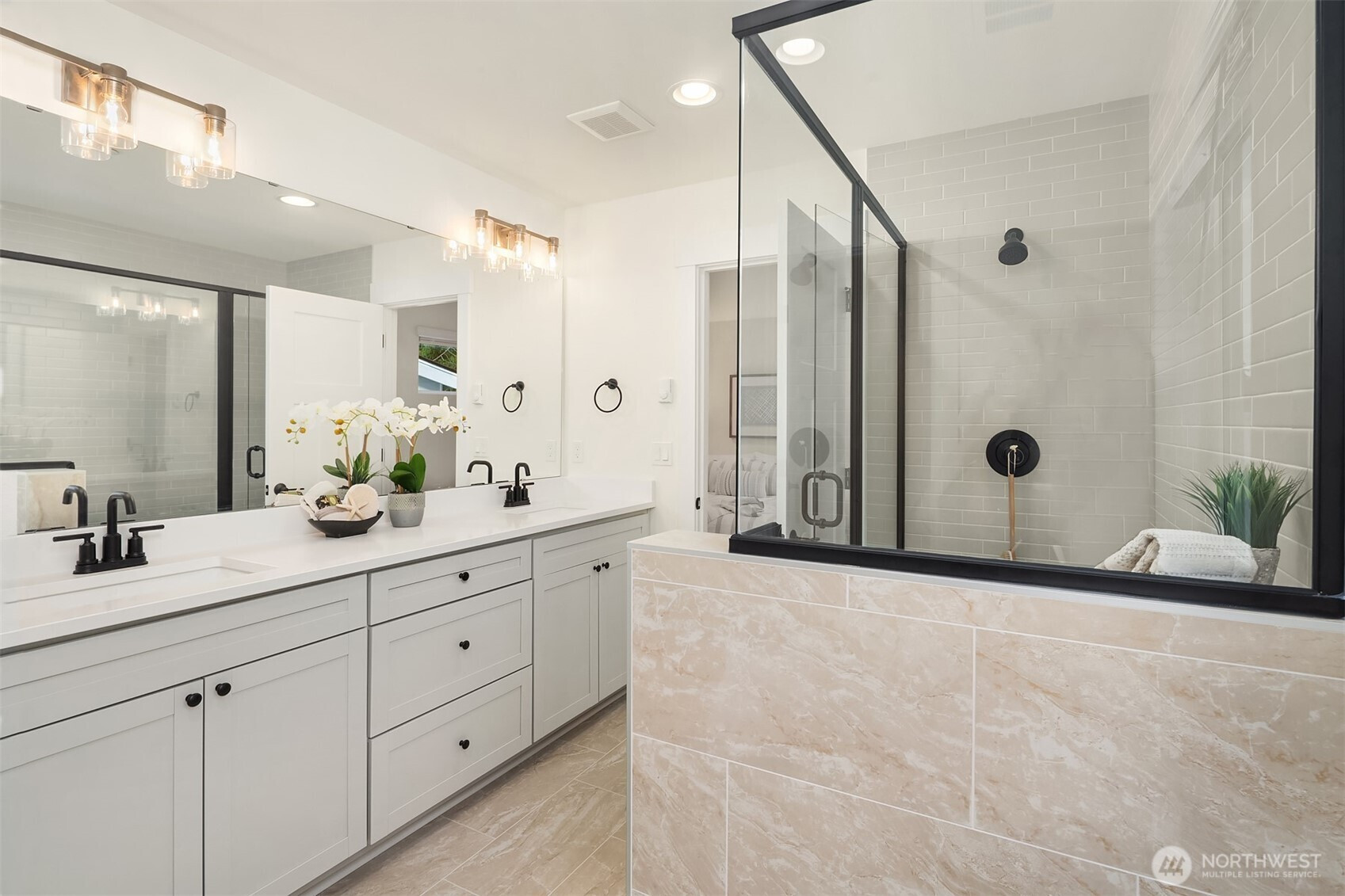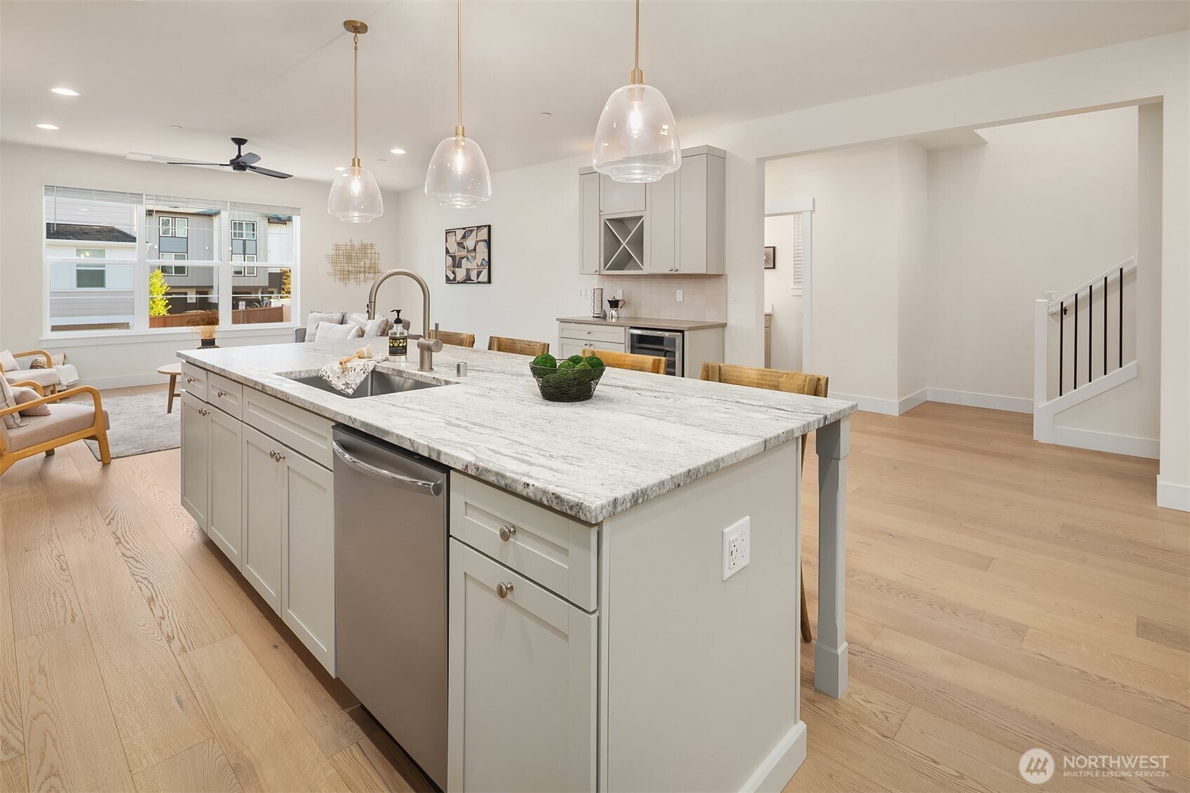 BUILDER INCENTIVES $50K rate buydown to 4.99%. Brand-new construction by Glen Eagle Homes, where modern farmhouse style meets a fresh coastal aesthetic. Thoughtfully designed with an open-concept main level, wide-plank hardwoods, and a gas fireplace wrapped in floor-to-ceiling stone. Expansive windows frame peekaboo views of the Cascades and fill the home with natural light, while the covered deck extends living outdoors year-round. The kitchen is built for gathering, featuring a large island with seating and storage, shaker-style Aristokraft cabinetry, buffet with wine storage and beverage fridge, plus a walk-in pantry. Stainless steel appliances complete the space. A main-level den and powder bath add flexibility. Upstairs, the generous primary suite offers a ¾ en-suite and walk-in closet. A versatile flex space can serve as a fourth bedroom, rec room with wet bar, or MIL setup. Ideal commuter location with easy access to everyday conveniences.