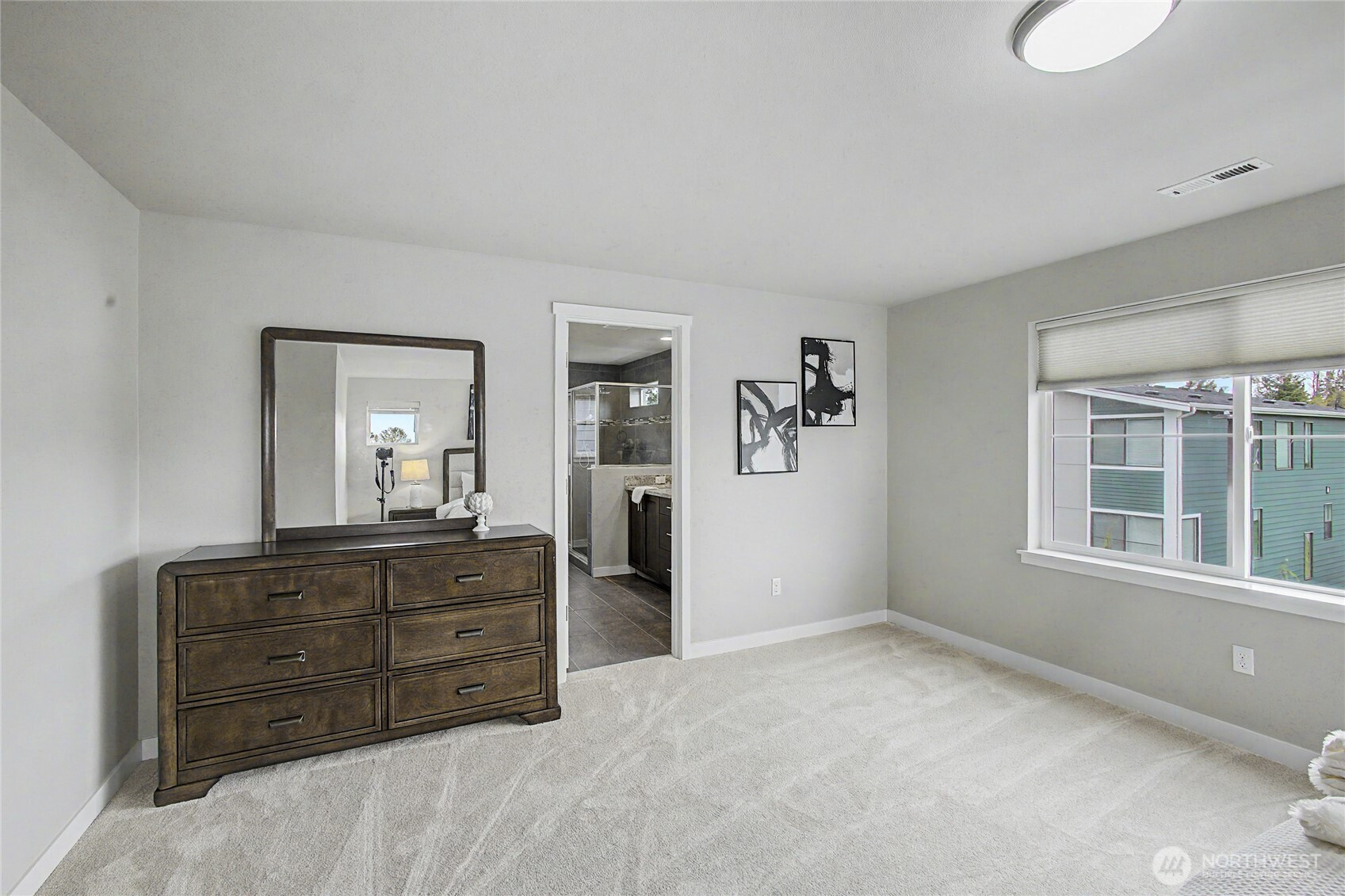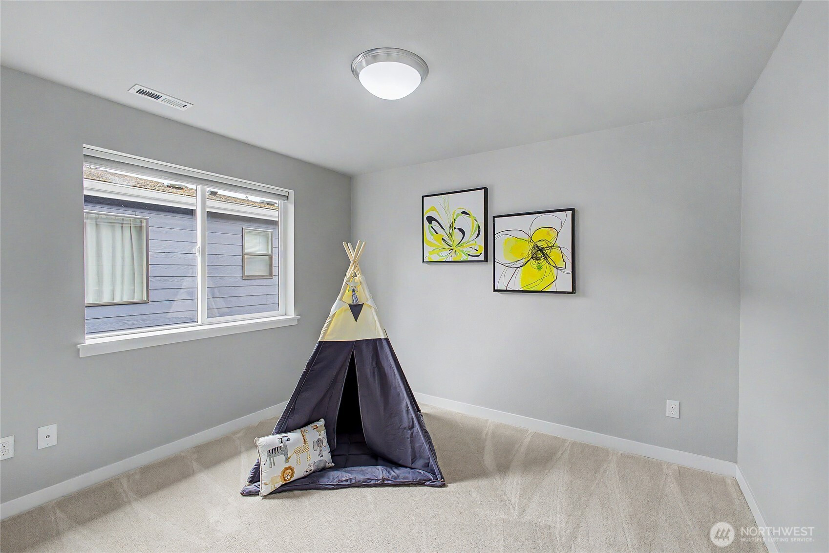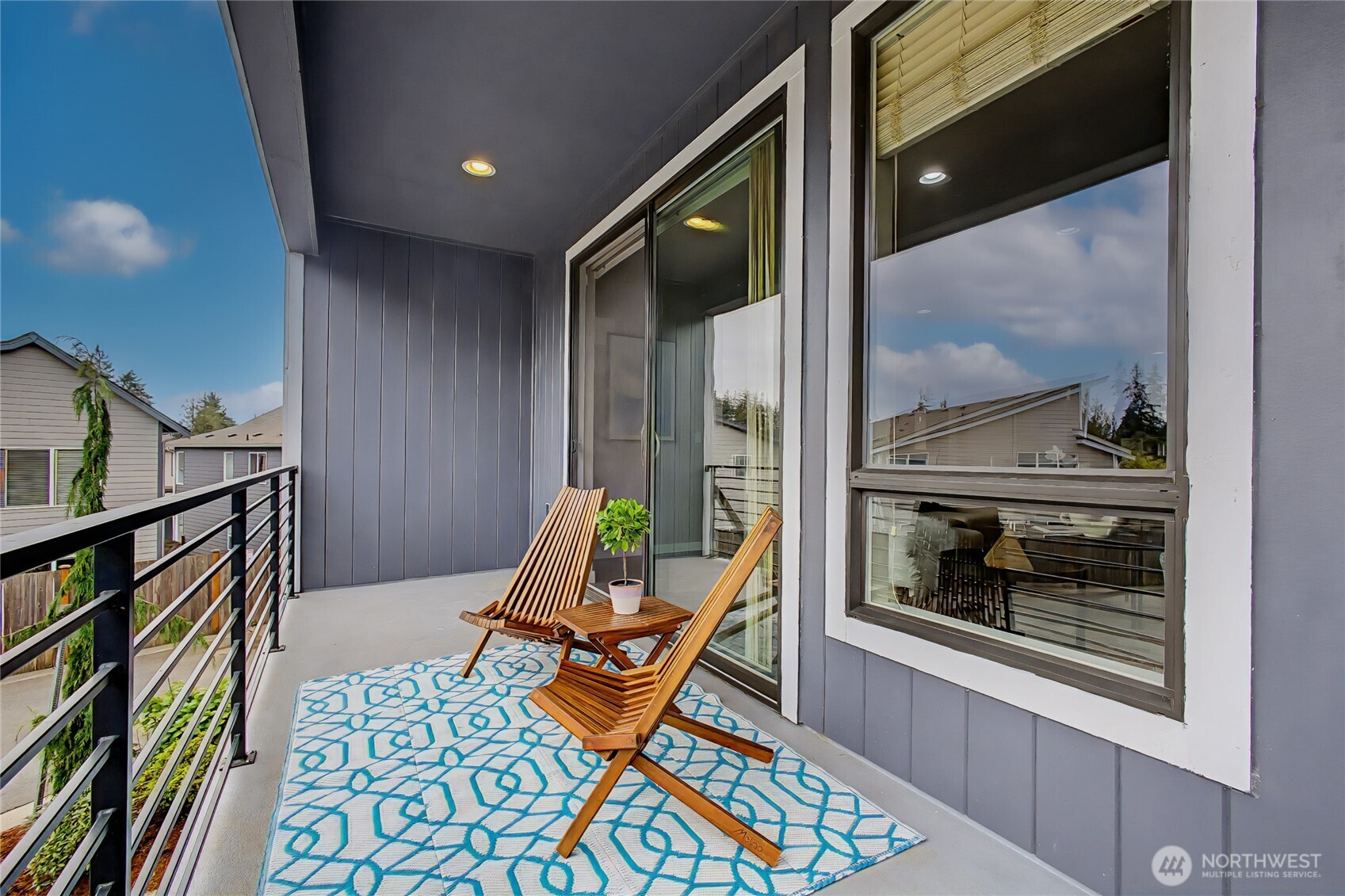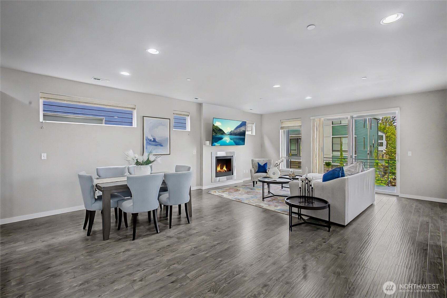 Welcome to this beautifully refreshed, move-in ready North-facing End home offering a versatile 3-story layout with 4 bedrooms, den/office, and loft. Filled with ample natural light, this thoughtfully designed home has room for everyone, including a private entry-level ensuite ideal for guests or multi-gen living. Fresh interior paint, new carpet, and LVP flooring create a crisp, modern feel, while A/C, fiber internet, Tesla EV charger, and tankless water heater add everyday comfort and convenience. The open-concept main level features a spacious kitchen with large island, pantry, stainless appliances, Gas Stove and seamless flow to the dining and living areas, with access to a covered outdoor space perfect for entertaining. Enjoy a fully fenced, low-maintenance yard plus neighboring community open space and park just beyond the fence for added room to gather and unwind. Oversized 2-car garage. Seller-provided 1-year home warranty adds peace of mind. Stylish, spacious, and ideally located in the sought-after Northshore School District—this is the one, Bring your OFFERS!
