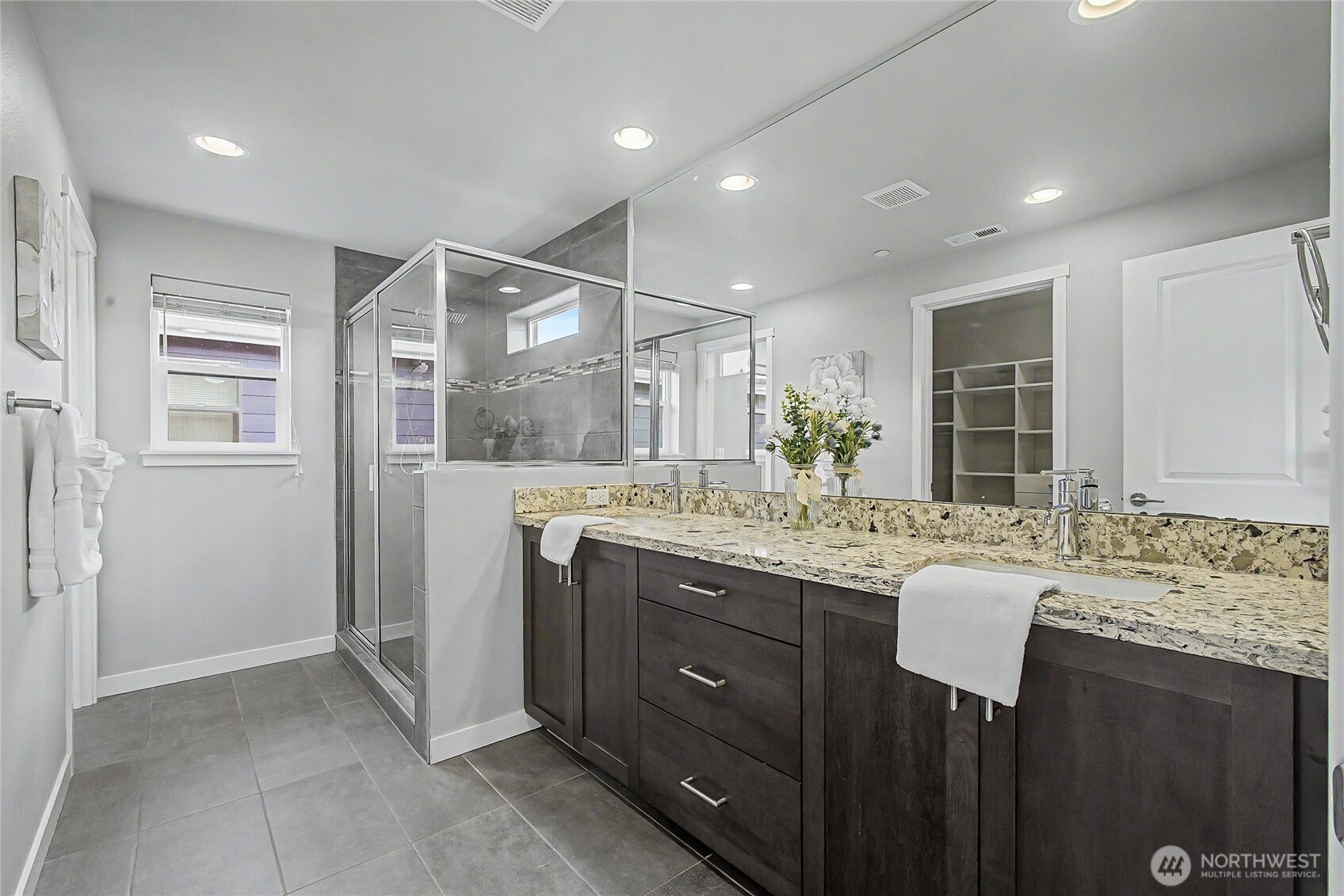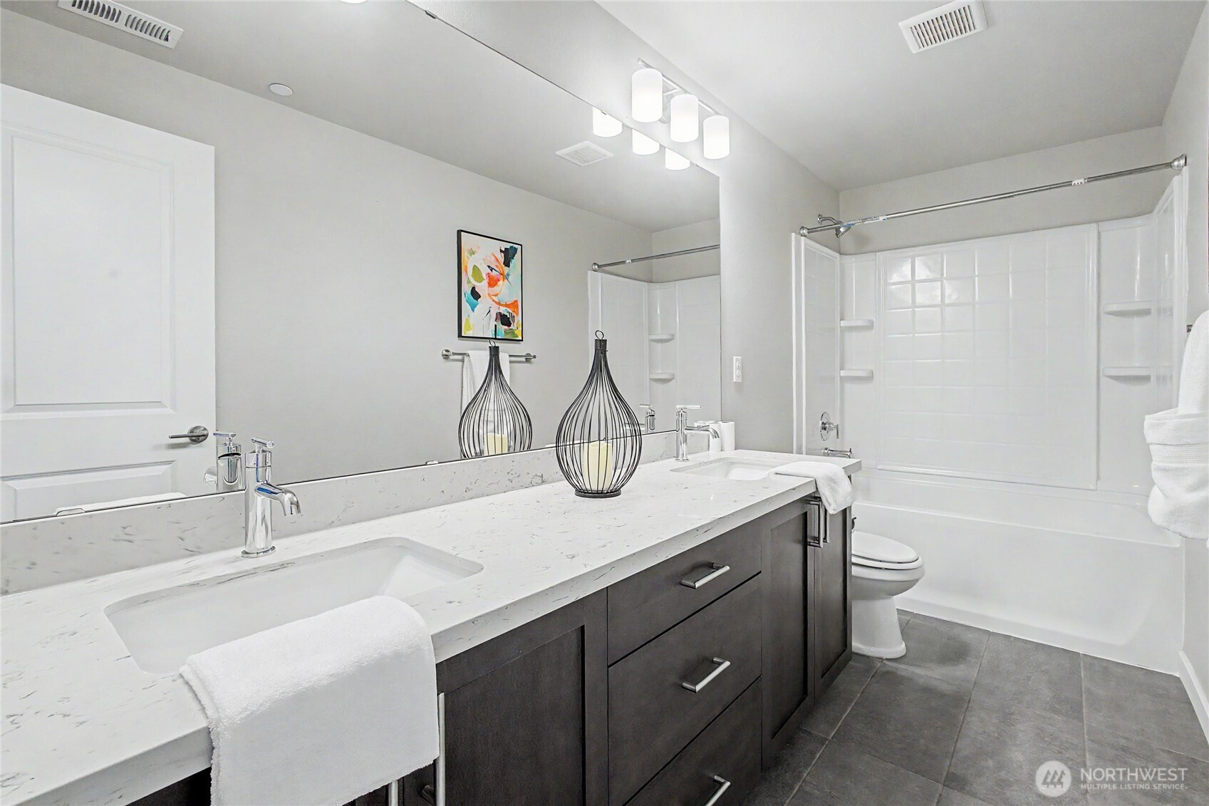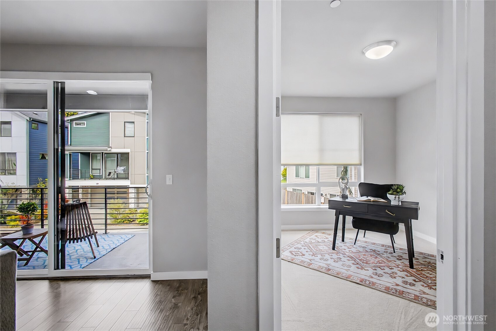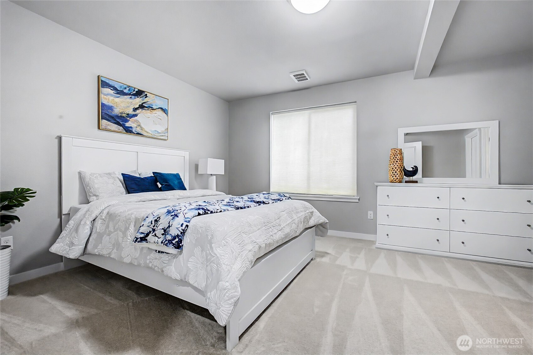 Welcome to this beautifully refreshed, move-in ready North-facing End home offering a versatile 3-story layout with 4 bedrooms, den/office, and loft. Filled with ample natural light, this thoughtfully designed home has room for everyone, including a private entry-level ensuite ideal for guests or multi-gen living. Fresh interior paint, new carpet, and LVP flooring create a crisp, modern feel, while A/C, fiber internet, Tesla EV charger, and tankless water heater add everyday comfort and convenience. The open-concept main level features a spacious kitchen with large island, pantry, stainless appliances, Gas Stove and seamless flow to the dining and living areas, with access to a covered outdoor space perfect for entertaining. Enjoy a fully fenced, low-maintenance yard plus neighboring community open space and park just beyond the fence for added room to gather and unwind. Oversized 2-car garage. Seller-provided 1-year home warranty adds peace of mind. Stylish, spacious, and ideally located in the sought-after Northshore School District—this is the one, Bring your OFFERS!