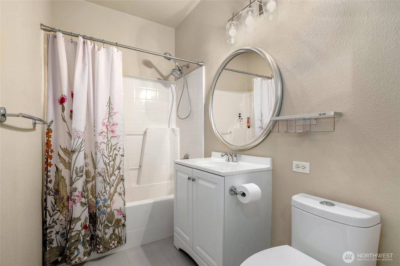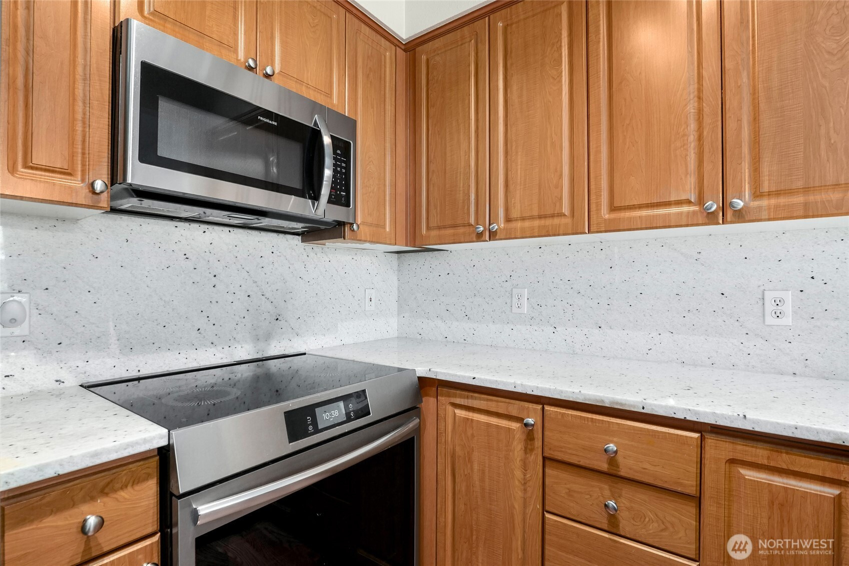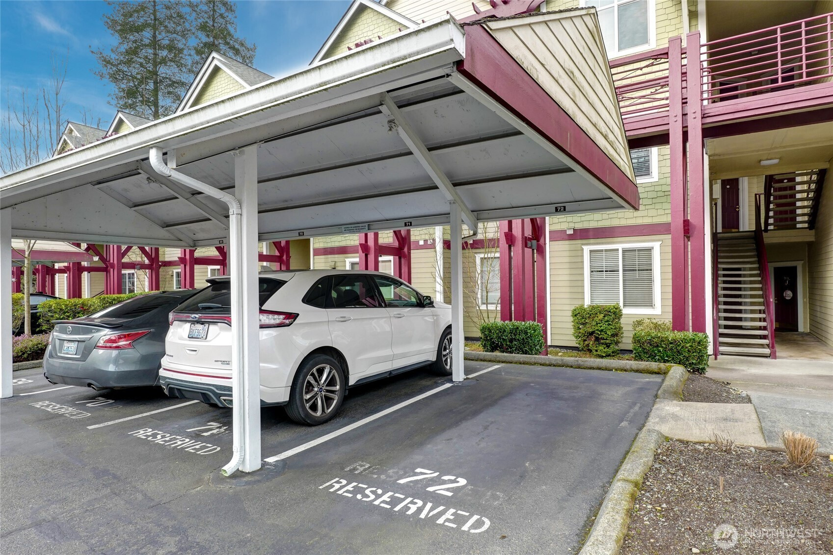 Welcome to this well-maintained 2 bedroom, 1.75 bath condo offering comfortable living and a low-maintenance lifestyle. The living room features a gas fireplace and large windows that bring in great natural light. The kitchen includes stainless steel appliances and new countertops. The main bathroom has been tastefully updated. Additional updates include newer paint and a full-size washer & dryer. Enjoy your private balcony for morning coffee or relaxing in the evening. Well-kept complex with low HOA dues. BONUS: 2 assigned covered parking spaces. Conveniently located near parks, shopping, freeways, Park & Ride, Boeing, and Paine Field.