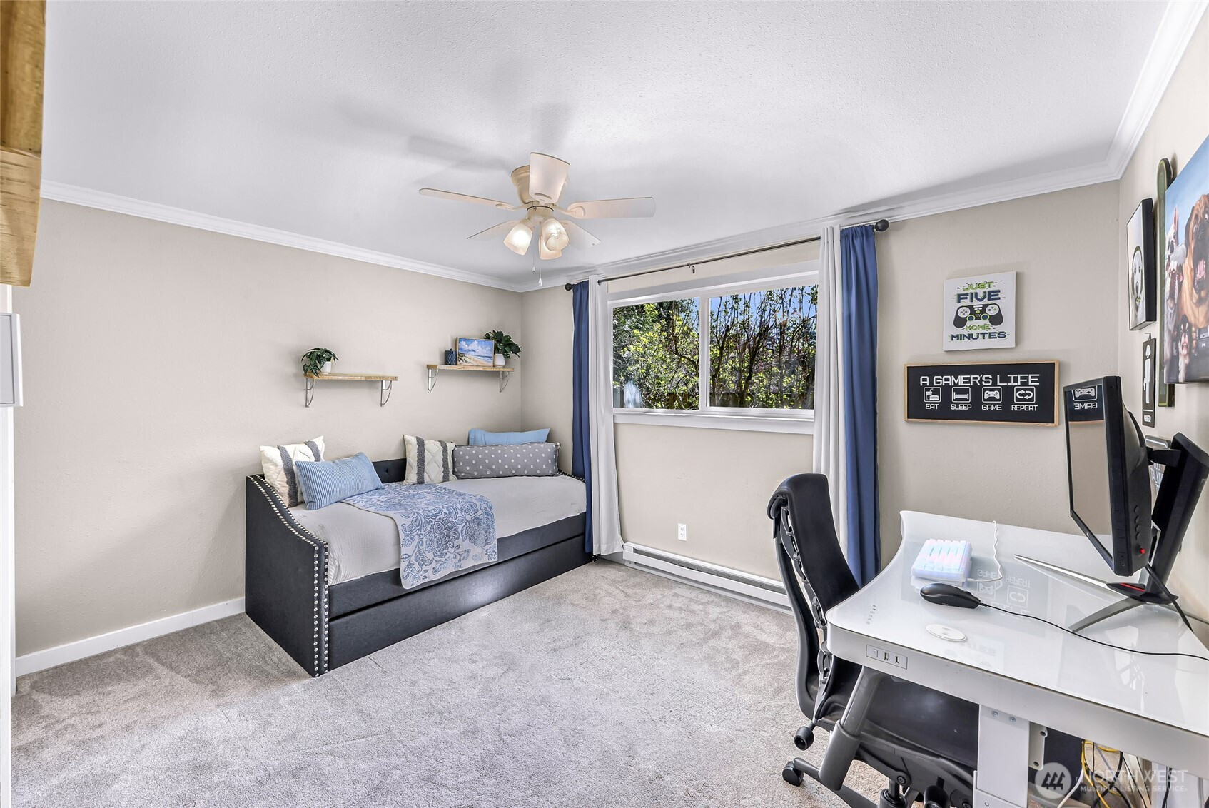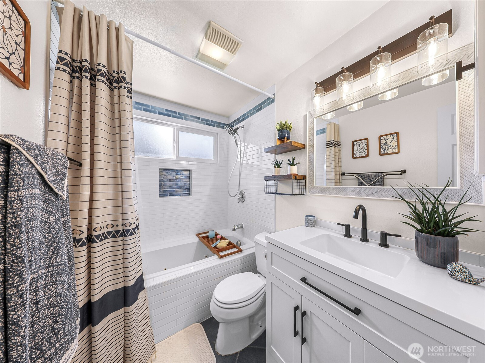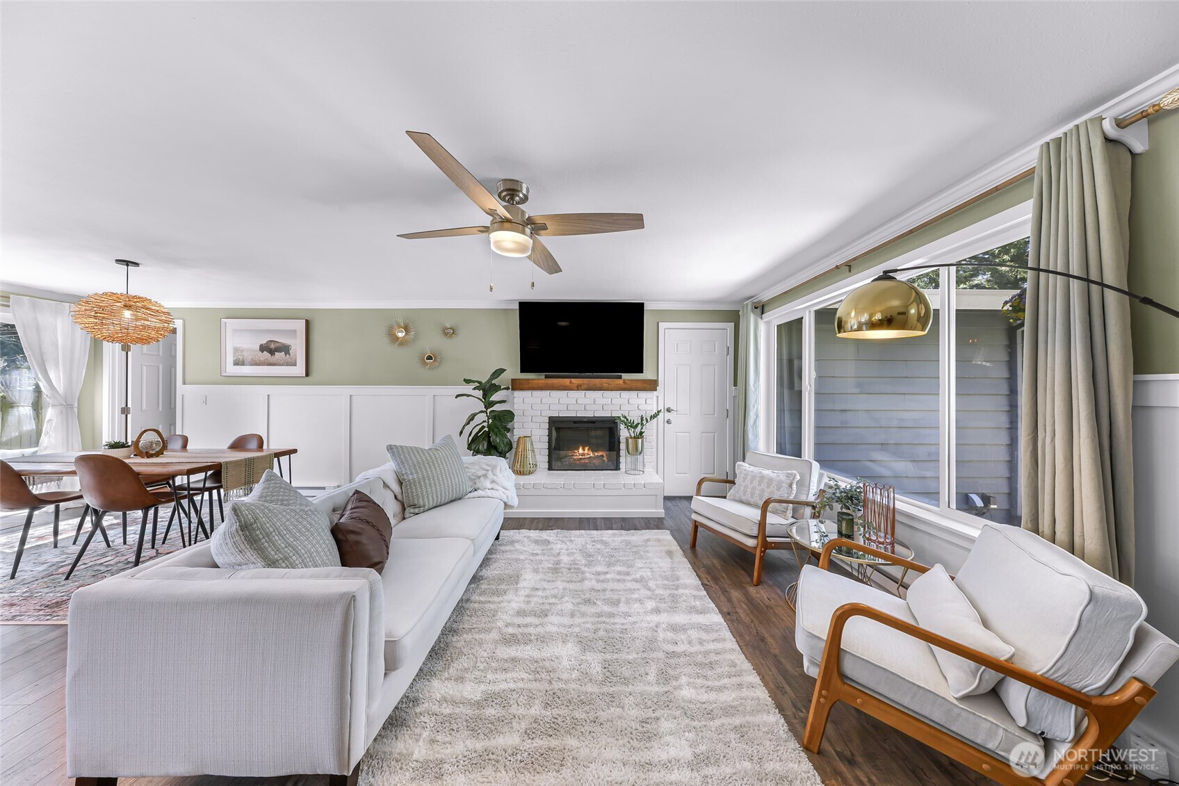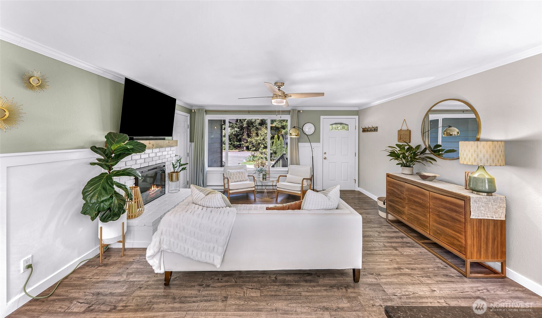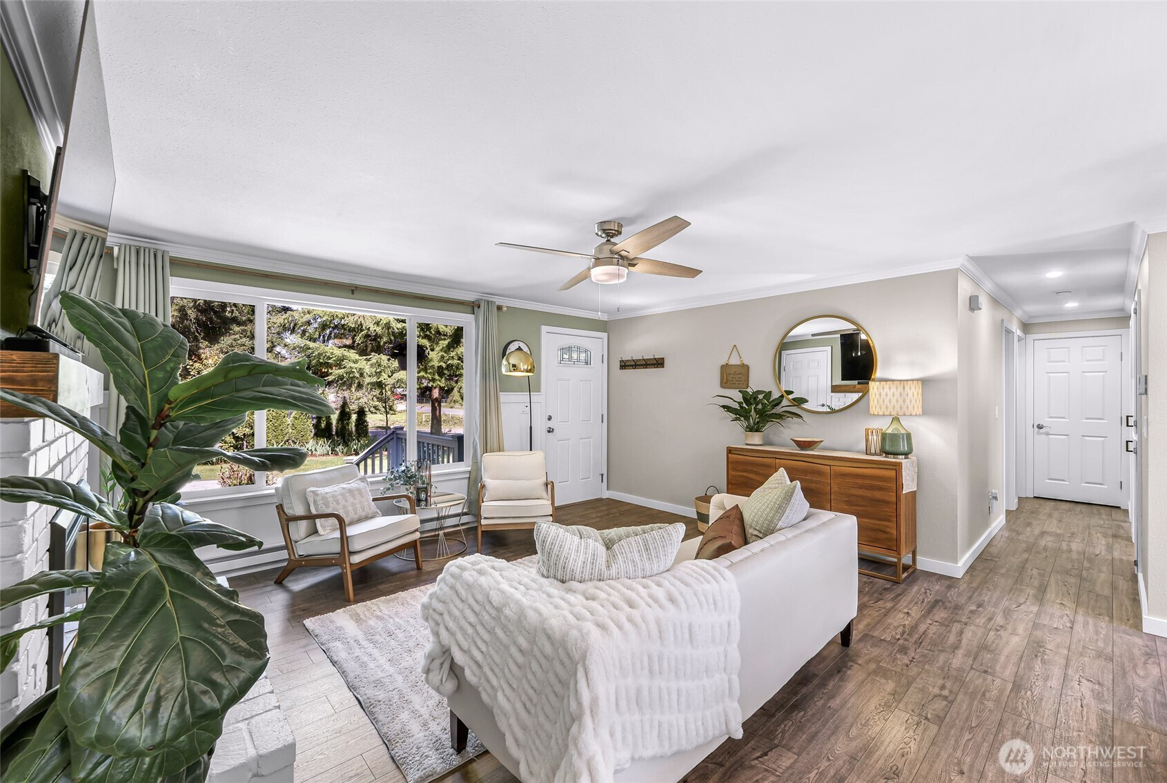 Remodeled and meticulously maintained rambler in a highly desirable location. This 4-bedroom, 2-bath home features a spacious primary suite with an en suite bath and a large walk-in closet. 3 additional bedrooms plus a full bath. Open-concept living area with a fireplace. The updated kitchen showcases granite countertops, refreshed cabinetry, and newer appliances, creating a functional and inviting space for everyday living. Additional improvements include an updated bathroom, EV charging in the garage, and fresh interior paint. Prior renovations include updated windows, doors, flooring, lighting, crown molding, and interior and exterior paint, offering a cohesive, move-in-ready feel throughout. Situated on a private corner lot, the property features a beautifully landscaped, fully fenced backyard with southern exposure and a seasonal salmon stream. Ample parking includes space for an RV or boat with 30-amp service. Conveniently located near parks, shopping, Mill Creek Town Center, and commuter routes. No HOA. Mukilteo School District. The Garage can be used as a flexible space to accommodate motorcycles, toys, provide great storage, or serve as a home gym. Don't miss this home!!