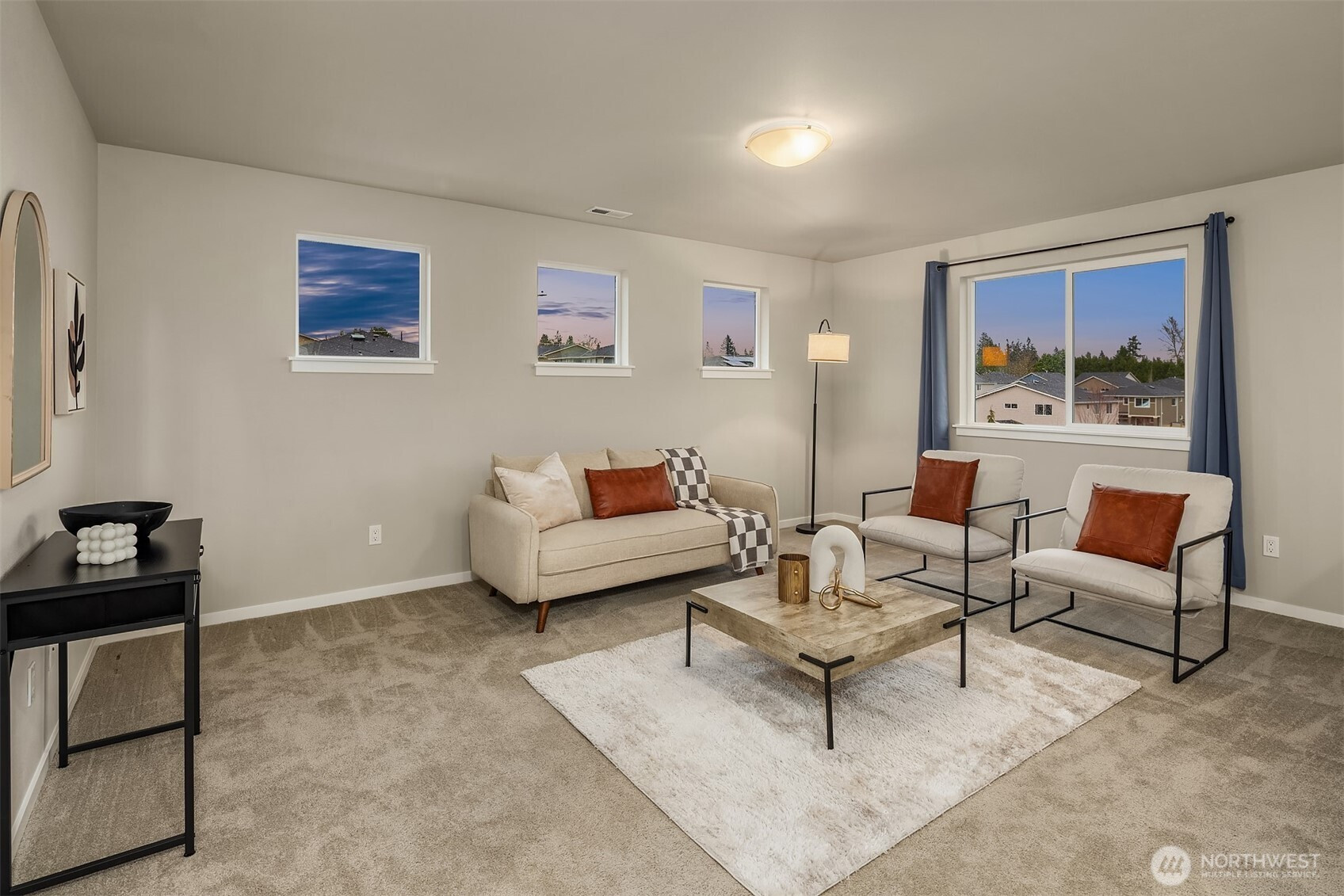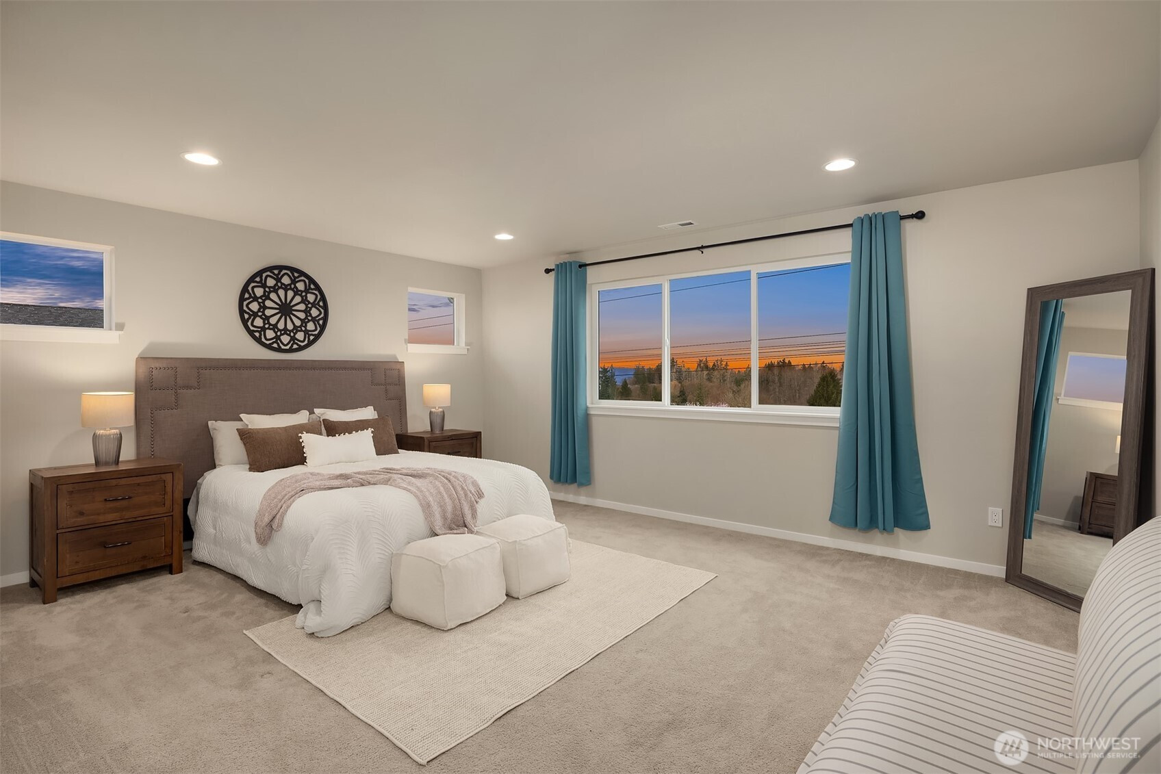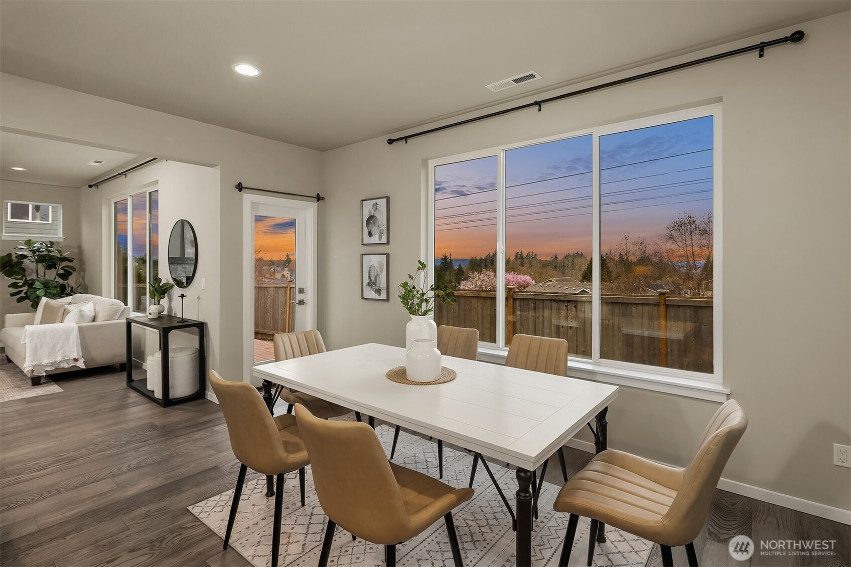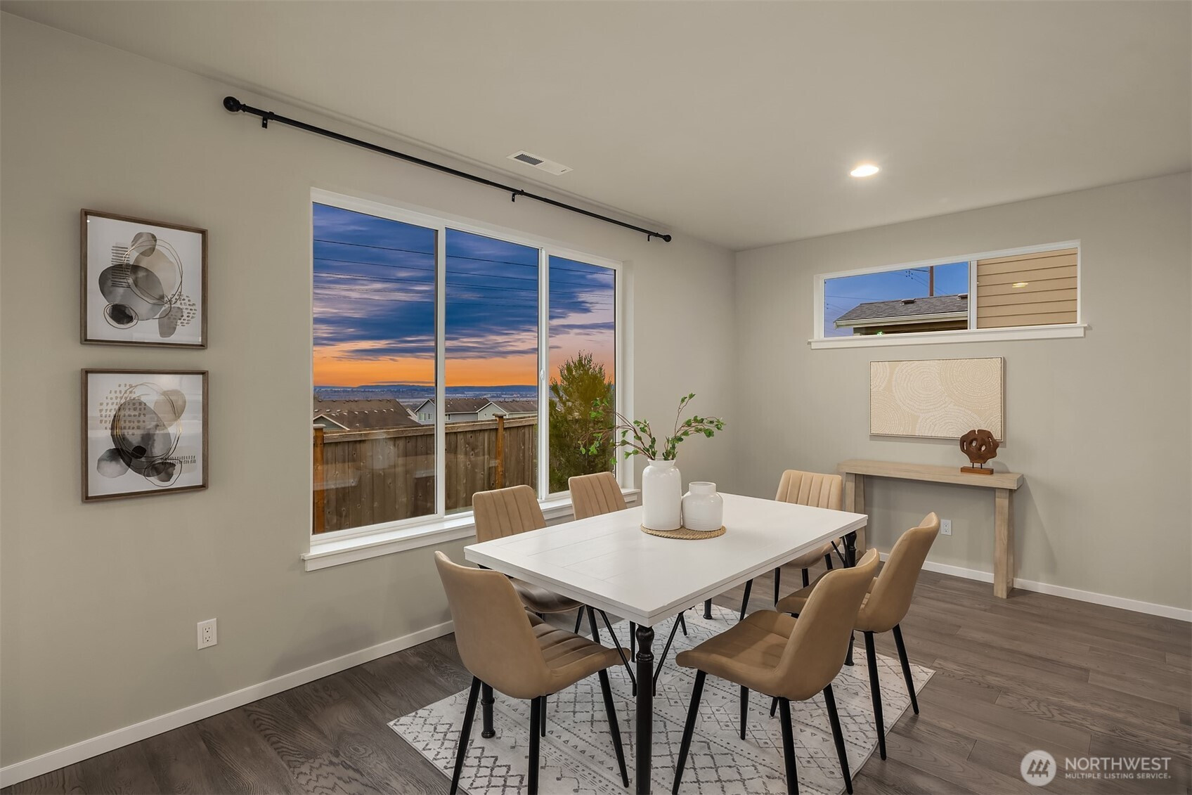 Welcome to Sunset Ridge, a sought-after Harbour Homes community built in 2021, offering sweeping views of the Puget Sound and Olympic Mountains. This meticulously maintained home blends comfort and style with LVP flooring, a gas fireplace, oversized windows framing breathtaking sunset views, quartz countertops, and stainless steel appliances. The sun-drenched dining area opens directly to the back deck, perfect for entertaining or quiet evenings at home. A main-floor bedroom with an adjoining three-quarter bath offers flexibility and convenience. Upstairs, enjoy a spacious bonus room, an expansive western-facing primary suite, and a spa-inspired 5-piece primary bath. Additional features include air conditioning, direct access to a nearby walking trail, and a prime location close to Highway 9, the trestle, and shopping at Costco, Target, and Haggen. Located within the Lake Stevens School District, this is a home that truly stands out.