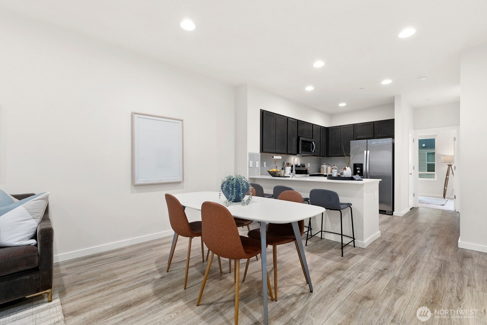 Welcome to The Parc – a sought-after South Everett community, just minutes from Mill Creek. This 2021 built home is better than new with fresh interior paint, new carpets, all kitchen appliances, washer / dryer and blinds! The thoughtfully designed floor plan offers 3 bedrooms, 2.75 baths and a spacious 2-car tandem garage with additional storage space. Enjoy modern finishes throughout, including quartz kitchen counters, sleek laminate flooring and efficient ductless mini-split system for year-round comfort. The main living area features open concept living at its best with a flexible living and dining space that opens to kitchen, perfect for everyday living and entertaining. Kitchen offers breakfast bar, ample storage space and large pantry! Rounding out the main living level is a bedroom + full bath, ideal for guests, office or flexible living. Upper level features a generous primary suite, overlooking peaceful green space, and offers two closet spaces + attached ensuite with dual vanities. Down hall is additional bedroom, full bath and laundry closet. This private community is tucked away, yet close to everything! Conveniently located near freeway access, shopping, dining, parks and medical services. Community trail connects directly to McCollum Park! Low HOA dues add to the appeal of this attached single-family-style townhome. This is the one you have been waiting for!
