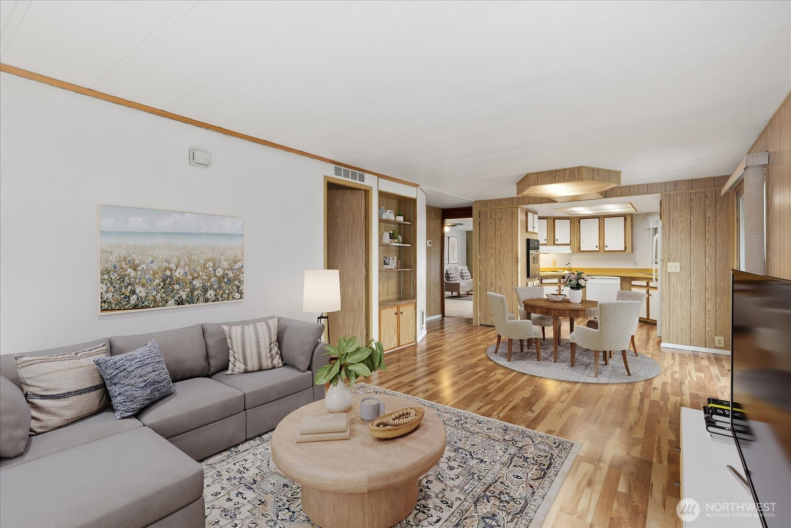 Welcome to Frontier Manor, a desirable 55+ resident-owned (no space leases) community offering stability and a strong sense of ownership. This home stands out for the amount of meaningful work already completed, focusing on long-term reliability rather than just surface-level updates. Recent improvements include a newer furnace, a new water line from the home to the street, electrical upgrades allowing for generator connection during power outages, and professional leveling with upgraded corner supports for added earthquake and wind stability. Inside, updated flooring in the kitchen, dining area, and front living room is paired with refreshed plumbing fixtures, an updated shower, upgraded toilets, and improved entry door hardware. Outside, enjoy rare additional parking with a second driveway and a large shed with power and a newer roof, offering excellent storage or hobby space. This home offers a solid foundation and the opportunity to personalize over time. Community amenities include a clubhouse and RV parking, with a convenient Lake Stevens location close to shopping, dining, and daily conveniences. Seller Financing available!