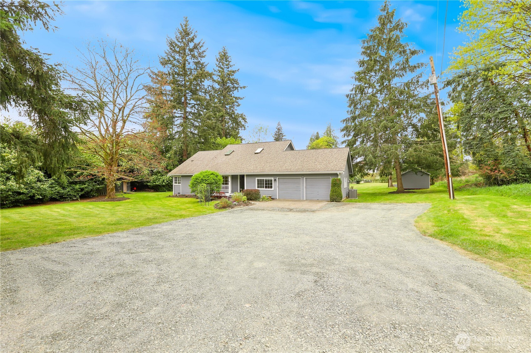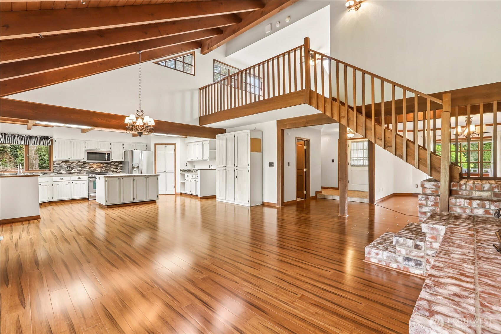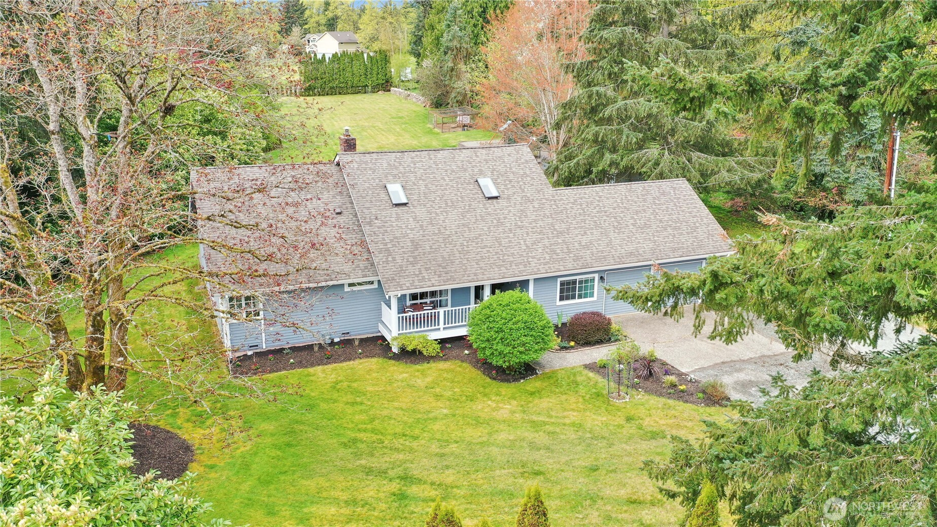 Amazing opportunity to own 1.4 acres in Snohomish while staying just minutes from everyday conveniences. This beautifully designed home offers comfortable one-story living with soaring ceilings, exposed wood beams, rich hardwood floors, skylights, and a stunning brick fireplace that anchors the main living space. The spacious kitchen features a large island, stylish backsplash, and a full pantry, making it ideal for both daily use and entertaining. The primary suite includes vaulted ceilings, a 5-piece en-suite with soaking tub, and an oversized closet. Two additional bedrooms, a full guest bath, and a laundry room are all conveniently located on the main level. Upstairs, enjoy a versatile loft living area and bonus room with an adjacent full bath—perfect for extended living or flexible use. Additional highlights include a heat pump with A/C, a two-car garage, and ample driveway parking with space for recreational vehicles and more. Roof is approximately five years old. A rare property offering space, character, and convenience—don’t miss this one!