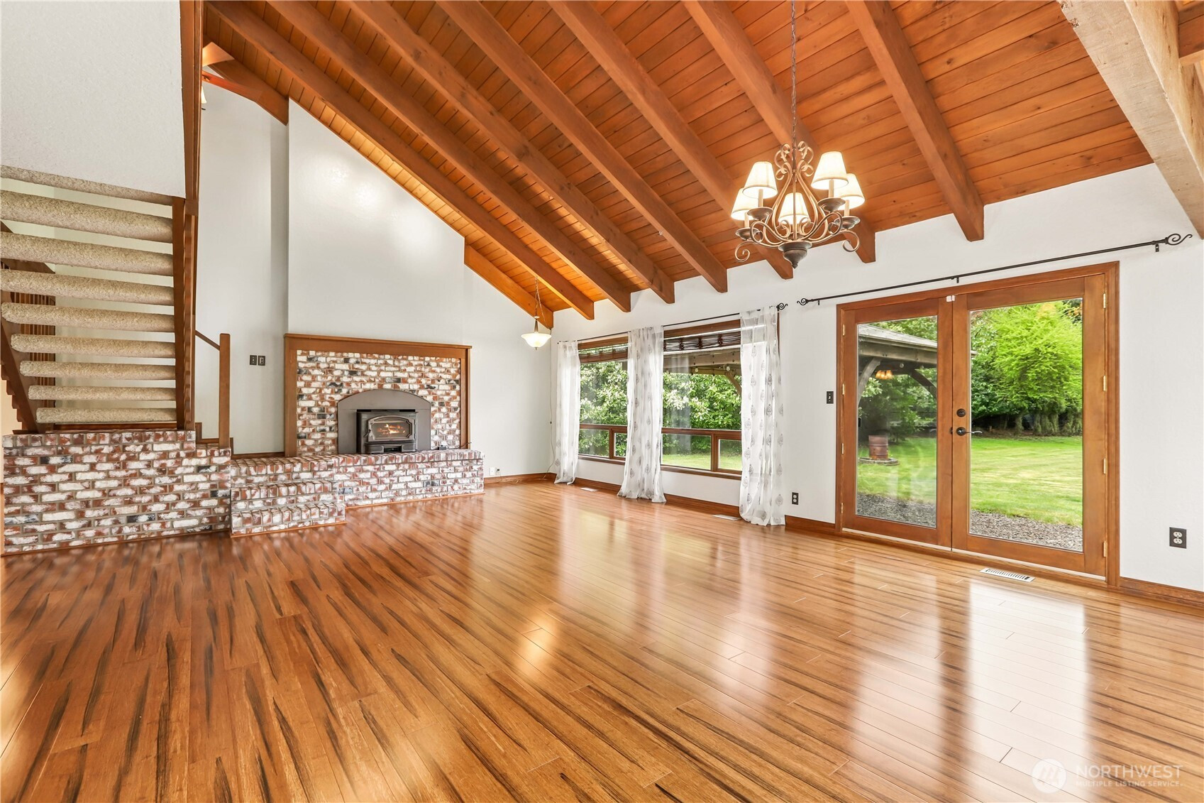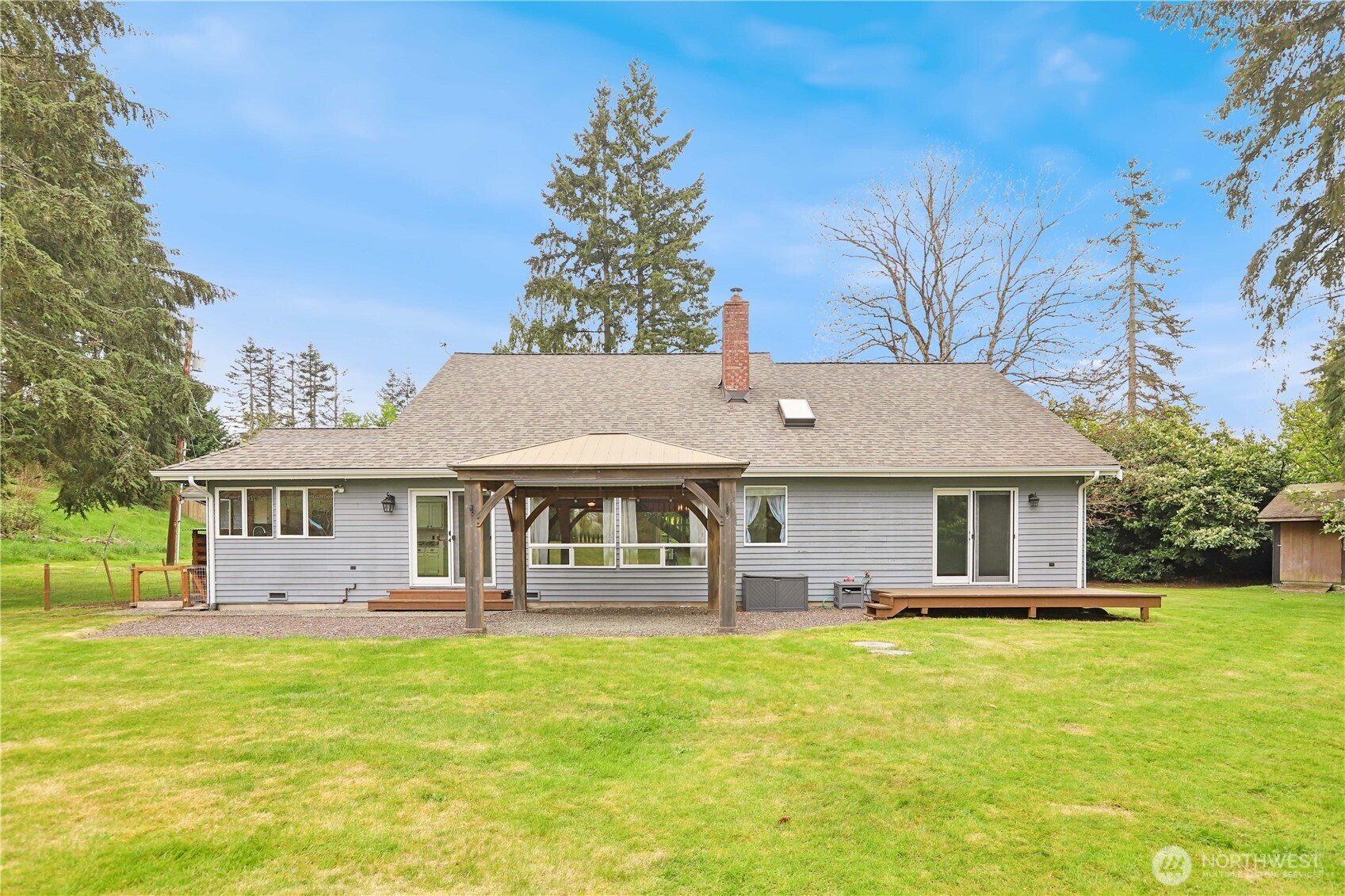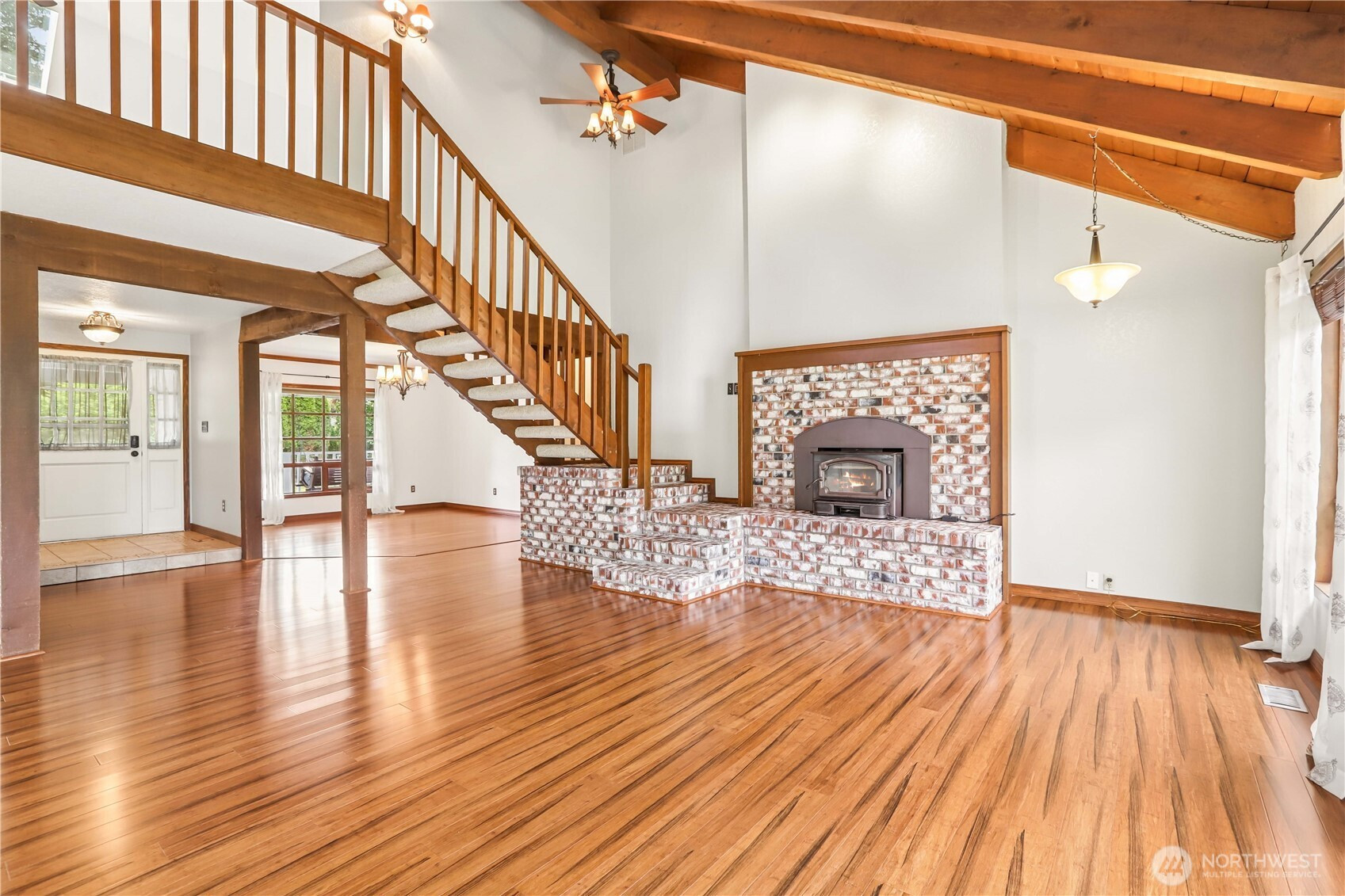Amazing opportunity to own 1.4 acres in Snohomish while staying just minutes from everyday conveniences. This beautifully designed home offers comfortable one-story living with soaring ceilings, exposed wood beams, rich hardwood floors, skylights, and a stunning brick fireplace that anchors the main living space. The spacious kitchen features a large island, stylish backsplash, and a full pantry, making it ideal for both daily use and entertaining. The primary suite includes vaulted ceilings, a 5-piece en-suite with soaking tub, and an oversized closet. Two additional bedrooms, a full guest bath, and a laundry room are all conveniently located on the main level. Upstairs, enjoy a versatile loft living area and bonus room with an adjacent full bath—perfect for extended living or flexible use. Additional highlights include a heat pump with A/C, a two-car garage, and ample driveway parking with space for recreational vehicles and more. Roof is approximately five years old. A rare property offering space, character, and convenience—don’t miss this one!