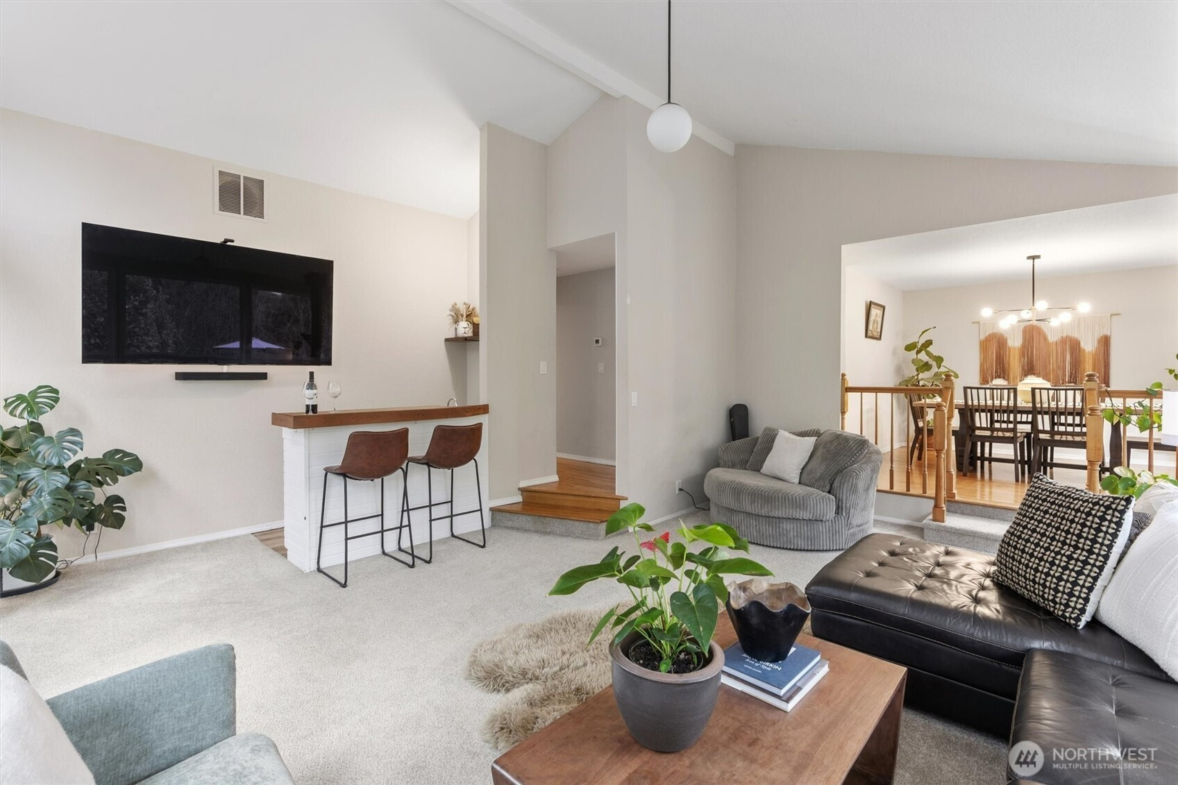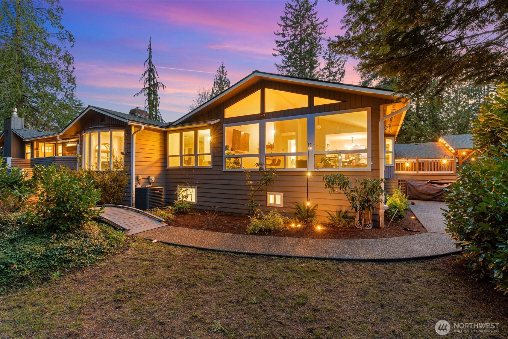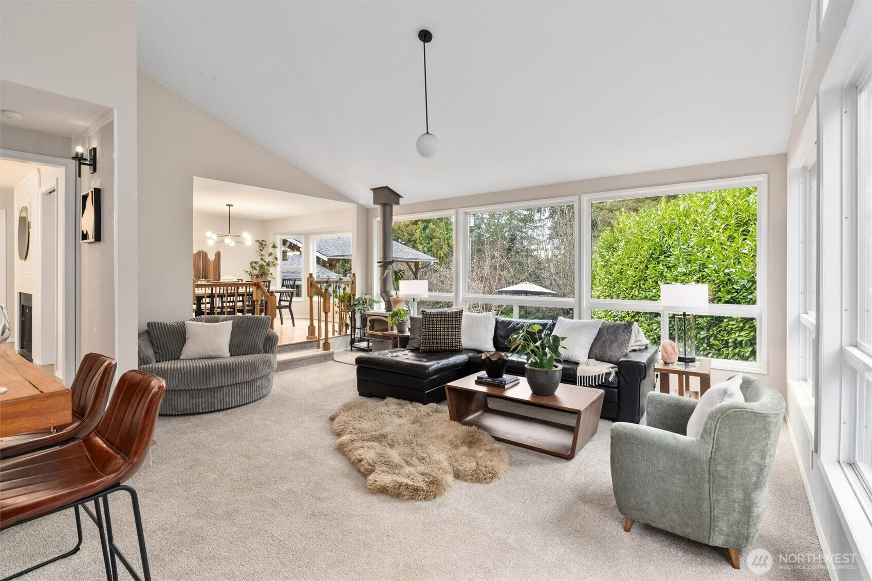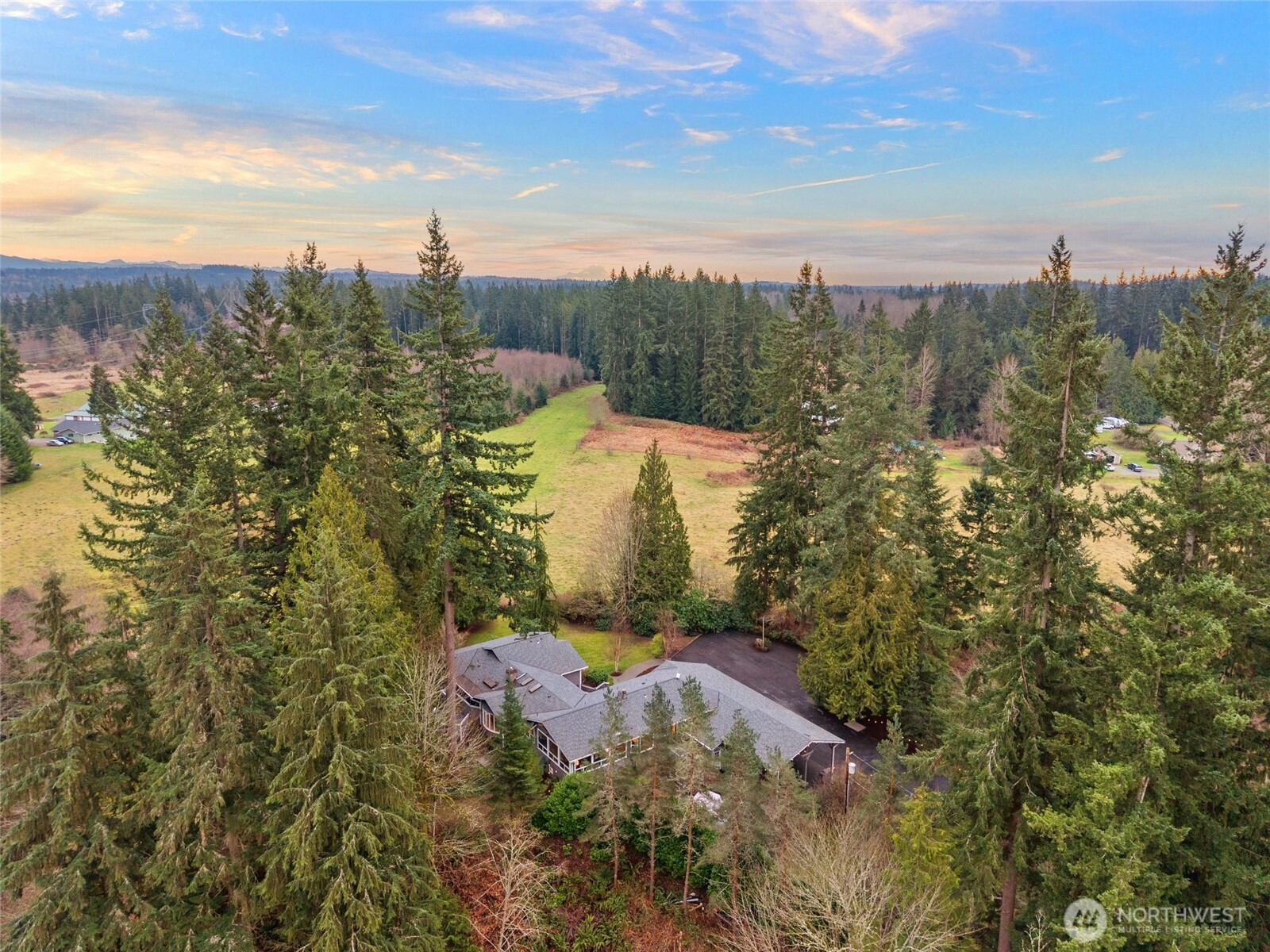 Elevated Northwest Living in this extraordinary 4,500 sqft. Estate! Private shy 6 ACRES in Lake Stevens this home's mid century inspired design is bright, open & timeless. The sprawling rambler features vaulted ceilings, hardwoods + 4 statement fireplaces throughout. The main level showcases 3 oversized beds each with its own beautifully updated en-suite baths + sauna. Primary suite has been renovated to feel like a private retreat w/a spa inspired bath & stunning soaking tub designed for relaxation. Chef’s kitchen is ideal for entertaining and daily living w/quartz counters, complemented by a butler’s prep kitchen for additional workspace. Designed for gathering, the family room features a free standing wood burning fireplace and a built in wet bar! This home lives like a 6 bedroom residence, offering exceptional flexibility for multi generational living, guests, or extended stays. The lower level includes a complete potential MIL suite with full kitchen, three bedrooms, bathroom, separate laundry just inside garage & a brand new drywall ceiling w/ recessed can lighting that creates a bright finished feel. Fresh interior paint, updated lighting, a newer roof + updated heat pumps & A/C. Outside, mature landscaping surrounds newly expanded yard space created by an added retaining wall + chicken coop. 3 car oversized garage w/massive carport with potential for an RV garage complete this luxury acreage property just 3 min. from downtown Lake Stevens!