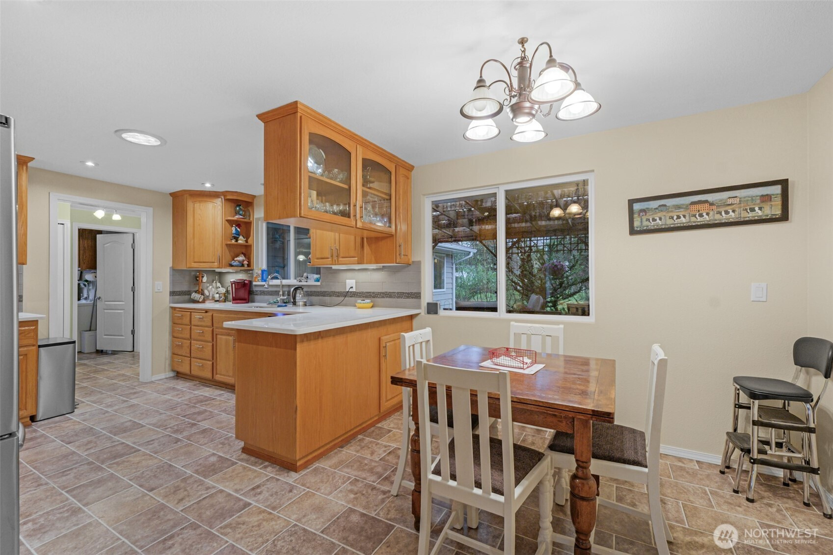 Discover serene single-story living in this beautiful rambler set in a park-like setting with creek frontage on two sides. Your own private nature retreat! Enjoy modern comforts including a newer roof (2023), water heater (2019), septic system (2014), and efficient ductless mini-splits for year-round heating and A/C. The kitchen shines with warm wood cabinetry, sleek quartz countertops, and newer stainless steel appliances. Cozy up by the propane fireplace in the massive family room, filled with an abundance of natural light and walls of windows overlooking the peaceful backyard and creek. The large primary bedroom features an ensuite bathroom and double closets. The ensuite bathroom has heated tile floors. There are two additional bedrooms and one includes a murphy bed to allow flexible uses. Outside, you’ll appreciate the spacious 3-car garage with a separate workshop, plus a large paved driveway for all your vehicles and toys. Nearly half an acre, fully fenced backyard, and no HOA. This is a rare property that doesn’t come along often, don’t miss it!