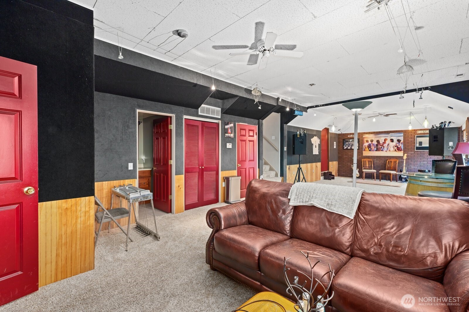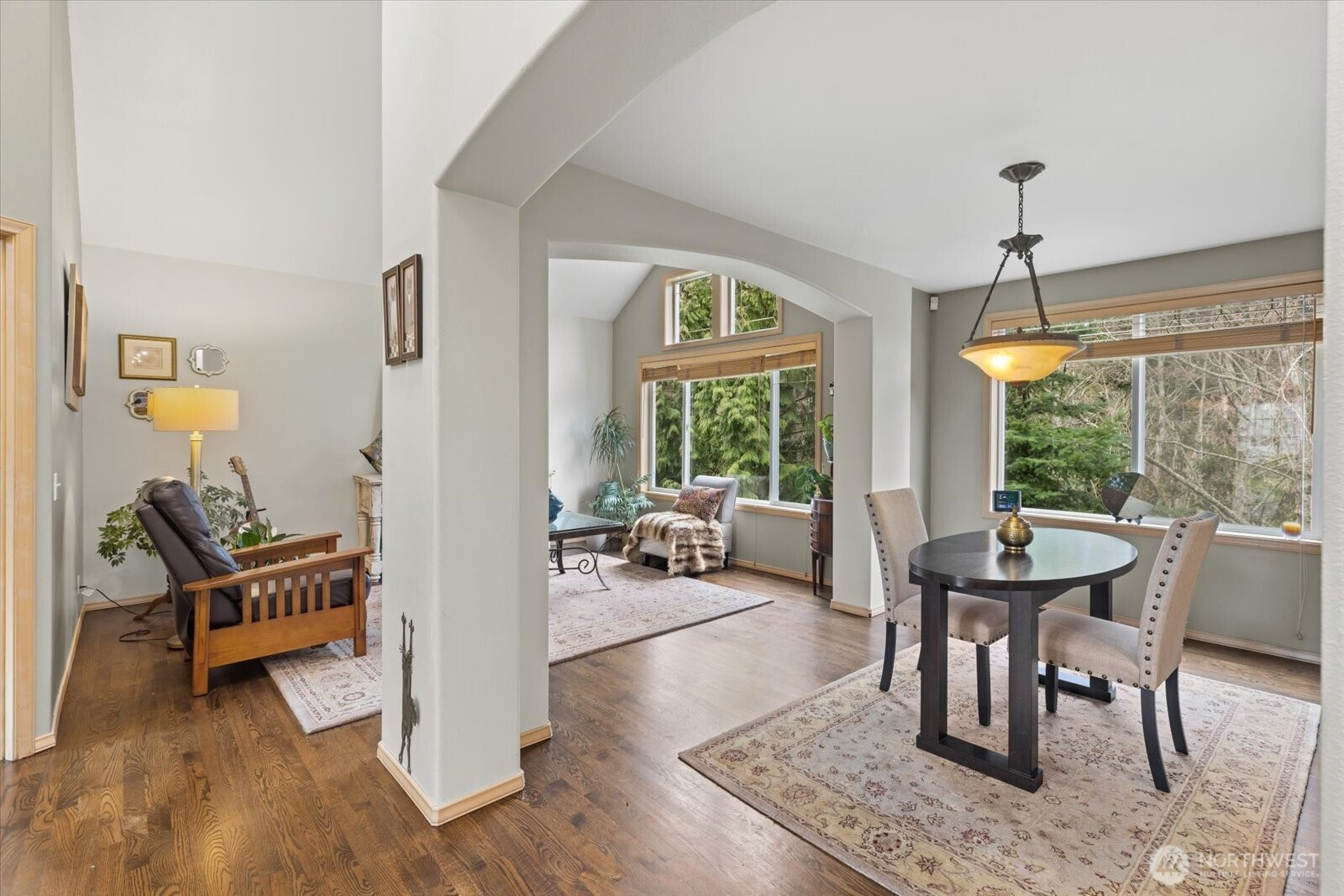 Located in the highly sought-after Faire Harbour neighborhood, this beautifully designed home offers space, privacy, and timeless Northwest charm. Step inside to soaring ceilings and beautiful oak hardwood floors that flow throughout the main living spaces. The open kitchen connects seamlessly to the elegant family room with vaulted ceilings and a cozy brick fireplace, creating the perfect setting for everyday living and entertaining. Double doors lead to a brand-new Trex deck ($27,000) overlooking a peaceful greenbelt — ideal for private BBQs, morning coffee, or relaxing evenings surrounded by nature. The main floor also features a dedicated home office, plus formal living and dining rooms, offering both versatility and refined entertaining space. Upstairs you’ll find three bedrooms, highlighted by a spacious primary suite with a fully updated, spa-inspired bathroom and walk-in closet. The lower level boasts an expansive, fully soundproofed bonus room with tall ceilings — (currently used as a “House-Cover Band” practice room) perfect as a media room, creative space, or potential ADU. Room for two additional bedrooms or “Safe room” or wine cellar. A spacious three-car garage completes the package. Backed by tranquil greenbelt for ultimate privacy, this home has it all.
