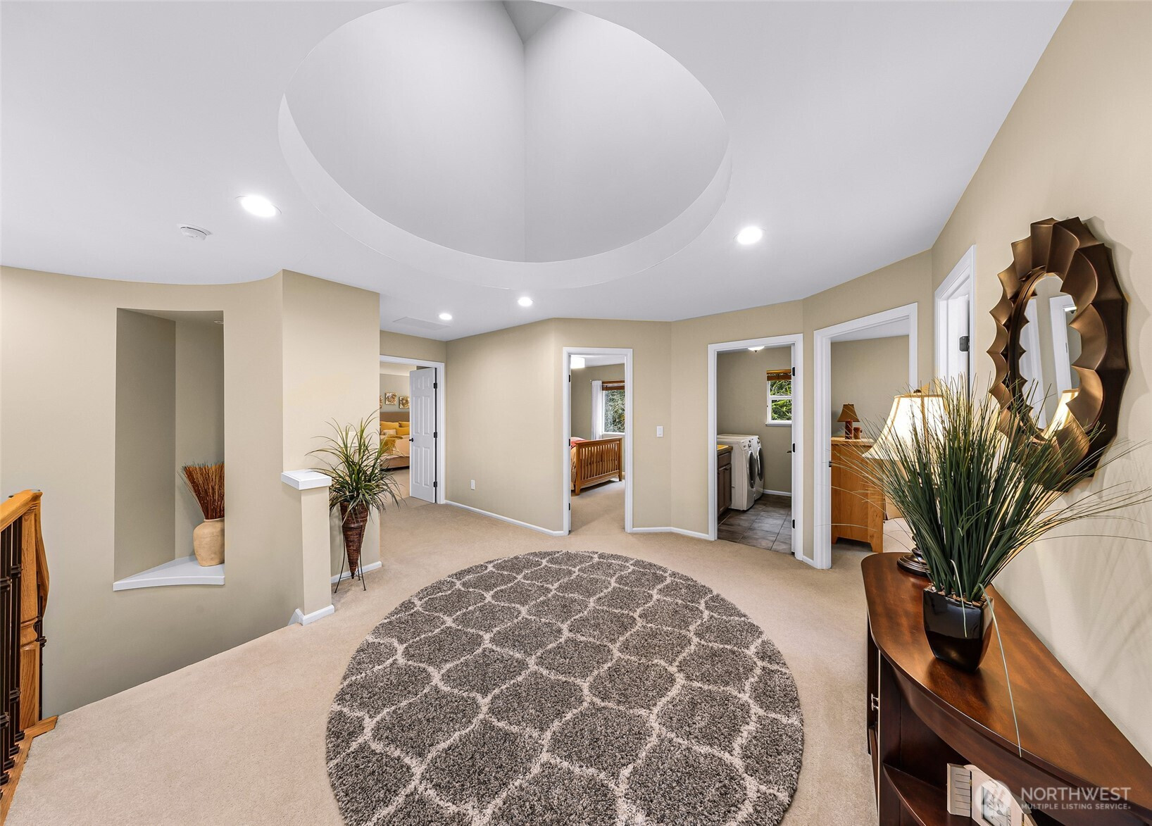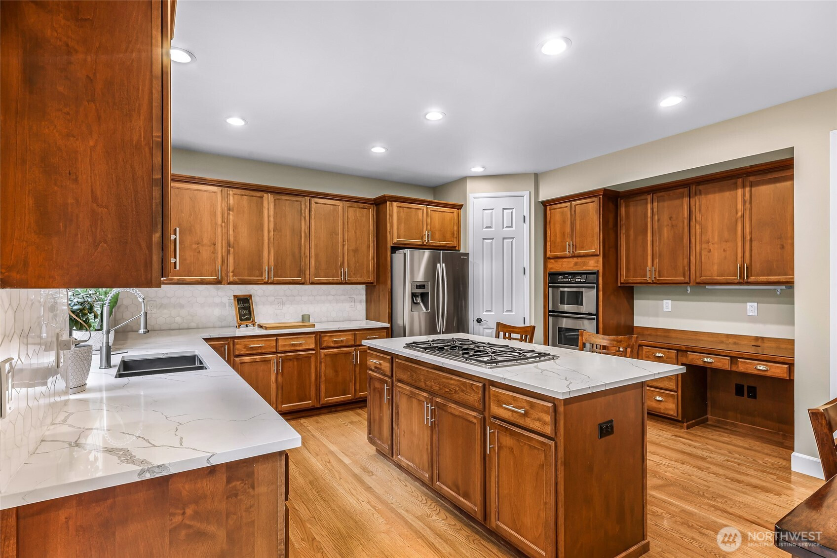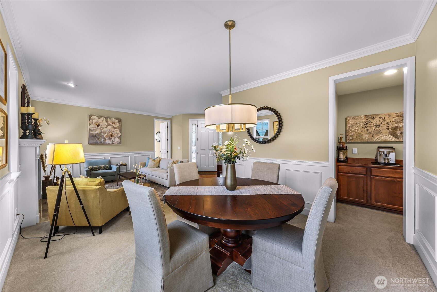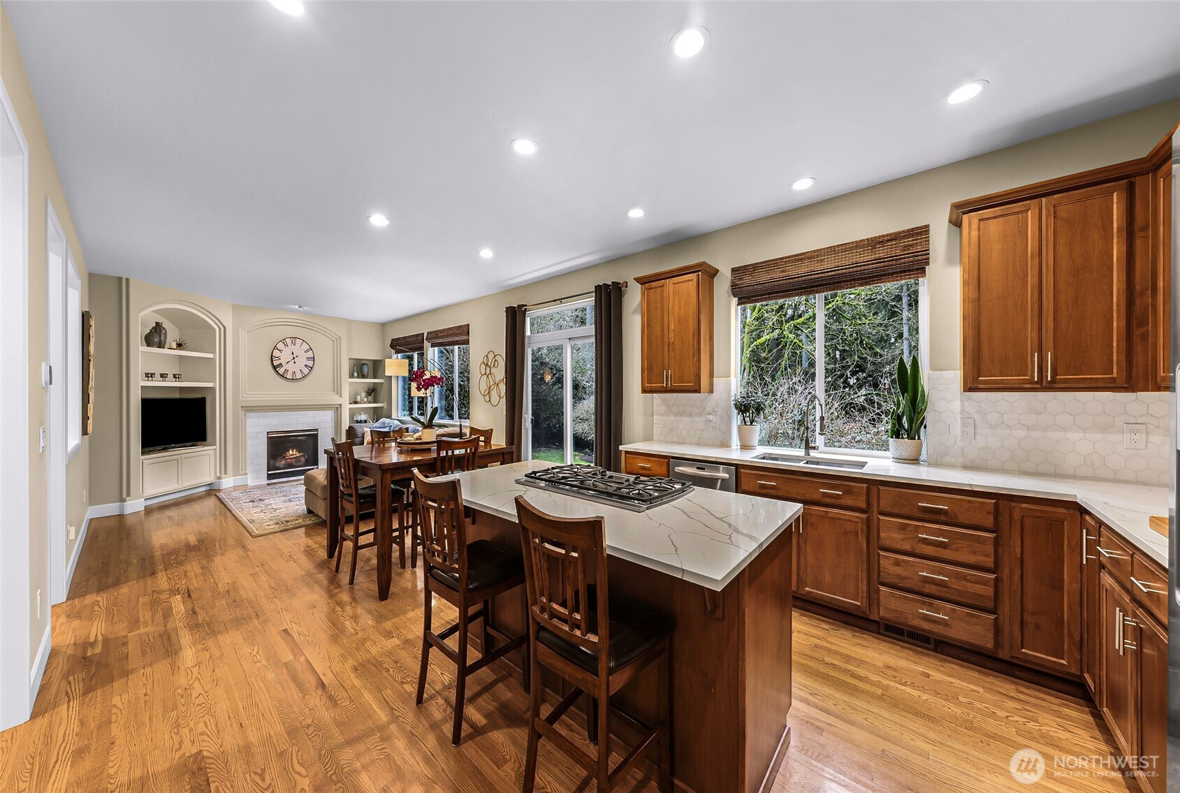 Located in the highly desirable Greenleaf neighborhood, this stunning Murray Franklyn home offers timeless design and exceptional privacy. Impeccably maintained, the home features 4 bedrooms, 2.5 baths, a dedicated office, and a spacious bonus room. The welcoming entry opens to a formal living room with gas fireplace, elegant wainscoting, and crown moulding, flowing seamlessly into the dining room and coffee bar. A light-filled main-level office provides the perfect work-from-home retreat. The chef’s kitchen impresses with quartz counters, a large center island, walk-in pantry, and a sink overlooking the wooded, private backyard. Open to the dining area and family room with gas fireplace and built-in shelving, it’s ideal for both entertaining and everyday living. The fully fenced backyard backs to a greenbelt, offering exceptional privacy, a patio for outdoor dining, and a generous side yard for play or gardening. Upstairs, a striking skylight fills the circular staircase with natural light. You’ll find a large bonus room, bedrooms with mountain and Snohomish Valley views, a full bath, laundry room and a serene primary suite featuring French doors, a 5-piece bath, and a spacious walk-in closet. A 3-car tandem garage, and new roof with transferable warranty. In the sought-after Snohomish School District, 15 min to Mill Creek Town Center and 30 min to Seattle and the Eastside. Welcome home!