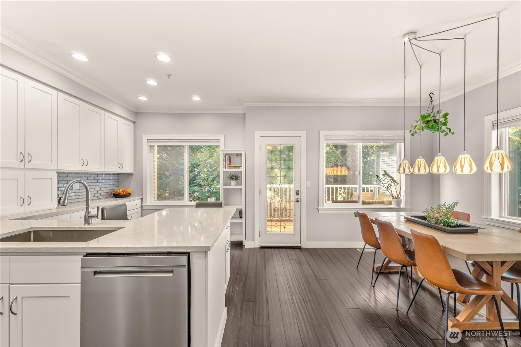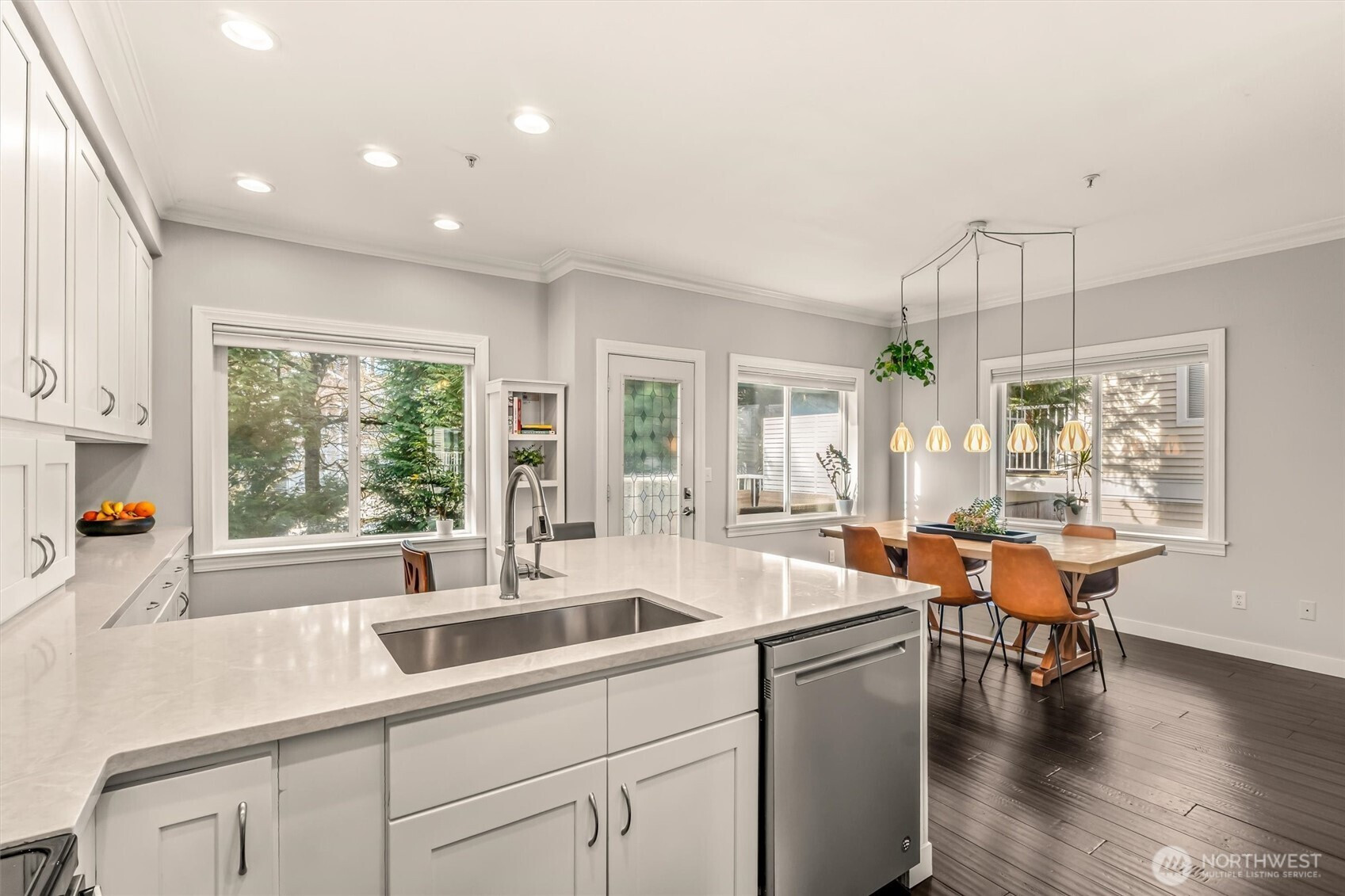 New Improved Price! Bright, beautifully updated **corner-unit townhouse** in the heart of **Mill Creek**! The main level features a remodeled kitchen with quartz countertops, stainless-steel appliances, and impressive custom storage. Generous living, dining, and family spaces flow effortlessly for everyday living or entertaining, plus a convenient half bath. Step onto your private balcony—perfect for BBQs or relaxing while overlooking peaceful green space. Upstairs, the spacious primary suite offers a walk-in closet and updated ensuite bath. Two additional bedrooms share a full guest bath and laundry for convenience. Enjoy year-round comfort with newly added A/C and a high-efficiency heat pump. Downstairs, the two-car garage includes an attached bonus room with a built-in Murphy bed—ideal for guests, a home office, media room, playroom, or hobby space. Located near highly desirable schools and **walkable to Henry M. Jackson High School and Heatherwood Middle School**. Just minutes to **Mill Creek Town Center**, parks, scenic trails, restaurants, **Town & Country Market**, and rapid transit options for easy commuting. Low-maintenance living in a prime location — this one checks all the boxes.