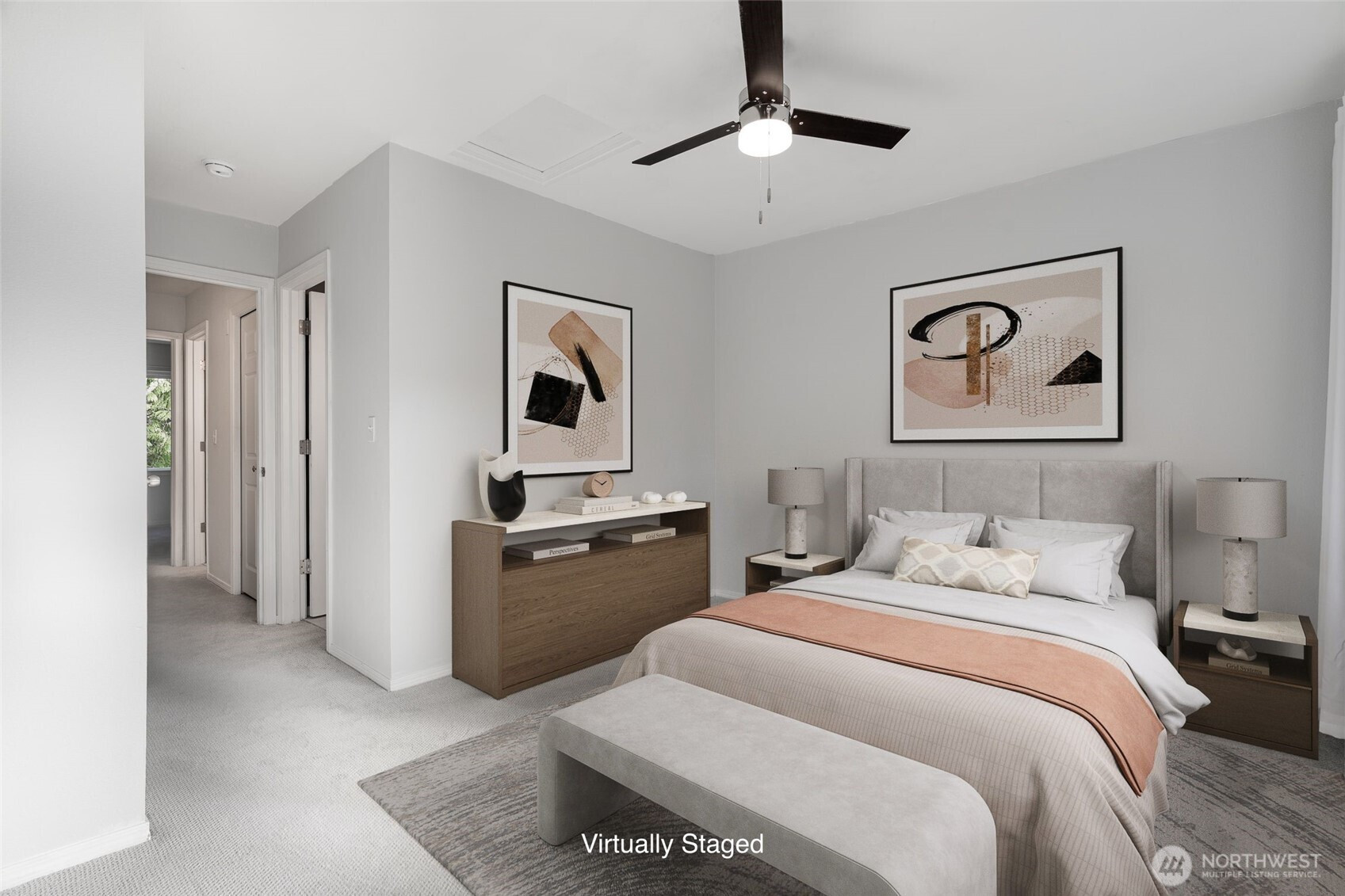 Quiet convenience awaits you at Rivendale at Mill Creek. Updated, turn-key, & move-in-ready, this alluring townhome offers an open floor plan, engineered hardwoods, newer carpet/paint, smart appliances, ring doorbell, & other modern conveniences. SW facing gives you wonderful natural light while lovely, mature trees grant privacy off your back deck. Living room boasts a cozy gas fireplace + a wonderful space for a home office nook. Large kitchen has plenty of room w/an island & pantry. Updated bathrooms & sizable bedrooms. Newer, top-of-the-line w/d combo conveys. Absolutely huge, 2-car tandem garage w/extra storage & epoxy coating. Well run HOA is pet friendly. Close to grocery, restaurants, schools, parks, trails, & public transport.