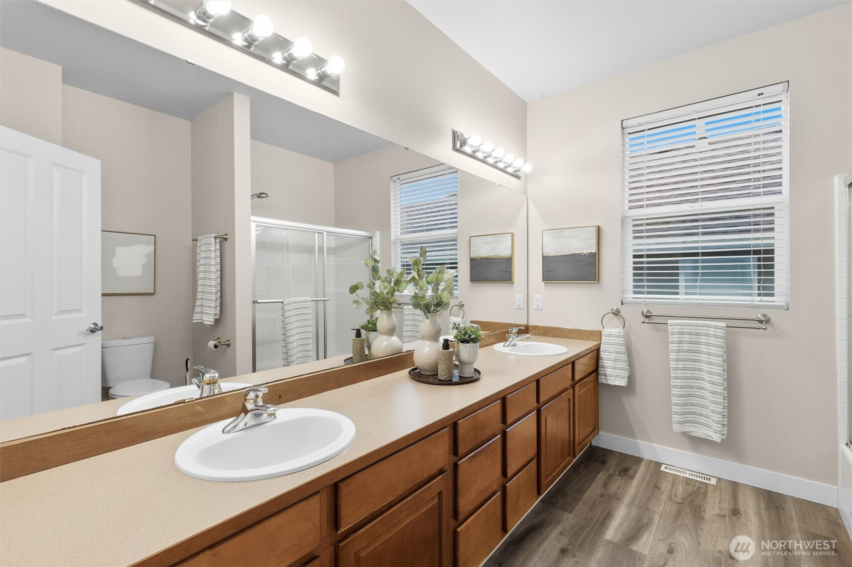 EAST FACING Welcome to this beautifully updated home offering just shy of 3,000 square feet of thoughtfully designed living space, complete with 4 bedrooms, and a spacious bonus room perfect for a media area, home office, or playroom. Step inside to be greeted by soaring vaulted ceilings and an abundance of windows that flood the home with natural light, creating an open and inviting atmosphere. Recent updates provide peace of mind and modern appeal, including brand-new flooring, fresh interior and exterior paint, new baseboards, new roof, and updated kitchen appliances featuring a new stove and refrigerator. This home boasts three generously sized bedrooms, including an enormous primary suite designed for comfort and relaxation. It hosts a private ensuite bath, spacious walk-in closet, and windows that overlook the peaceful valley—creating a serene retreat to start and end your day. The outdoor living space is equally impressive. Enjoy a large, level backyard with a serene valley view—ideal for relaxing or entertaining. The expansive patio offers plenty of room for gatherings, while the covered porch provides a cozy spot to unwind year-round. Conveniently located within walking distance to local elementary and high schools, this home also offers easy access to Willis Tucker Park, which hosts community events, walking trails, dog park, playground, and a summer splash pad. This home combines comfort, style, and location—an exceptional opportunity you won't want to miss.