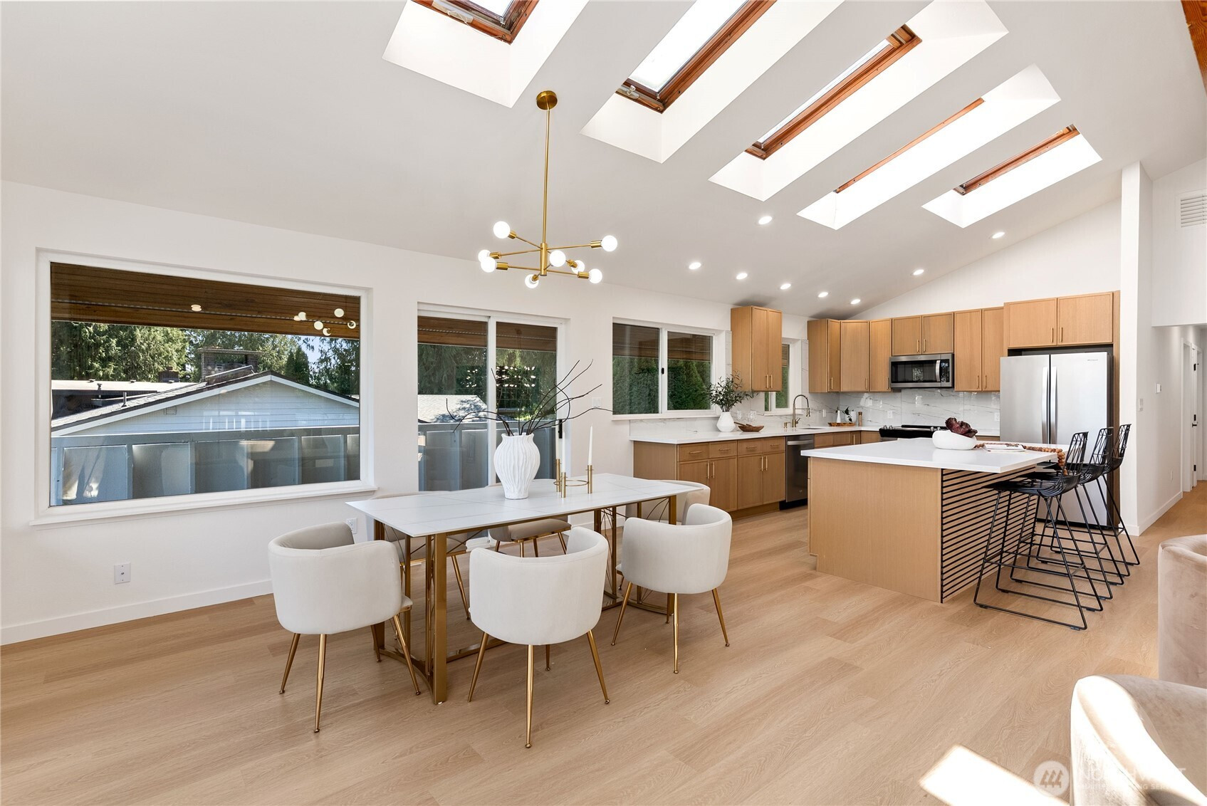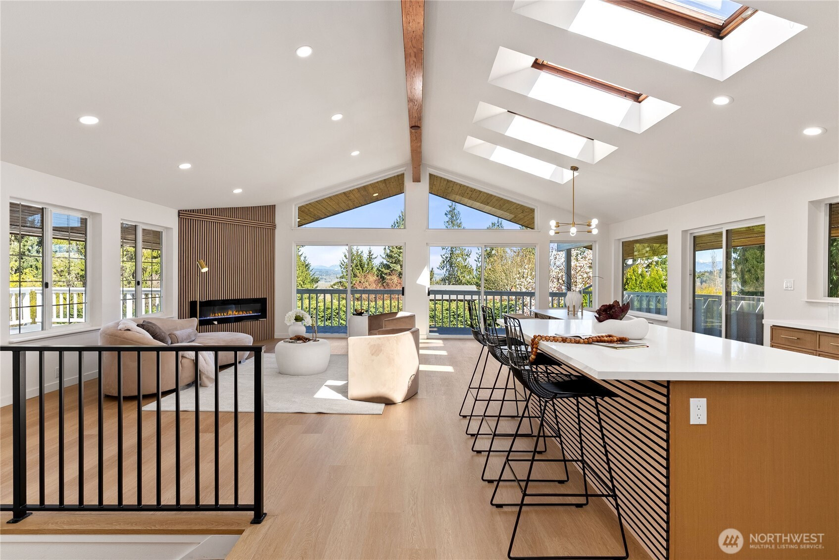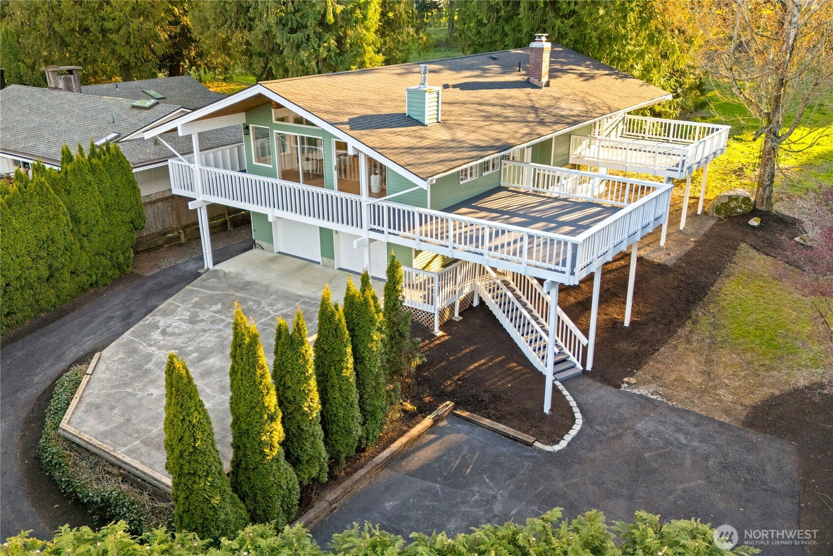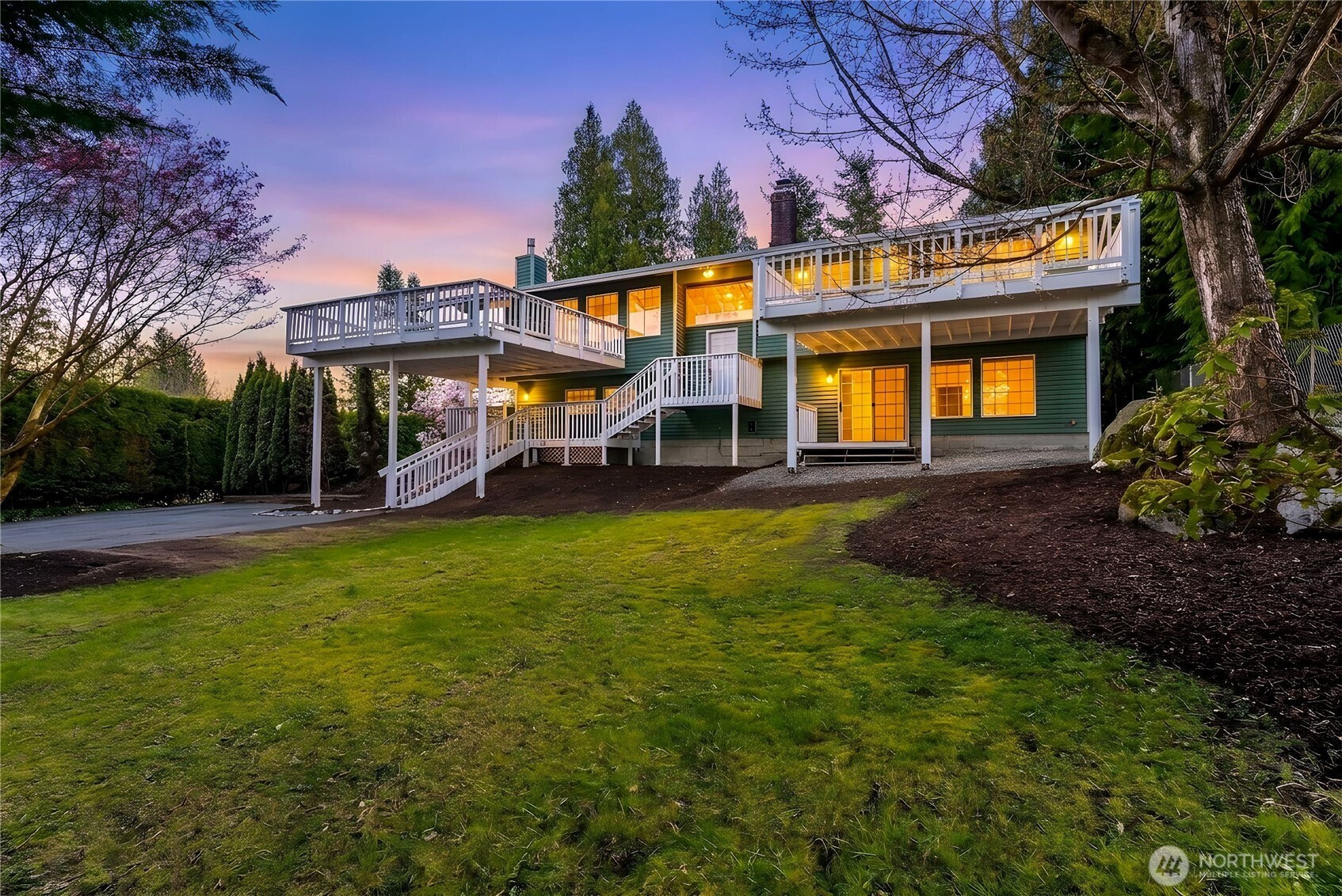 Absolutely breathtaking luxury residence in Snohomish’s coveted Kenwanda neighborhood,ideally located near the picturesque Snohomish River Valley.This exceptional home offers an elevated Northwest lifestyle with 2 expansive decks and a stunning wraparound deck, perfectly designed for entertaining, relaxing, and enjoying partial views of majestic Mount Baker and the surrounding natural beauty. A grand,wide staircase creates a striking first impression,leading to an upper level defined by soaring vaulted ceilings & a dramatic open-concept layout.Skylights and expansive windows flood the home with natural light, highlighting the refined living spaces & a custom-designed electric fireplace that serves as a sophisticated focal point.The designer chef’s kitchen is a true showpiece, featuring a generous island, custom backsplash, sleek cabinetry, & stainless steel appliances—crafted for both everyday living and elevated entertaining.The lower level provides a spacious,oversized family room,a well-appointed laundry room,&a stylish powder bath, offering both comfort and functionality. Upstairs, the luxurious primary suite is a private retreat with vaulted ceilings, abundant natural light, a walk-in closet, and exclusive access to a private deck.The spa-inspired ensuite bath showcases a custom shower and dual vanity. Two additional well-sized bedrooms complete the upper level.A rare opportunity to own a refined, light-filled home blending modern elegance with timeless comfort.Must SEE!