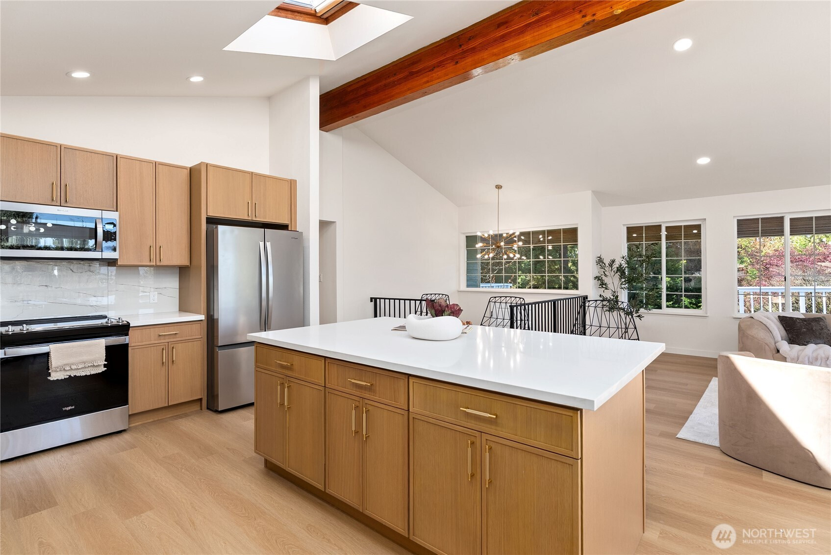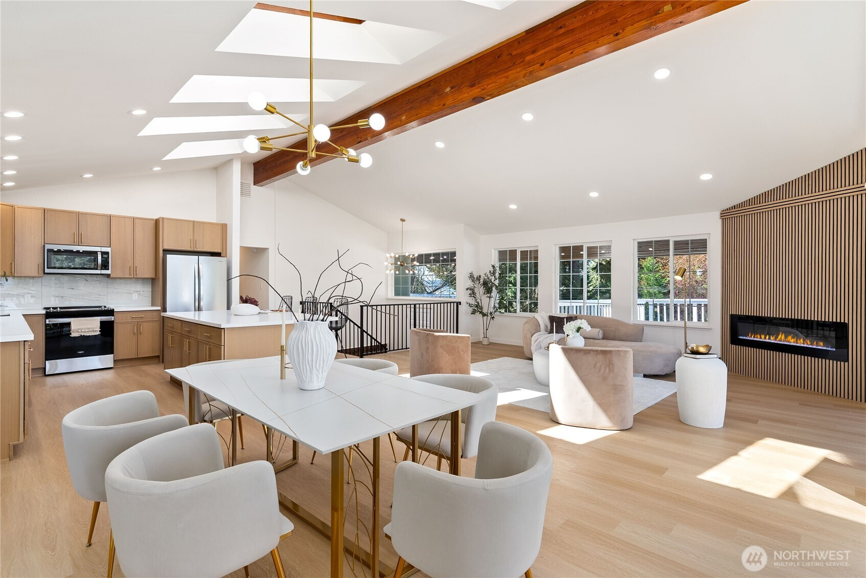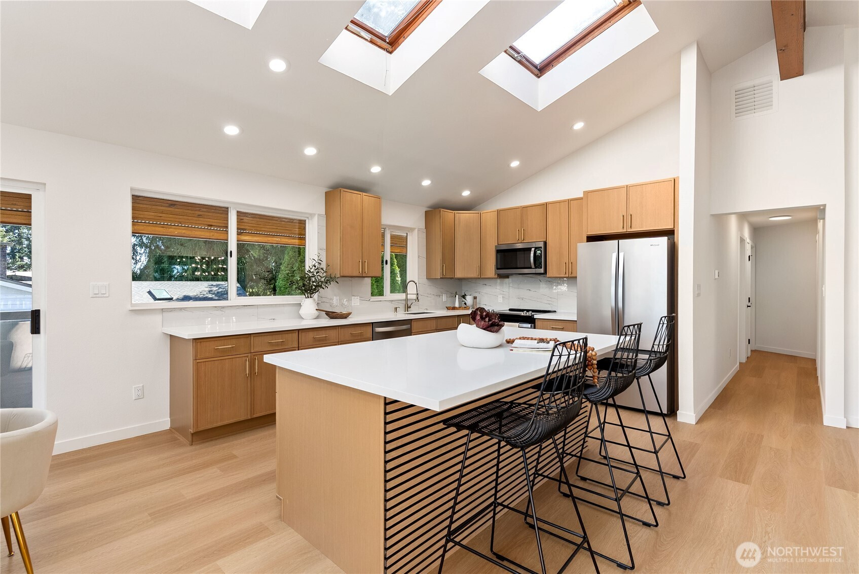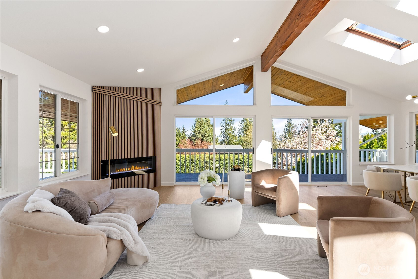 Absolutely breathtaking luxury residence in Snohomish’s coveted Kenwanda neighborhood,ideally located near the picturesque Snohomish River Valley.This exceptional home offers an elevated Northwest lifestyle with 2 expansive decks and a stunning wraparound deck, perfectly designed for entertaining, relaxing, and enjoying partial views of majestic Mount Baker and the surrounding natural beauty. A grand,wide staircase creates a striking first impression,leading to an upper level defined by soaring vaulted ceilings & a dramatic open-concept layout.Skylights and expansive windows flood the home with natural light, highlighting the refined living spaces & a custom-designed electric fireplace that serves as a sophisticated focal point.The designer chef’s kitchen is a true showpiece, featuring a generous island, custom backsplash, sleek cabinetry, & stainless steel appliances—crafted for both everyday living and elevated entertaining.The lower level provides a spacious,oversized family room,a well-appointed laundry room,&a stylish powder bath, offering both comfort and functionality. Upstairs, the luxurious primary suite is a private retreat with vaulted ceilings, abundant natural light, a walk-in closet, and exclusive access to a private deck.The spa-inspired ensuite bath showcases a custom shower and dual vanity. Two additional well-sized bedrooms complete the upper level.A rare opportunity to own a refined, light-filled home blending modern elegance with timeless comfort.Must SEE!