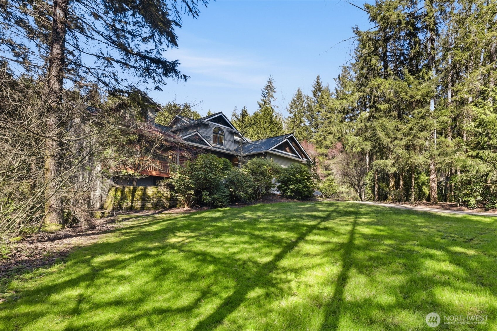 Tucked behind a gated entry on a private wooded acre in Snohomish, this exceptional estate offers 5,300+ sq ft of versatile living with comfort, function, and quiet luxury. A sweeping circular driveway and abundant parking set an impressive arrival. Inside, light-filled spaces feature skylights, French doors, and hydronic radiant heated floors throughout the entire home. The expansive chef’s kitchen includes abundant cabinetry, generous counter space, and a walk-in pantry, opening to multiple living and dining areas designed for both entertaining and everyday living. The layout offers ideal separation, with private sleeping quarters set apart from main living spaces. The serene primary suite provides a spa-like retreat with jetted tub, joined by a junior suite & private guest suite with en-suite bath. The finished daylight basement adds incredible flexibility with bonus space for a gym, media room, or playroom, plus additional finished rooms, a shop area, and potential wine cellar space. Recent updates include a 2025 roof, new exterior paint, new carpet, and updated dual-purpose water heater serving both radiant heat & hot water. The oversized 874 sqft garage with extra-tall doors and RV access accommodates all your needs with ease. Enjoy peaceful outdoor living with a private hot tub surrounded by nature, backing to protected land for lasting wooded privacy and no future development behind you. Minutes to downtown Snohomish, Hwy 2, Boeing, Eastside tech & Cascade recreation.