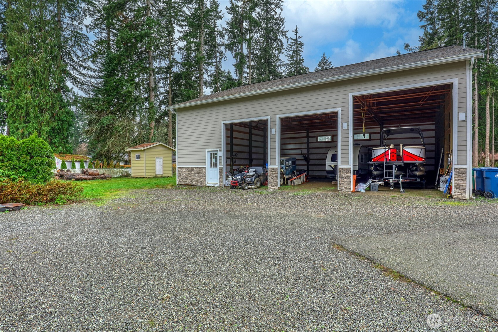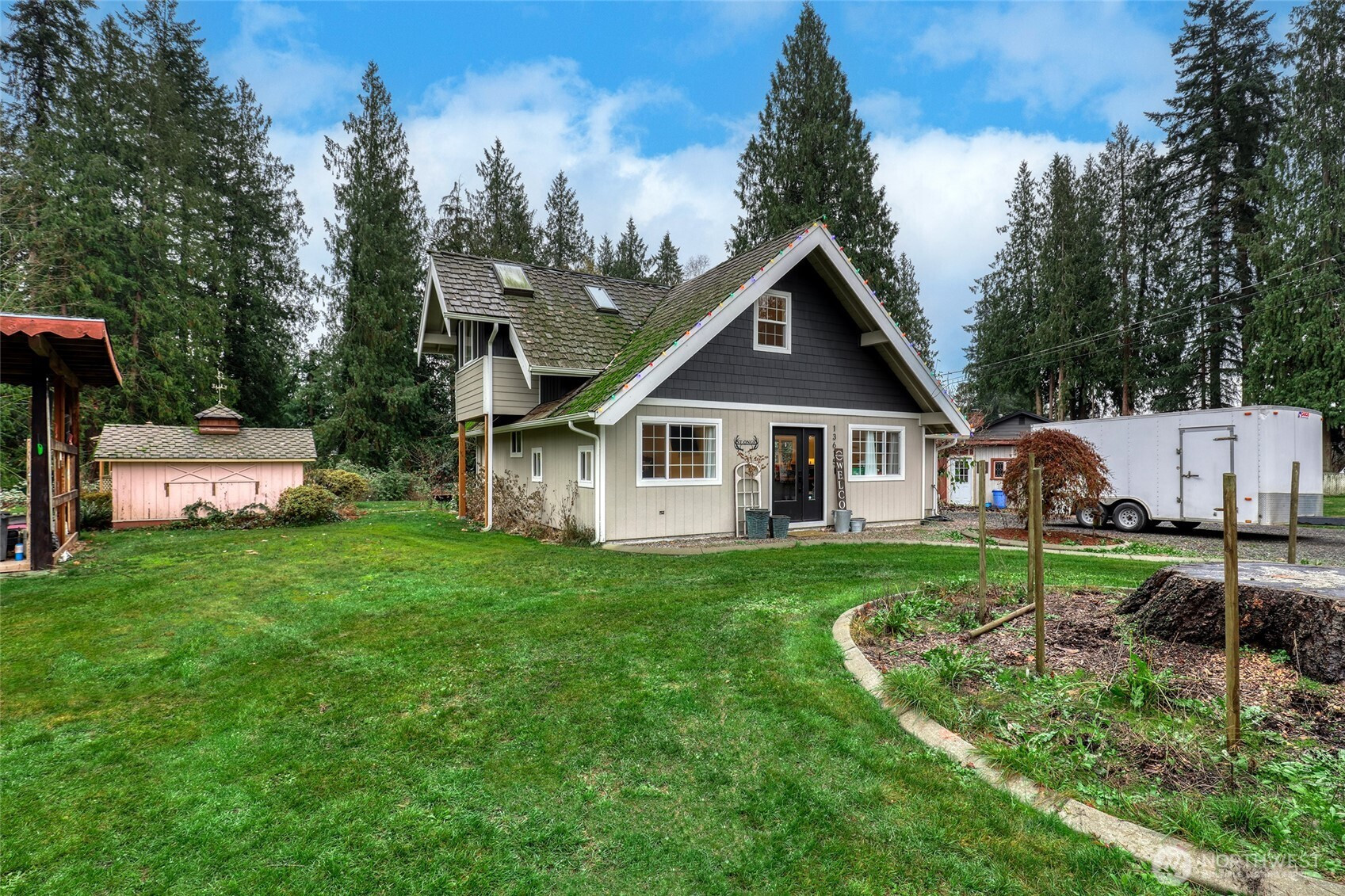 Marysville home on acreage! Enjoy peaceful country living in the city with this secluded 2-bed, 2.25-bath home on 3.17 acres along Quilceda Creek. Open kitchen, dining & living areas create a welcoming flow. Updated kitchen & baths, ductless mini split & skylights add comfort & charm. Main level updated primary bedroom with private 3/4 bath; upstairs holds an additional bedroom & full bath, plus a loft area. Large deck & gazebo offer relaxing creek views. Massive pole-building & shop for all your toys & hobbies. Close to schools, shopping, dining & freeway. A perfect blend of privacy & convenience!