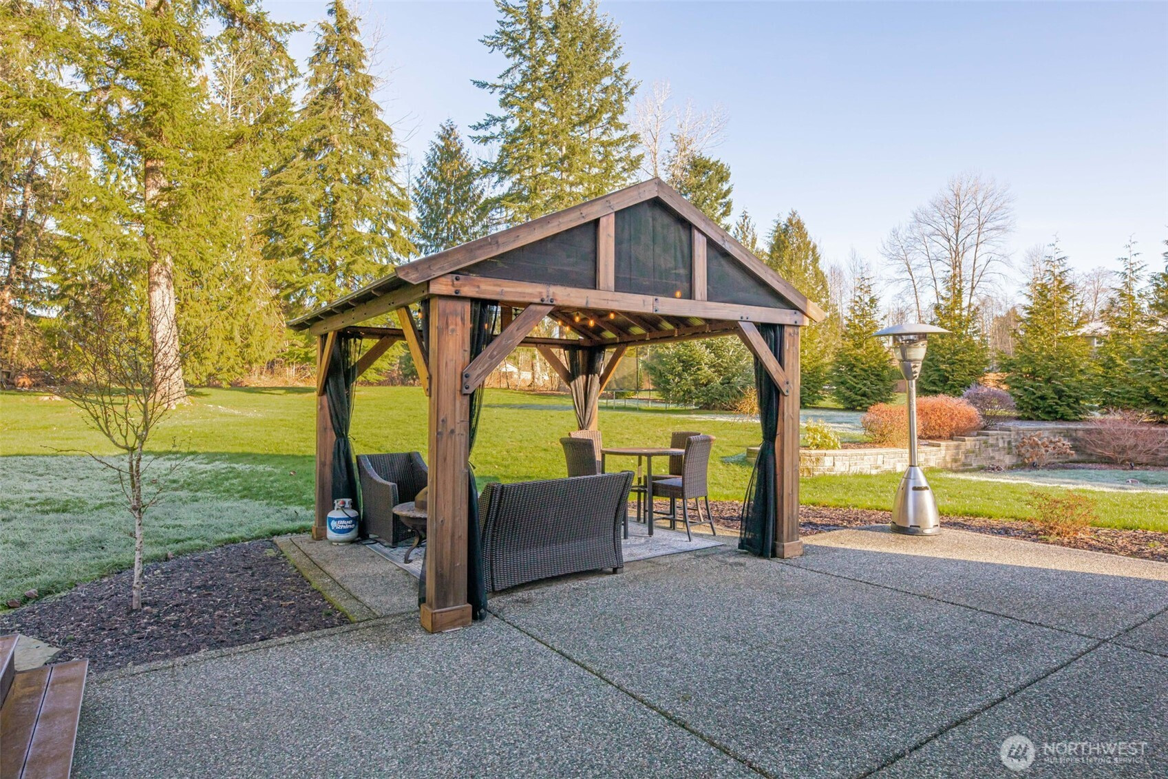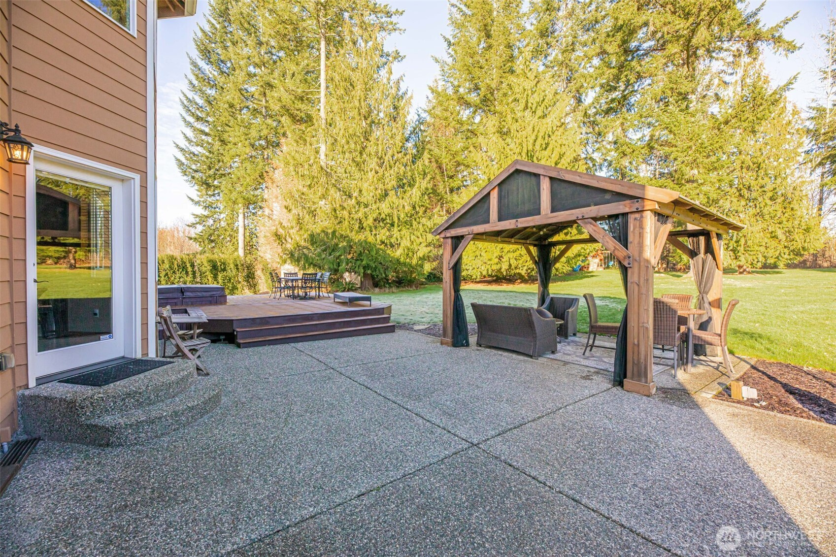 Thoughtfully designed for elegant living and effortless entertaining, this beautifully maintained home welcomes you with a dramatic two-story entry that sets the tone of warmth and hospitality. A formal living room with gas fireplace and dedicated dining room provide inviting spaces for hosting, while a private office offers flexibility for work or study. The open-concept heart of the home features a generous kitchen that flows seamlessly into the great room, anchored by an elegant gas fireplace and ideal for both daily living and gatherings.The home offers four well-thought out bedrooms and 2.75 bathrooms, including a luxurious primary suite with a spacious bath and a charming bay window that fills the space with natural light. A large bonus room complete with a projector and screen creates a private, theater-style experience perfect for entertaining. Outdoor living is equally impressive, with a spacious backyard designed as a private retreat featuring a large patio and a stunning picture-frame composite deck with hot tub. Additional amenities include a fire pit, playset, treehouse, and shed, blending comfort with versatility. Pergola provides opportunities for outdoor living throughout the year. A three-car garage adds convenience and storage, and the exceptional location completes this remarkable home designed for elevated living and unforgettable entertaining.