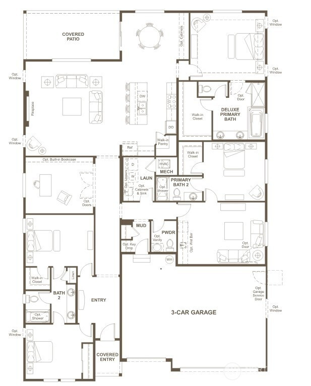 Welcome to Kokanee Estates where you can choose your finishes! Single-story living meets stunning design in the ranch-style Darius. This expansive floor plan offers four bedrooms, including two primary suites. The main suite boasts a walk-in closet plus deluxe private bath, while the secondary suite features an attached living area with separate entrance. An open layout is adjacent, showcasing a great room, breakfast nook, and impressive gourmet kitchen. Don't miss the study, 3-car garage, and covered patio!