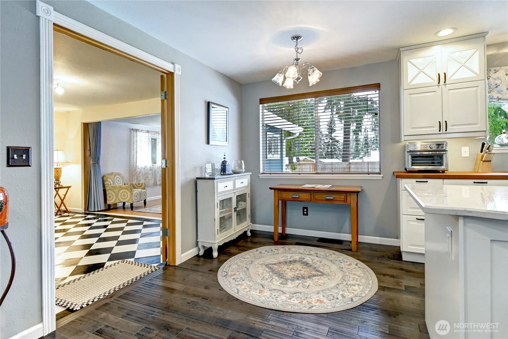 Mill Creek turnkey rambler! Nearly everything has been updated including appliances, furnace and water heater. This is a must see. Quiet cul-de-sac and a large back yard with fruit trees and garden space. Open kitchen with beautiful butcher block counter tops. Convenient location and privacy. All appliances are included. New insulation in the attic and crawl space. French doors lead to flex space with half bath and separate entrance. Large lot with potential for ADU. Beautiful gas fireplace with new mantle. Get ready for the BBQ's instead of the Honey to-do list. Recessed lighting, sliding barn door, hickory hardwood flooring, fresh paint. Add to your favorites and go see.