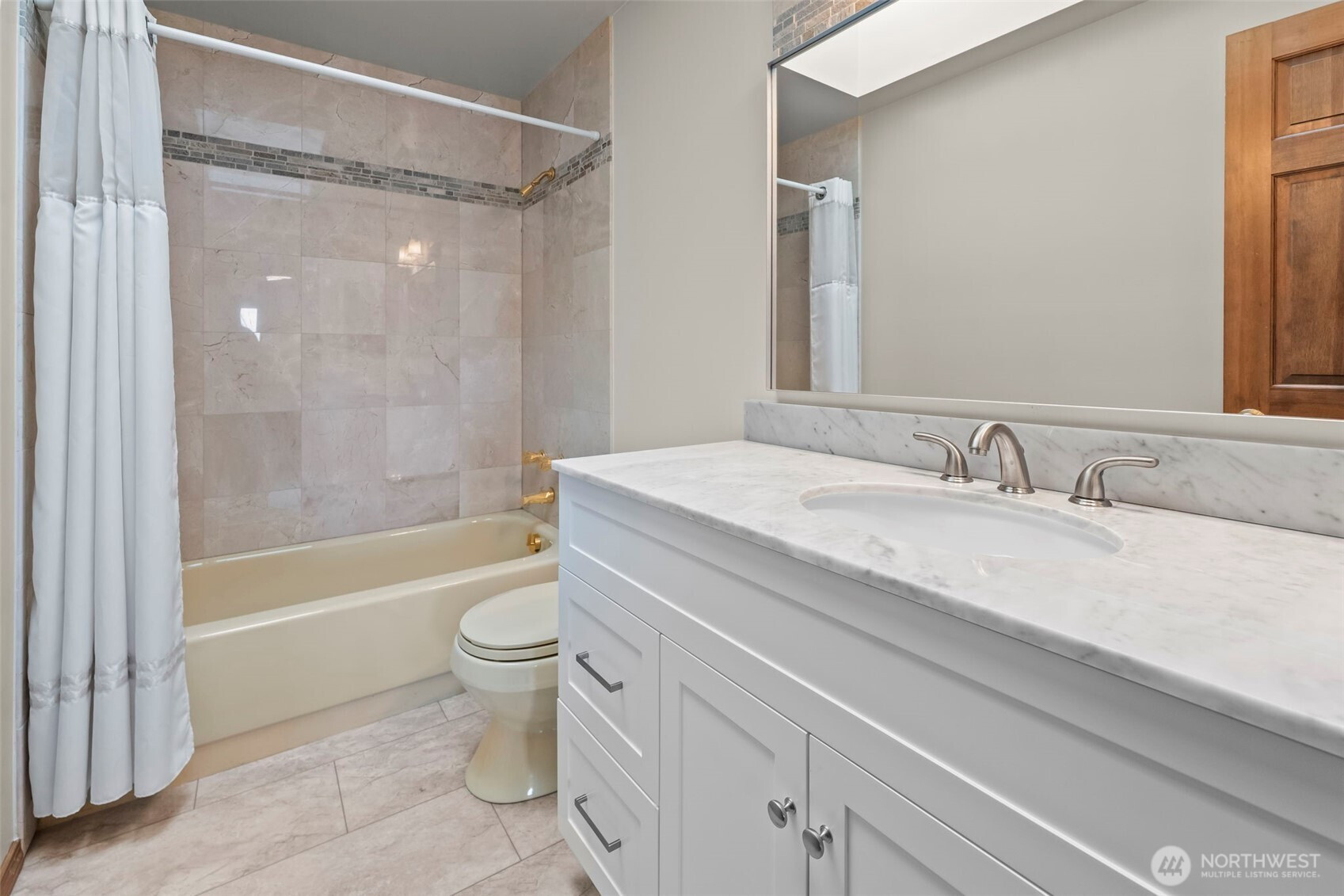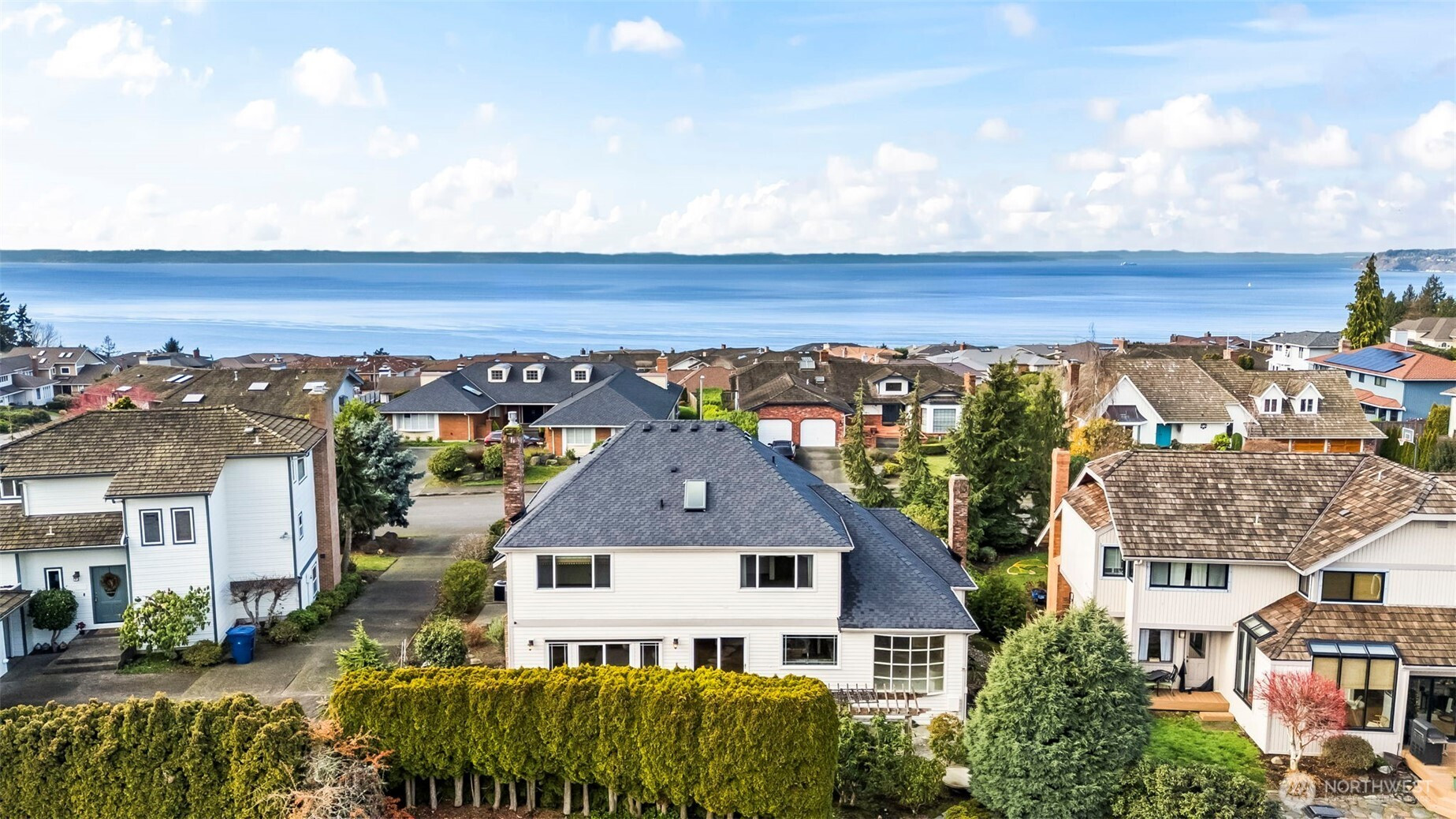 Welcome Home to this Stately 3 bedroom 2.5 bath nestled in the highly sought after Picnic Point neighborhood. Step inside to classic and elegant design with an open and spacious layout. Main level offers formal living, dining, office, powder room, laundry, and kitchen featuring granite countertops, stainless steel appliances and beautifully refinished hardwoods; bonus living room, 2 gas fireplaces, and sliding door to the tranquil garden backyard. Upstairs enjoy the primary suite featuring views of the Puget Sound and Olympic Mountains, 5 piece bath with new tile & walk in closet, 2 additional bedrooms, and guest bath. Home features brand new 50 year roof, and freshly laid sod. Enjoy the nearby private neighborhood pond, park, and walking trails encapsulating the peaceful Picnic Point lifestyle.