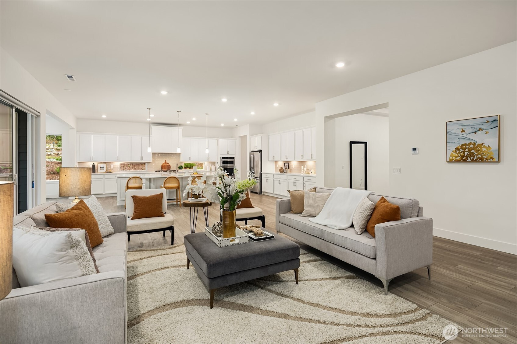 Experience refined single-level living in this better-than-new Pulte-built rambler in Lake Stevens, set on a private 1-acre cul-de-sac corner lot in a mature, established community—offering exceptional privacy and peaceful surroundings. Meticulously maintained and showcasing over $150K in upgrades, this 3 bed, 3 bath residence impresses with soaring 10’ ceilings, elegant 8’ doors, and a bright, open layout designed for effortless living and entertaining. The chef-inspired kitchen is a showpiece with quartz countertops, an expansive island, gas range, abundant storage, and a generous walk-in pantry. Gather in the grand family room with a cozy gas fireplace, then extend your living outdoors to the covered patio—complete with a second gas fireplace for year-round luxury. Three oversized bedrooms plus a sizable den provide flexibility, while the indulgent primary suite offers a true retreat. A rare opportunity for acreage, privacy, and elevated style.