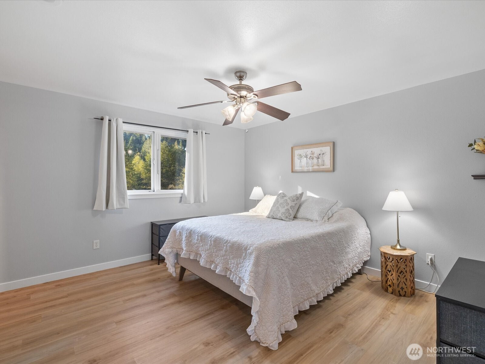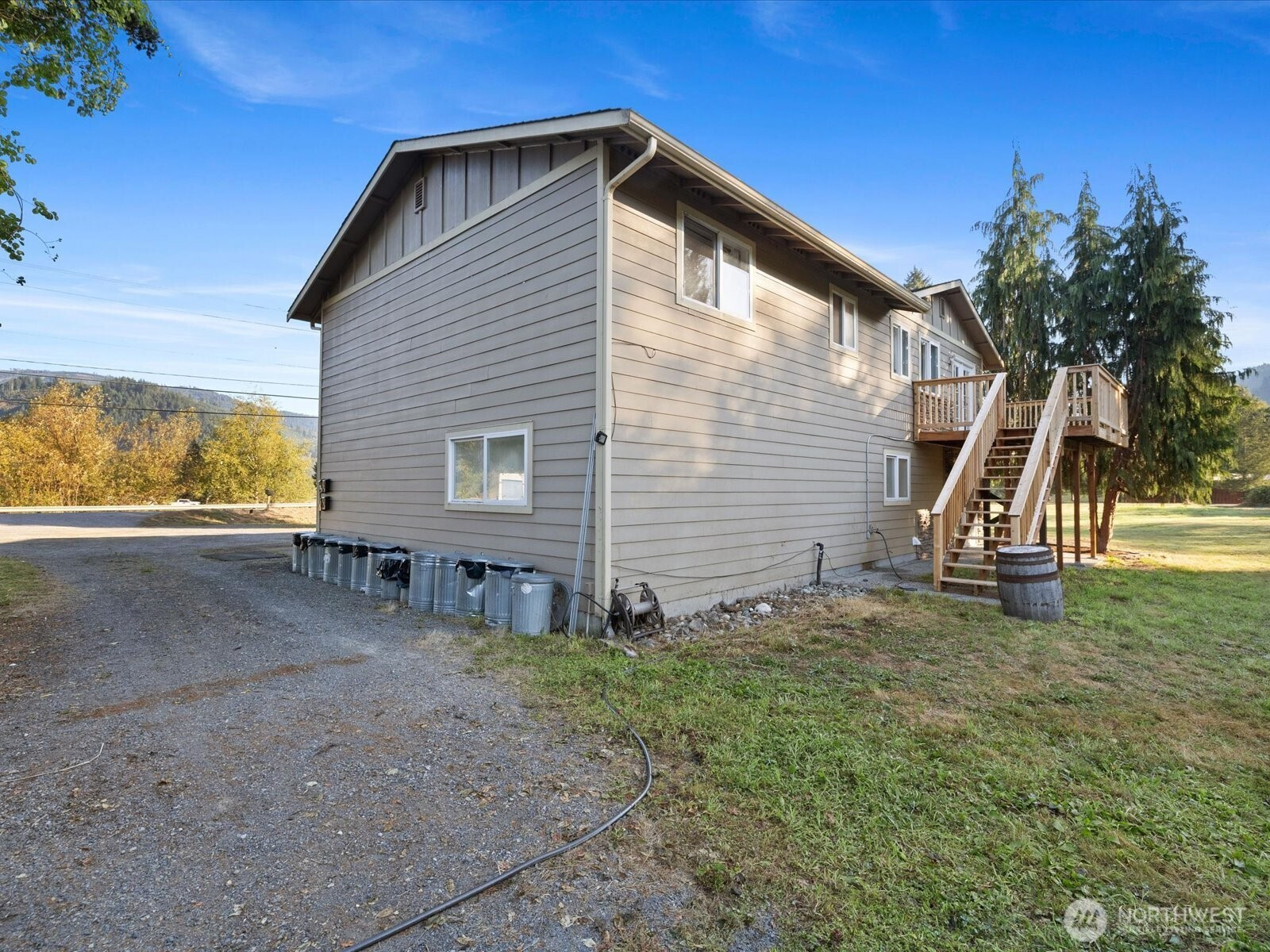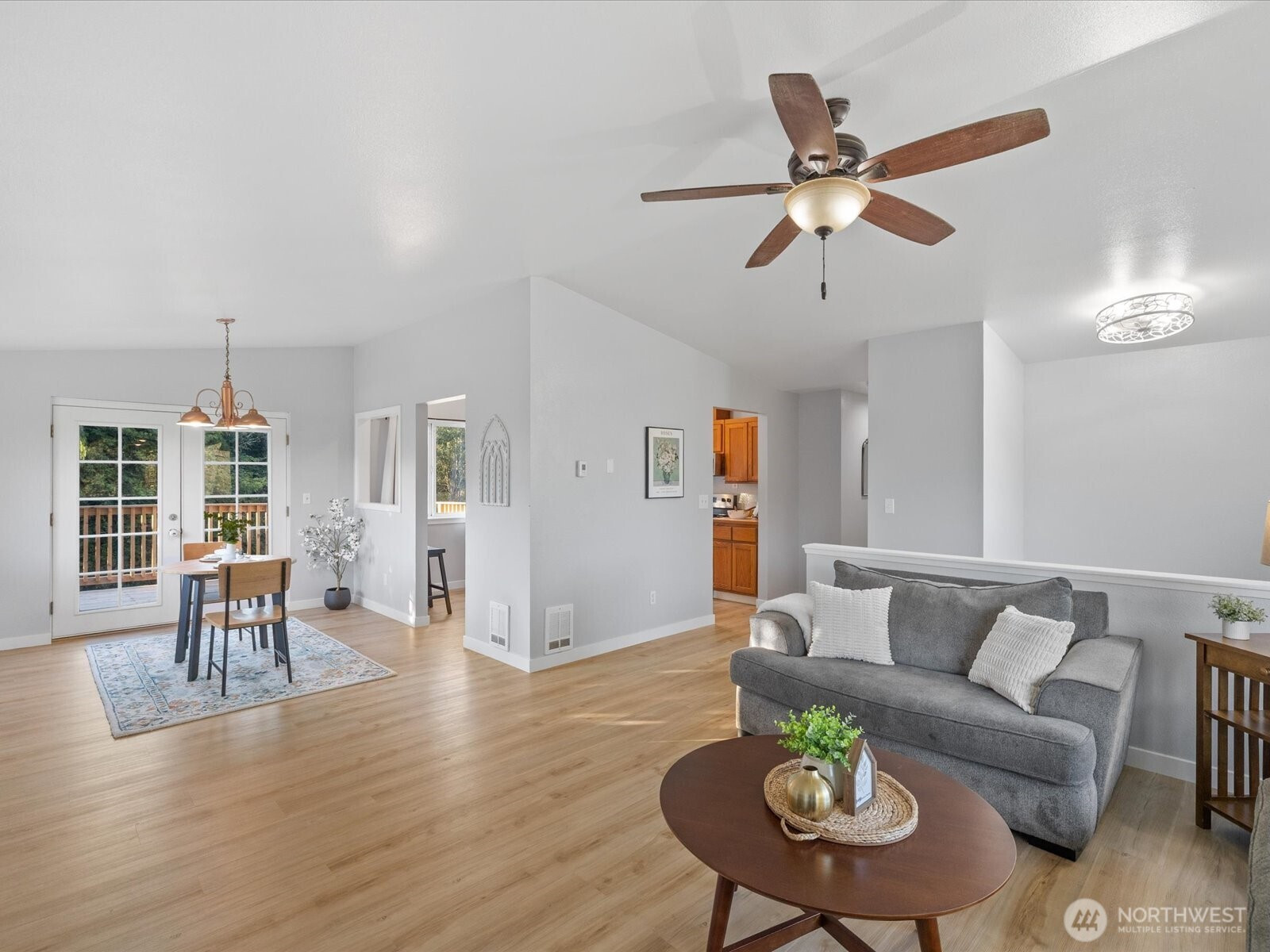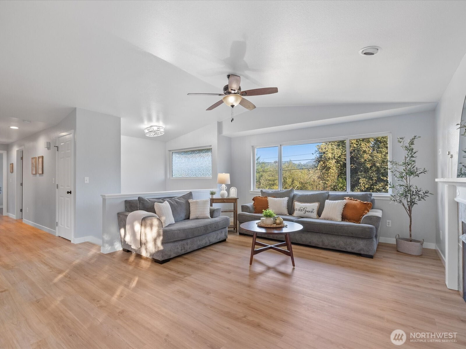 Beautifully updated home on over 5 scenic acres in Arlington! The living room boasts cathedral ceilings, abundant natural light, and a cozy fireplace. Newly installed Luxury Vinyl Plank flooring, crisp millwork, new doors, and fresh paint enhance the bright interior. The kitchen shines with new stainless steel appliances. Primary suite includes a private en suite bath-all upstairs bedrooms feature ceiling fans. Downstairs offers two versatile rooms—one with slider to patio—plus ¾ bath and laundry. An expansive, level yard invites year-round enjoyment with a fire pit, generously sized deck {great for entertaining!}, fruit trees, garden space, and panoramic mountain scenery! Ample parking for RV, guests, or toys. Tiny home excluded from sale.