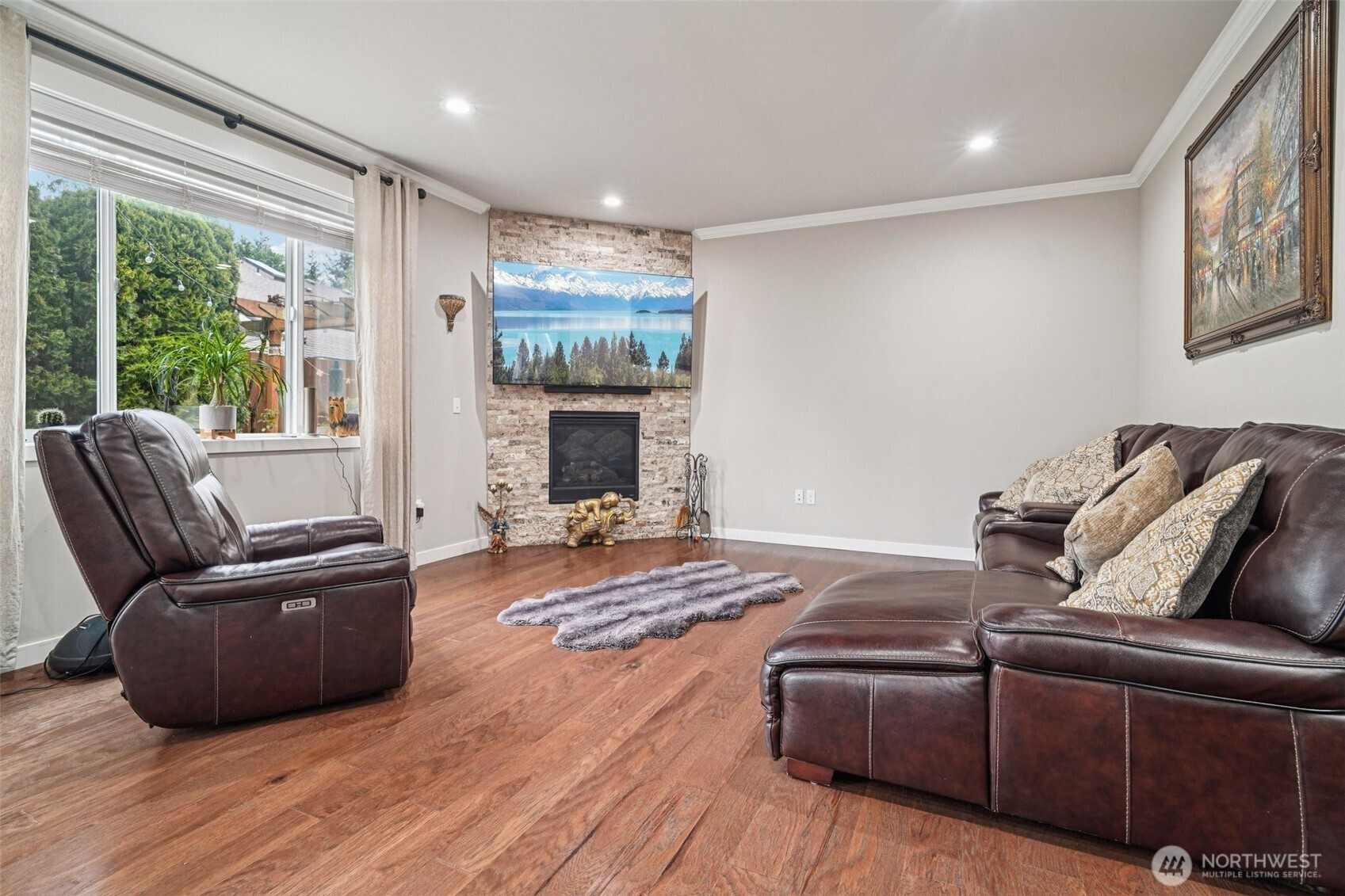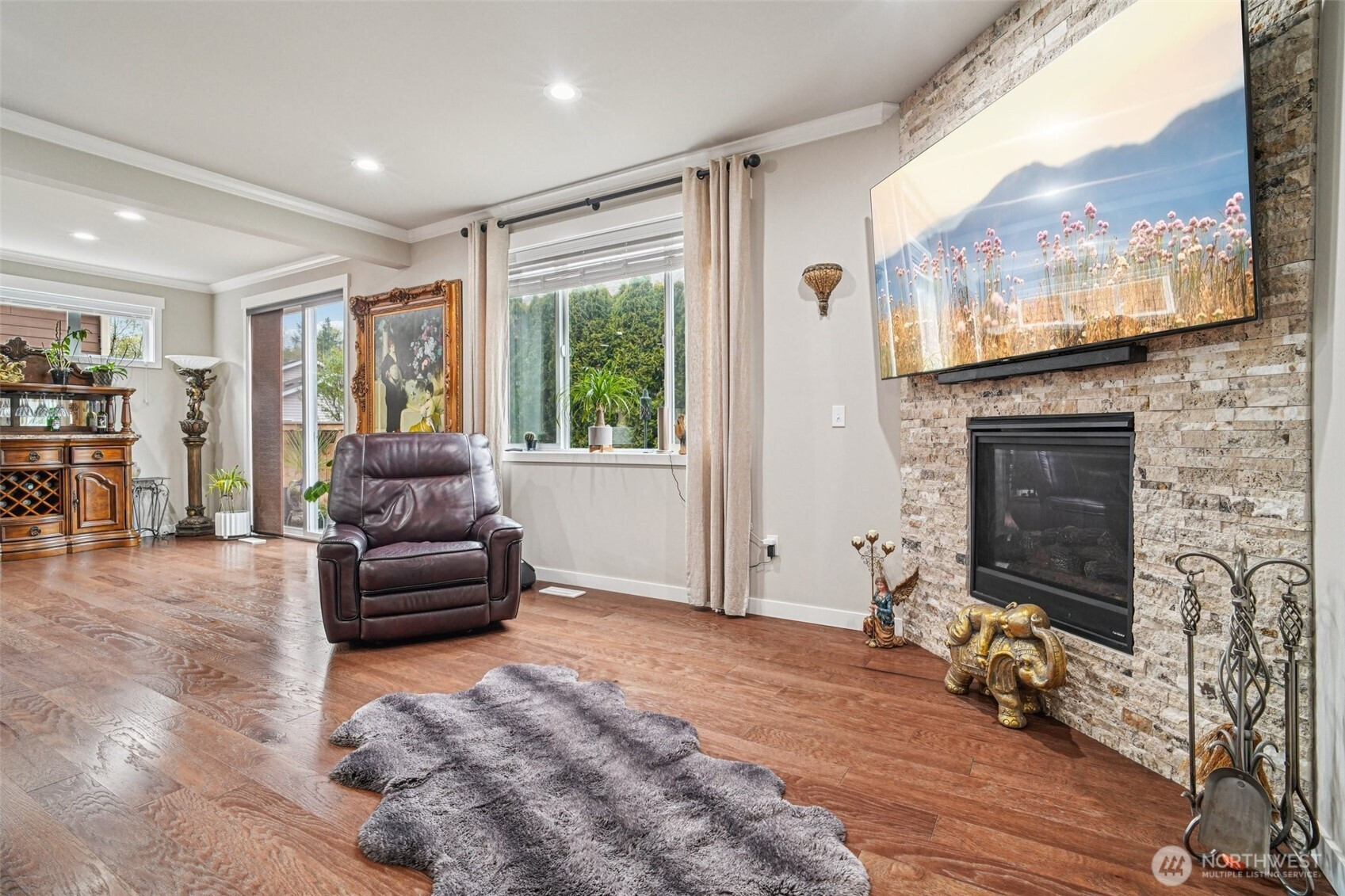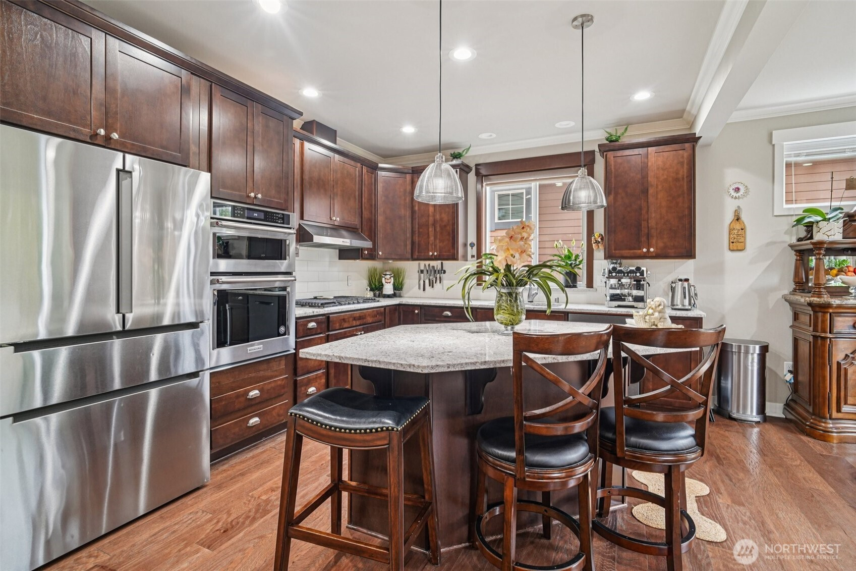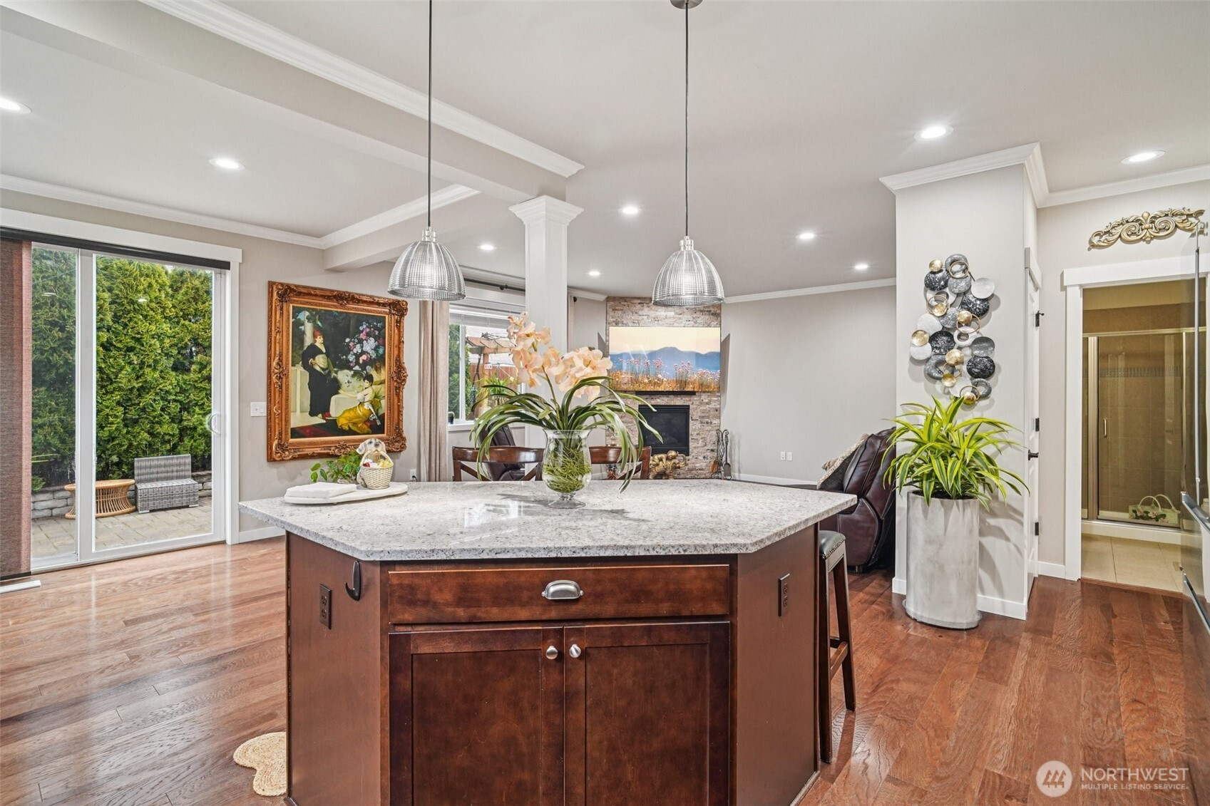 Welcome to this beautifully appointed home in the sought-after Azi Lee Estates subdivision, where thoughtful design meets everyday comfort. The gourmet kitchen is a standout feature, offering slab granite counters, a spacious center island, custom cabinetry, stainless steel appliances, and a generous walk-in pantry, perfect for both daily living and entertaining. The inviting family room showcases a striking stone surround fireplace, creating a warm and stylish gathering space. This home offers 4 bedrooms and 2 3/4 baths, including a luxurious primary suite with a five-piece bath and a walk-in closet designed for convenience. A main floor den with crown molding, double door entry, and an adjacent 3/4 bath provides flexibility for work or relaxation. Timeless wainscotting and an elegant formal dining room add charm and sophistication for gatherings. Upstairs, a large bonus room features a built-in desk and hutch, ceiling fan, and hardwood flooring. Additional highlights include a tankless water heater and a fully landscaped yard ready to enjoy. Located within the Mukilteo School District, this home blends style, comfort, and functionality in a desirable setting.