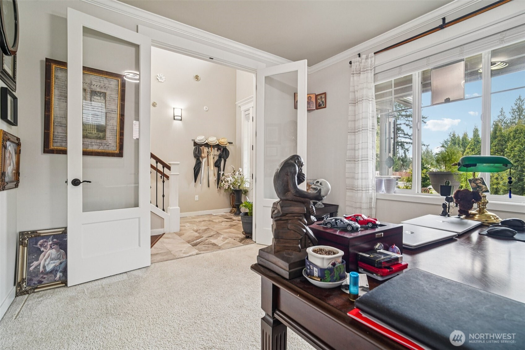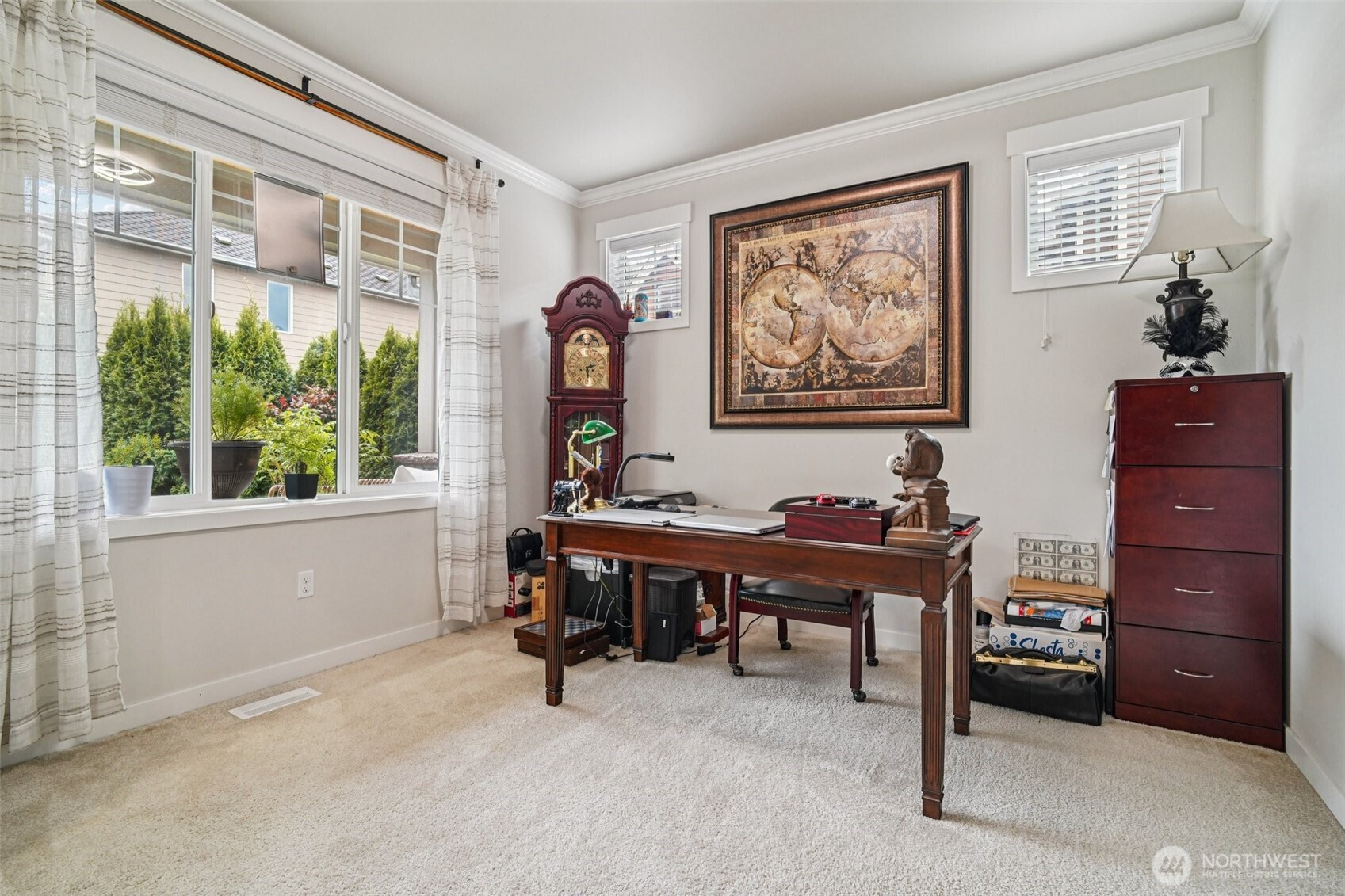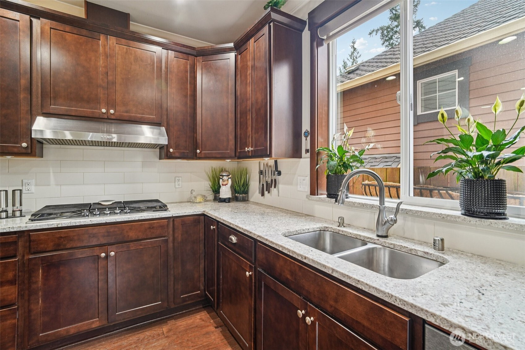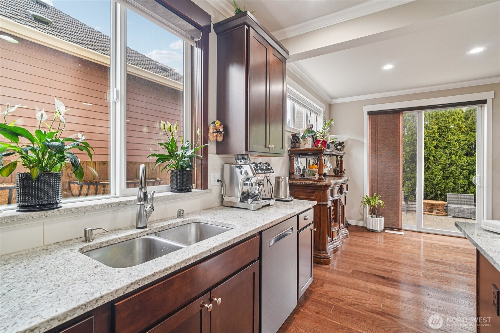 Welcome to this beautifully appointed home in the sought-after Azi Lee Estates subdivision, where thoughtful design meets everyday comfort. The gourmet kitchen is a standout feature, offering slab granite counters, a spacious center island, custom cabinetry, stainless steel appliances, and a generous walk-in pantry, perfect for both daily living and entertaining. The inviting family room showcases a striking stone surround fireplace, creating a warm and stylish gathering space. This home offers 4 bedrooms and 2 3/4 baths, including a luxurious primary suite with a five-piece bath and a walk-in closet designed for convenience. A main floor den with crown molding, double door entry, and an adjacent 3/4 bath provides flexibility for work or relaxation. Timeless wainscotting and an elegant formal dining room add charm and sophistication for gatherings. Upstairs, a large bonus room features a built-in desk and hutch, ceiling fan, and hardwood flooring. Additional highlights include a tankless water heater and a fully landscaped yard ready to enjoy. Located within the Mukilteo School District, this home blends style, comfort, and functionality in a desirable setting.