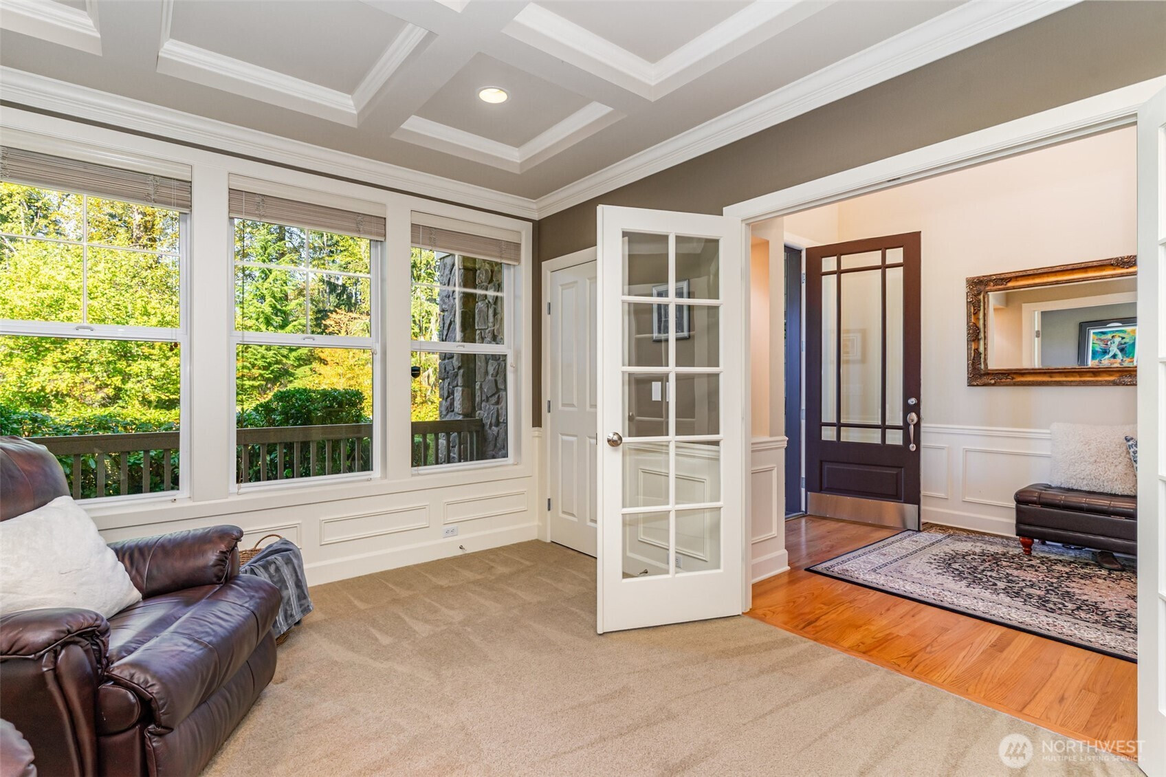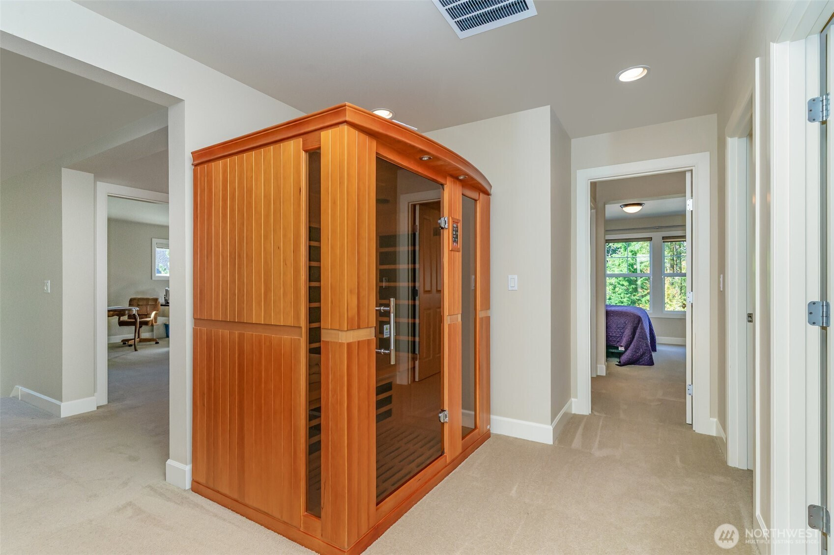 Bath Off Primary, Double Pane/Storm Window, Dining Room, Fireplace, French Doors, Sauna, Security Sy