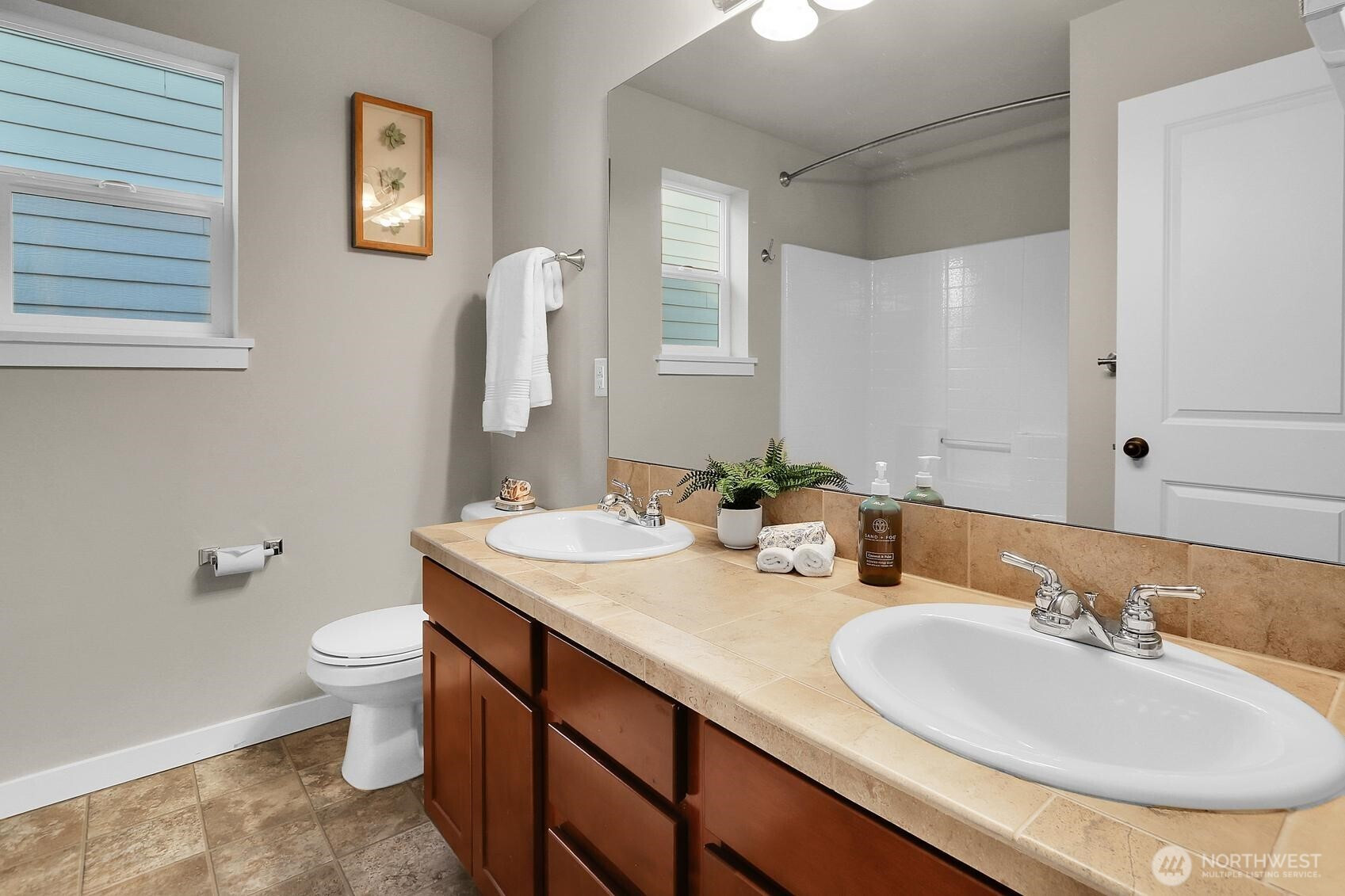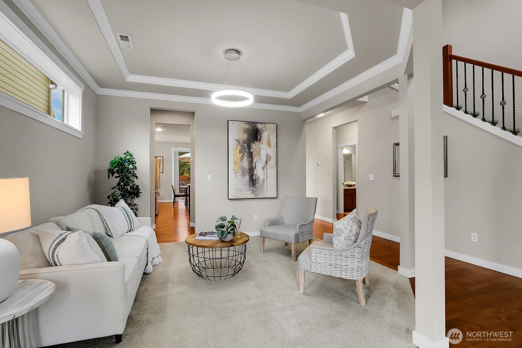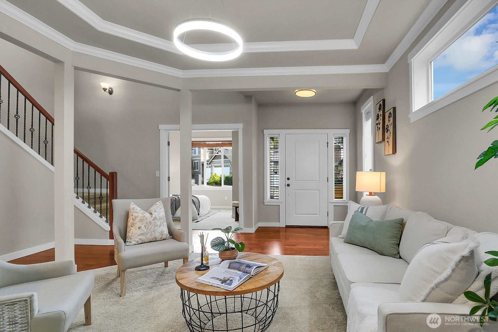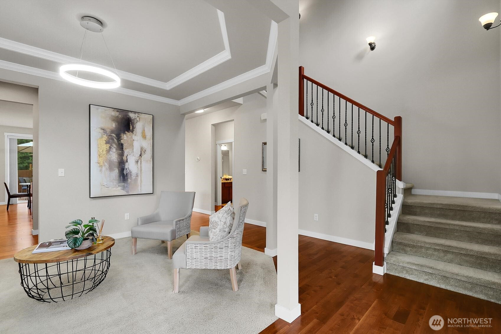 Welcome to this centrally located Lynnwood home, tucked into a quiet residential neighborhood that offers minutes-away access to I-5 and I-405 while maintaining the serenity of being just steps from Lake Serene. This well-maintained, one-owner home has been thoughtfully cared for over the years. A welcoming foyer with soaring two-story ceilings opens to an inviting living room and flows seamlessly into the generously sized kitchen, complete with a walk-in pantry and separate bar alcove. A perfect layout for entertaining- enjoy your morning coffee on the deck or host afternoon BBQs with a gas line already plumbed! The spacious floor plan features five bedrooms, including a main-floor bedroom and ¾ bath ideal for multi-generational living, guest accommodations, or a home office. Upstairs, the expansive primary suite offers vaulted ceilings, a five-piece bath, and a large walk-in closet. A three-car garage provides ample storage and includes an EV charger for modern living. Enjoy the perfect balance of privacy, functionality, and proximity to shopping, dining, and commuter convenience—located in the sought-after Mukilteo School District, this is the one you’ve been waiting for!