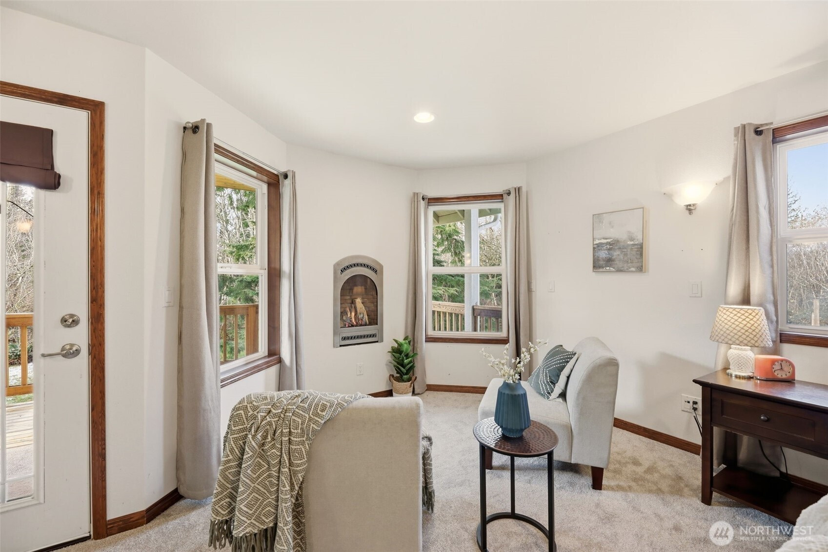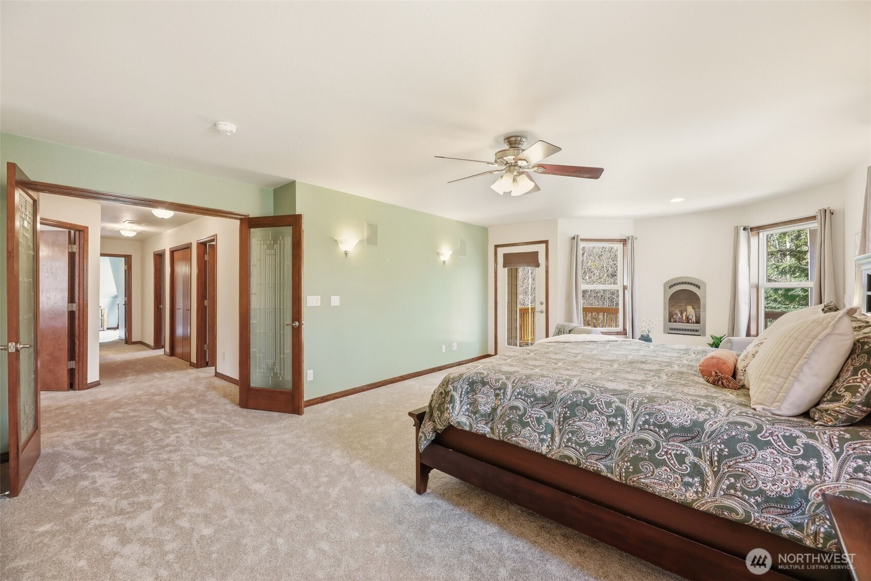 Experience refined living in this truly palatial residence set on a park-like setting. A grand front deck welcomes you creating a warm and inviting first impression. Step inside to newly refinished hardwood floors flowing seamlessly through the entry, dining room, & kitchen, offering timeless elegance. A formal living room provides a sophisticated space for gatherings, while the expansive great room features a cozy fireplace and an abundance of windows that frame serene backyard views. A dedicated main-floor office offers the perfect space for remote work or quiet study. Upstairs, retreat to the luxurious primary suite complete with a private sitting area and its own fireplace, a secluded deck, spacious walk-in closet, and a spa-inspired en suite bath. Relax in the soaking tub perfectly positioned to take in picturesque views of the front grounds. The suite is also wired for entertainment, blending comfort and modern convenience. A second primary bedroom with a private full bath provides ideal accommodations for guests. Two additional bedrooms share a well-appointed Jack-and-Jill bath, and a generous bonus room offers flexible space for a media room, playroom, or gym. New carpet upstairs. Designed for exceptional indoor-outdoor living, backyard features a partially covered deck plumbed for propane, hot tub hookup & outdoor shower. The dedicated garden space invites you to cultivate your own oasis. This home combines elegance, comfort, and thoughtful design!
