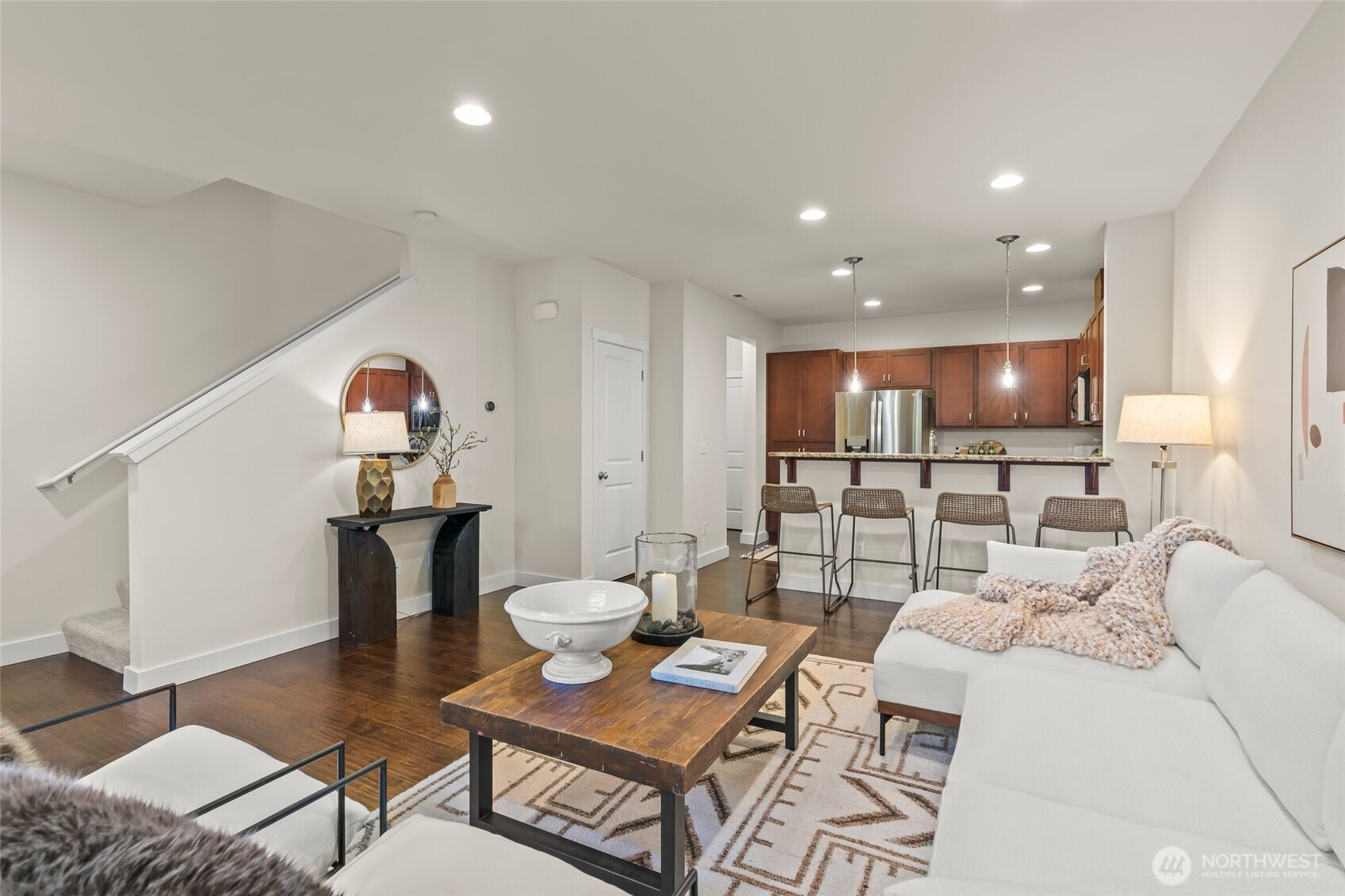 Desirable Northpointe Townhome in MILL CREEK with Thomas Lake views from the primary suite! This updated, move in ready home features fresh interior/exterior paint, new carpet, 9’ ceilings, hardwood floors & grand kitchen with granite counters, modern appliances, raised bar & open floor plan. Enjoy a private courtyard perfect for BBQs. Dual primary suites include walk-in closets, soaker tub, dual sink & a spacious sitting area. Upstairs landing ideal for office or lounge. Attached 2-car garage with built-ins. Low HOA dues at only $52 a month and NO RENTAL CAP makes this ideal for investors! Just 1.5 miles to Mill Creek Town Center, near trails, shopping, restaurants, yoga & more. Turn-key + Easy access to I-5 & Hwy 9!? [WELCOME HOME]