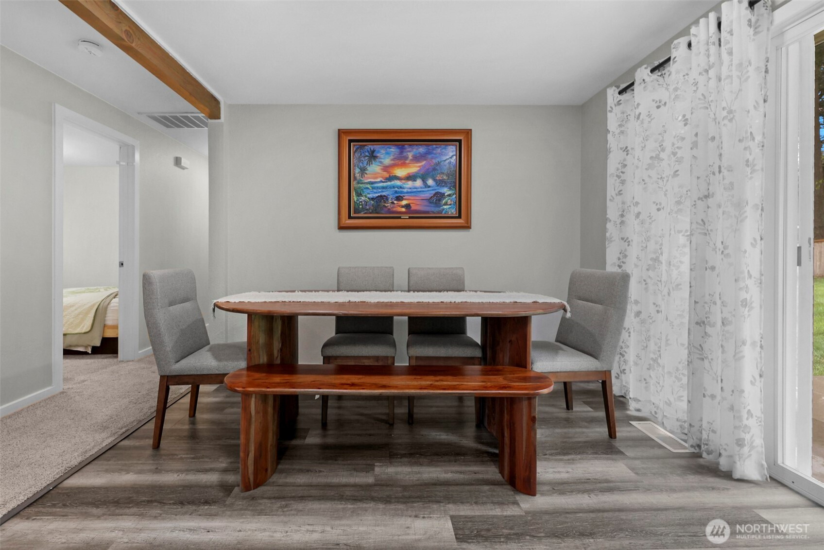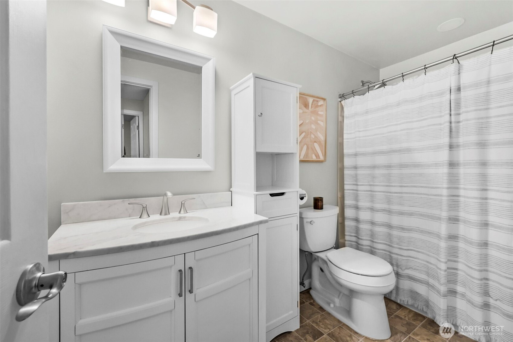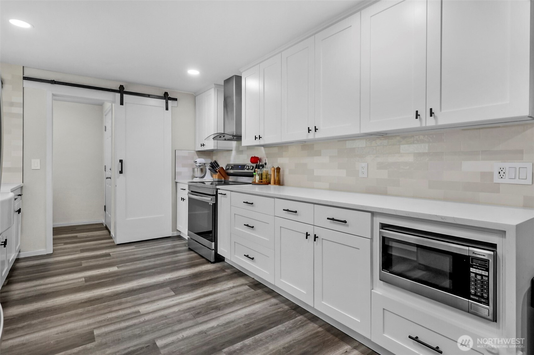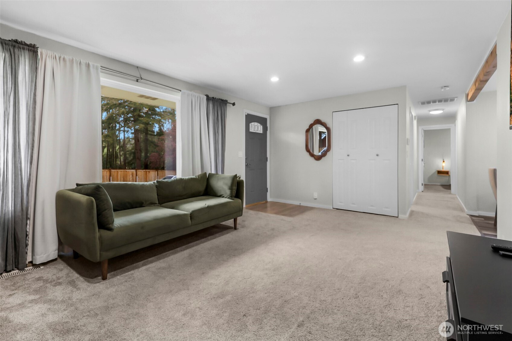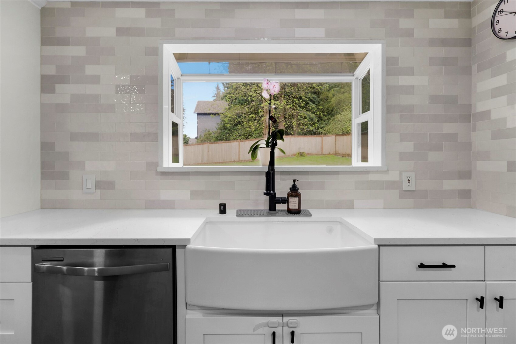 Welcome to your updated 3 bed, 2 bath rambler tucked away in a quiet pocket of Mill Creek near Martha Lake. Enjoy the privacy of a fully fenced, tree lined backyard with a spacious patio built for entertaining or unwinding at the end of the day. The remodeled kitchen serves as the heart of the home, featuring new cabinetry, quartz countertops, stainless appliances, and a farmhouse sink overlooking the backyard. Updated flooring and recessed lighting carry through the main living areas, creating a bright, open feel. The primary bedroom offers a private bath with a walk-in shower and glass enclosure. Equipped with a heat pump including air conditioning to keep things comfortable year-round. A wood burning fireplace adds warmth and character through the colder months. Secure RV parking sits alongside the single car garage, providing flexibility for storage or additional vehicles. Meticulously maintained and pre inspected, this home is move in ready with thoughtful updates throughout.
