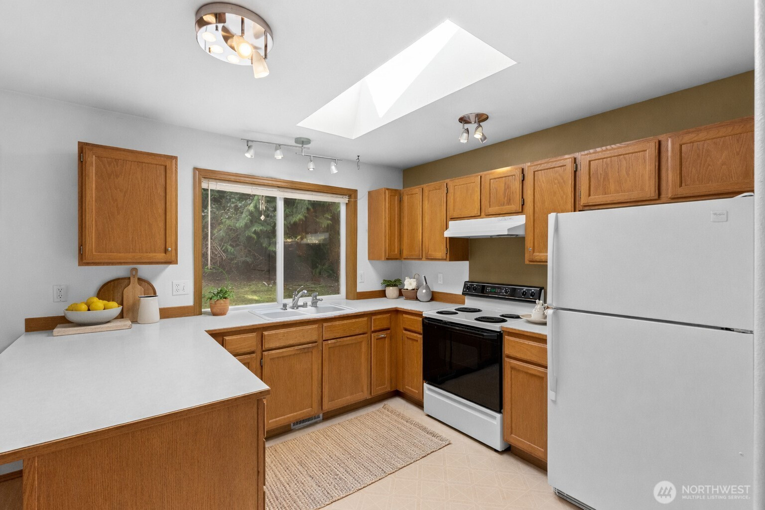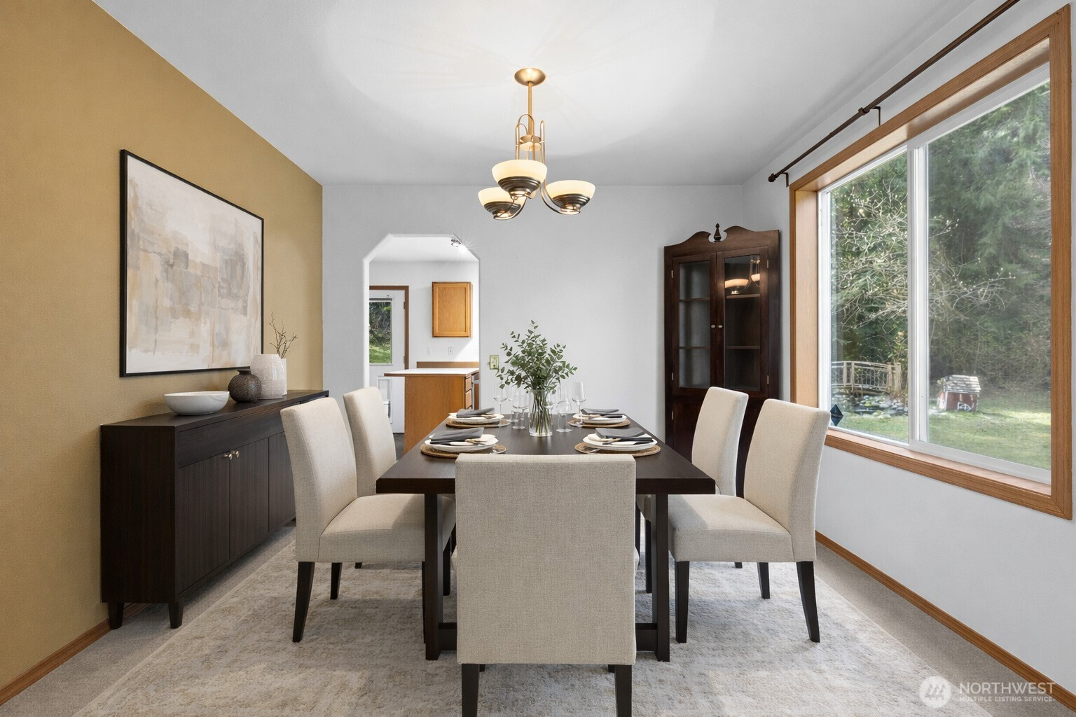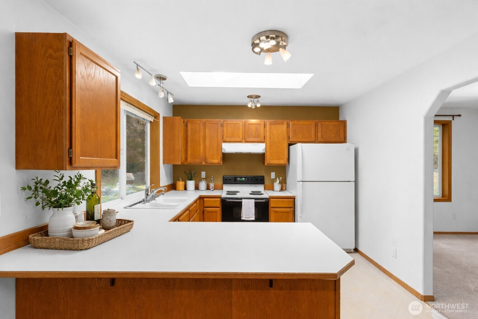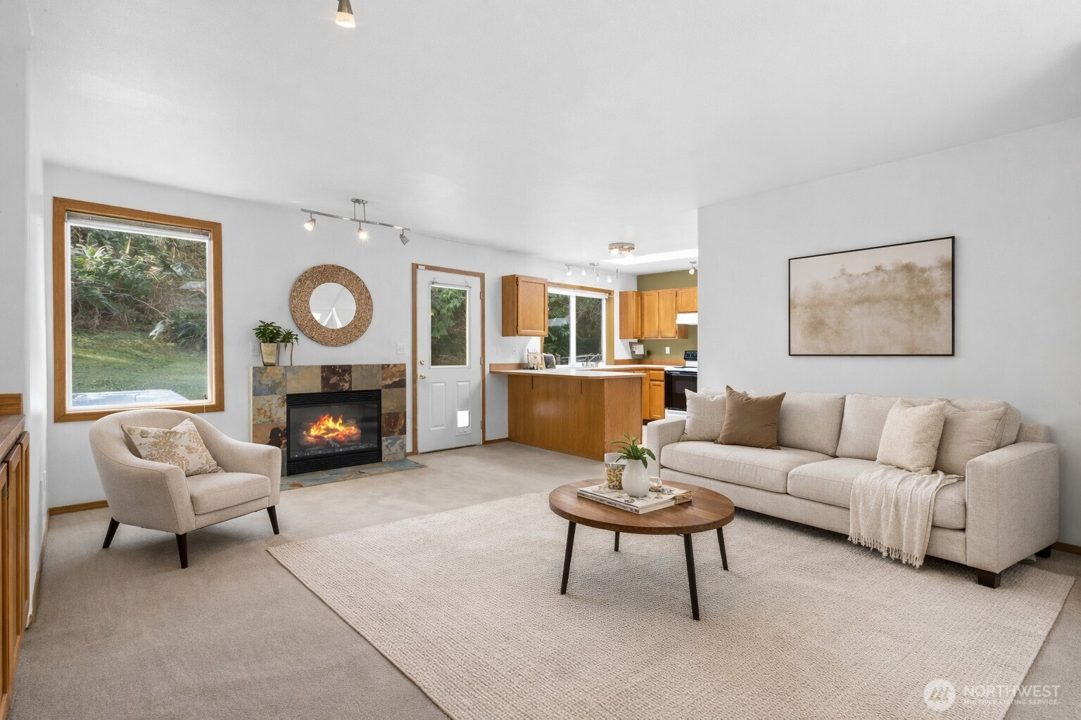 Well-maintained single-level home ideally situated between Lake Shoecraft and Lake Goodwin, offering a peaceful, nature-filled setting on a shy half-acre lot. This 3-bedroom, 2-bath home features two spacious living areas, an open kitchen flowing into the main living space with a cozy gas fireplace, and a separate dining room. Multiple skylights fill the home with abundant natural light throughout. Step outside to a beautifully landscaped yard surrounded by mature trees, complete with a tranquil manmade pond, creek, and waterfall feature. Unwind in the hot tub and enjoy year-round relaxation in this serene setting. Garden enthusiasts will love the ample space, along with existing wiring and water access for a future greenhouse. Spacious shed for additional storage wired for power. Additional highlights include a newer tankless gas water heater and a 10KW automatic Generac generator for seamless backup power. Located just 1 mile from Wenberg County Park and boat launch, and only 10 minutes to I-5 and Tulalip amenities including shopping and more affordable fuel. A rare opportunity to enjoy comfort, privacy, and convenience in a scenic Pacific Northwest setting. The home has been pre-inspected and repairs made to make this home move-in ready.