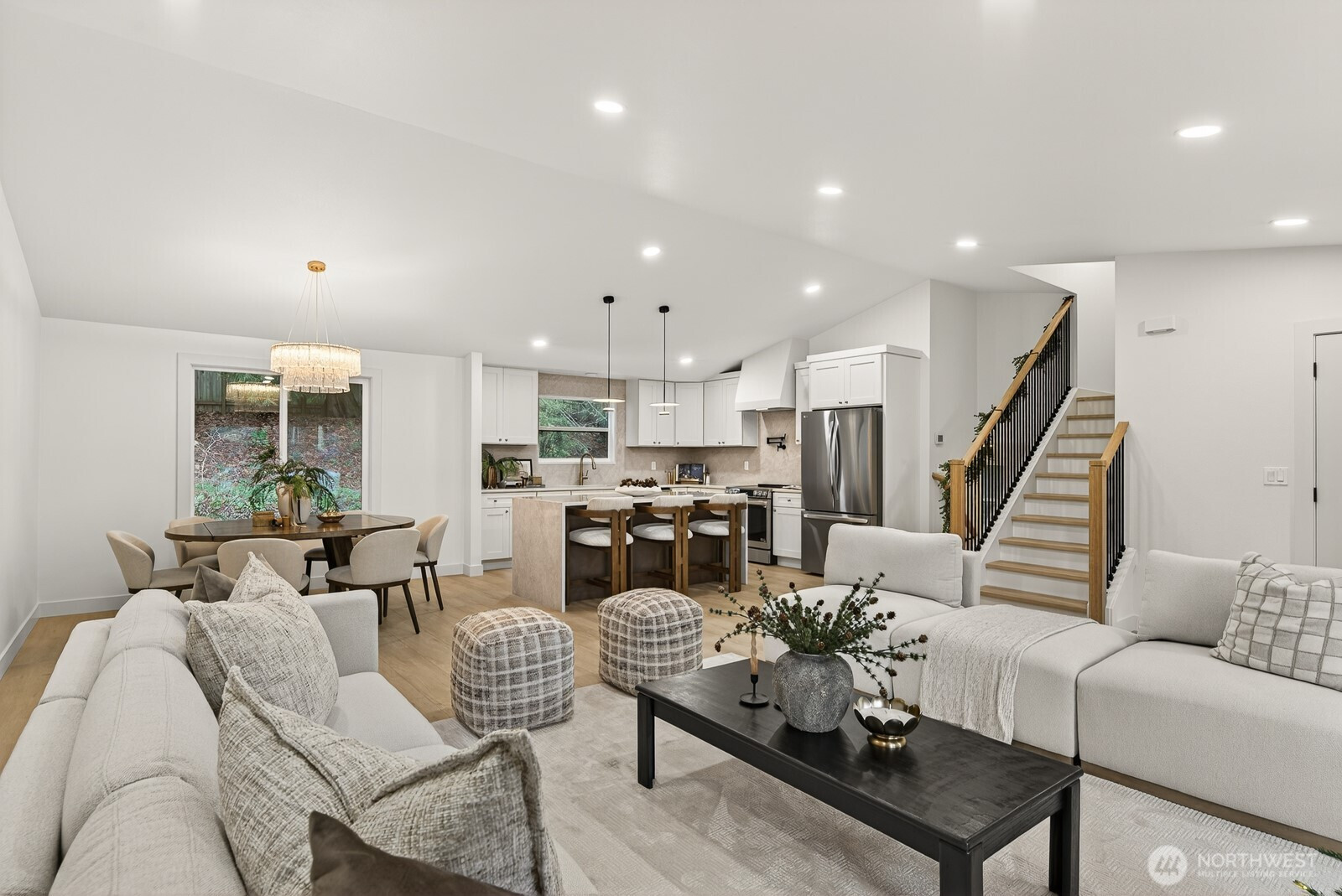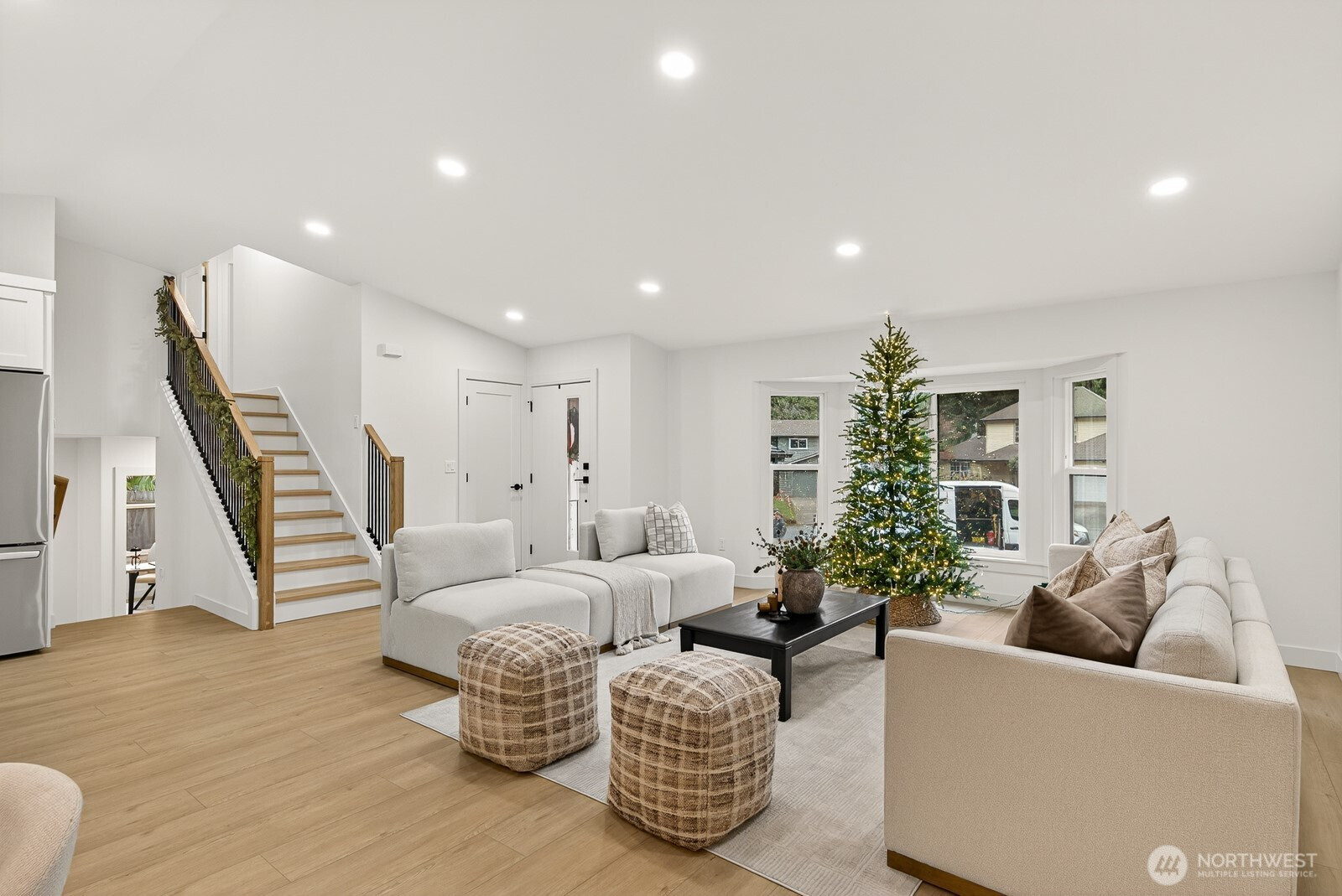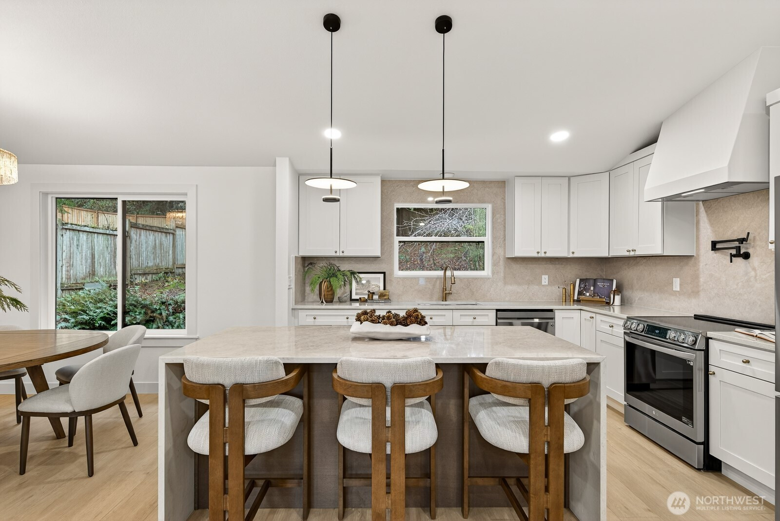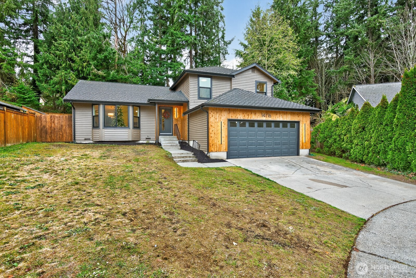 Located on a quiet cul-de-sac in Silver Firs, this fully updated tri-level home features a bright, open main level with high-end finishes. The kitchen showcases a waterfall quartz island, premium cabinetry, and new appliances. All bedrooms are on the upper level, including the ensuite primary with a walk-in closet, heated tile floors, and a walk-in shower. New windows, furnace, and water heater provide comfort and efficiency. The lower level offers a living area with a wood-burning fireplace, dry bar, and flexible office. A 2-car garage, 50-year roof, and close access to top-rated schools, I-5, and shopping complete this home.